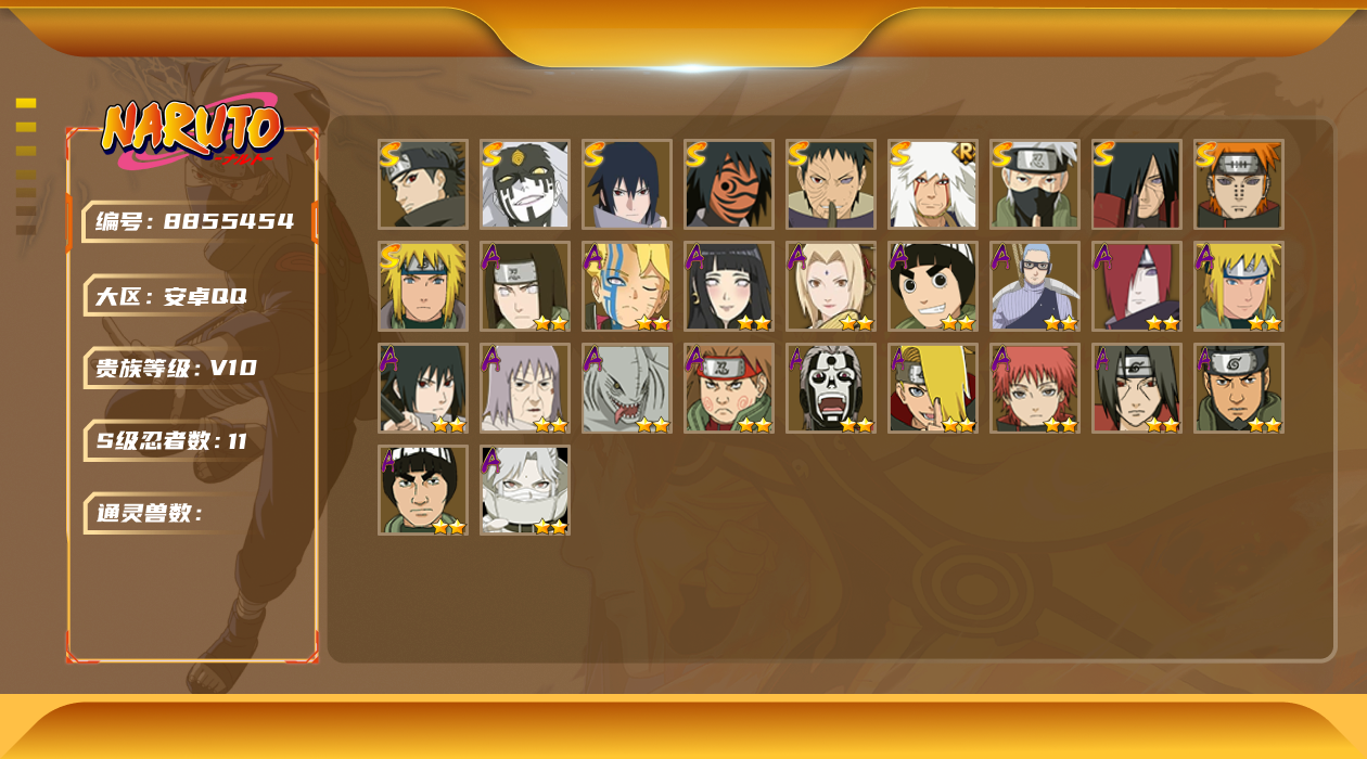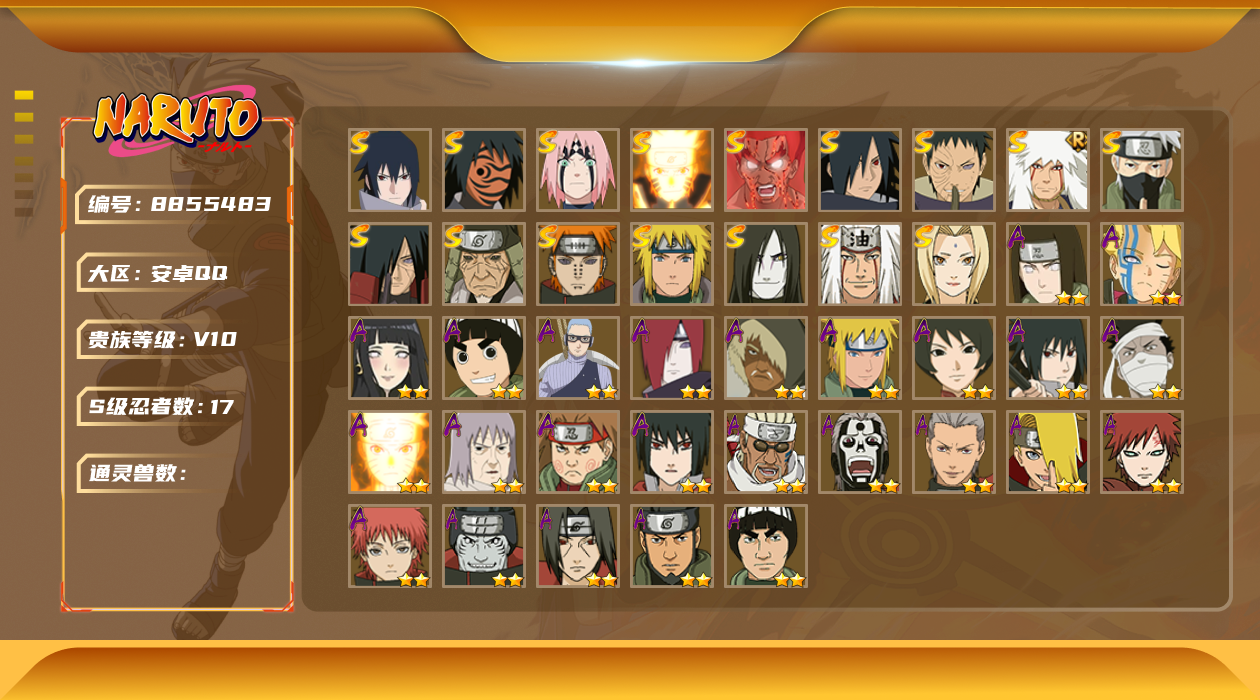【hysa290】v9/战力502w/s忍7/a忍18/通灵兽13/2星日向宁次「忍界大战」/2星我爱罗「疾风传」/2星飞段「死司凭血」/2星宇智波鼬/3星宇智波佐助「永恒万花筒」/3星旗木卡卡西「须佐能乎」/2星迈特凯/2星蝎/3星佩恩「天道」/3星波风水门/2星李洛克「忍界大战」/2星大蛇丸「新春限定」/2星波风水门「青年」/3星自来也「舞之豪杰」/3星宇智波斑「白面具」/3星宇智波止水「须佐能乎」/2星日向雏田「最终章」/2星猿飞阿斯玛/2星宇智波泉奈/2星迪达拉/2星干柿鬼鲛/2星艾「青年」/2星不缘/2星千代「近松十人卫」/2星照美冥「侠隐江湖」