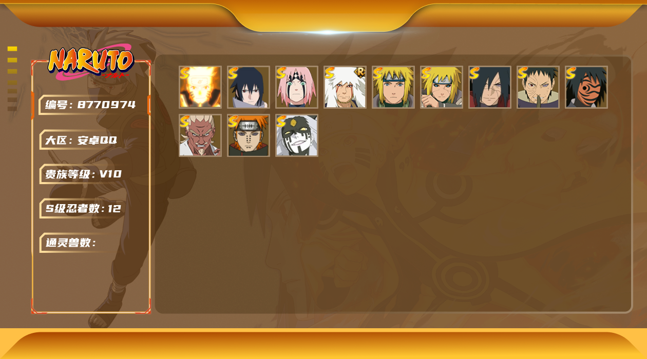 [8770974]v10 12s 可二次 s级忍者:艾「忍界大战」大筒木桃式宇智波斑「秽土转生·解」宇智波佐助「永恒万花筒」神秘面具男 「红夜之刃」春野樱 「忍界大战」漩涡鸣人 「九喇嘛连结」宇智波带土 「忍界大战」自来也 「舞之豪杰」波风水门「秽土转生」佩恩「天道」波风水门