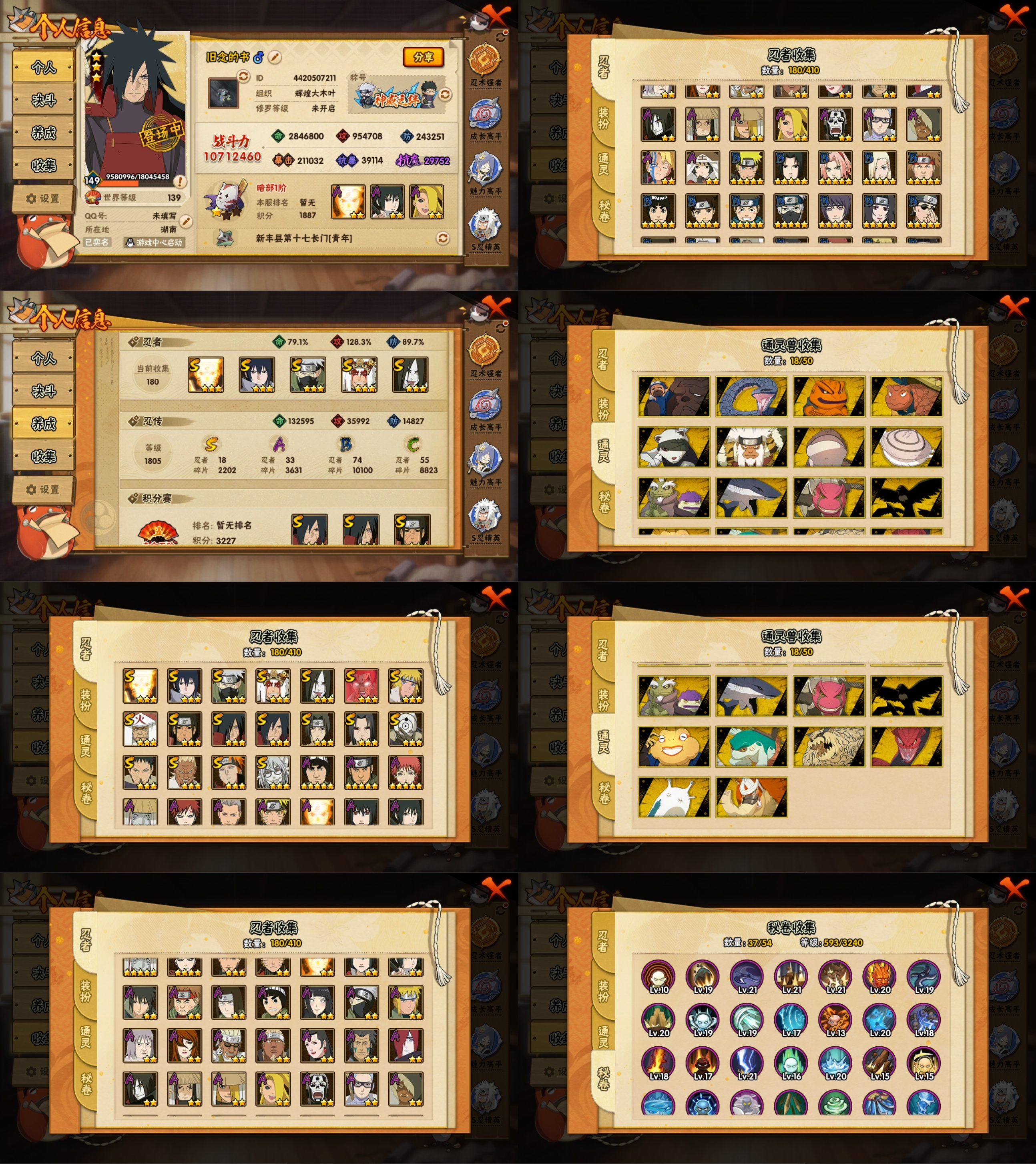 18s忍/33a忍/战力1071w/v8/区服2050 【s忍者】 艾「忍界大战」,宇智波斑「秽土转生·解」,宇智波佐助「永恒万花筒」,漩涡鸣人「九喇嘛连结」,迈特凯「死门」,宇智波带土「忍界大战」,千手柱间「秽土转生」,自来也「舞之豪杰」,旗木卡卡西「须佐能乎」,宇智波鼬「秽土转生」,药师兜「仙人模式」,宇智波斑「秽土转生」,宇智波斑「白面具」,宇智波鼬「须佐能乎」,佩恩「天道」,猿飞日斩,波风