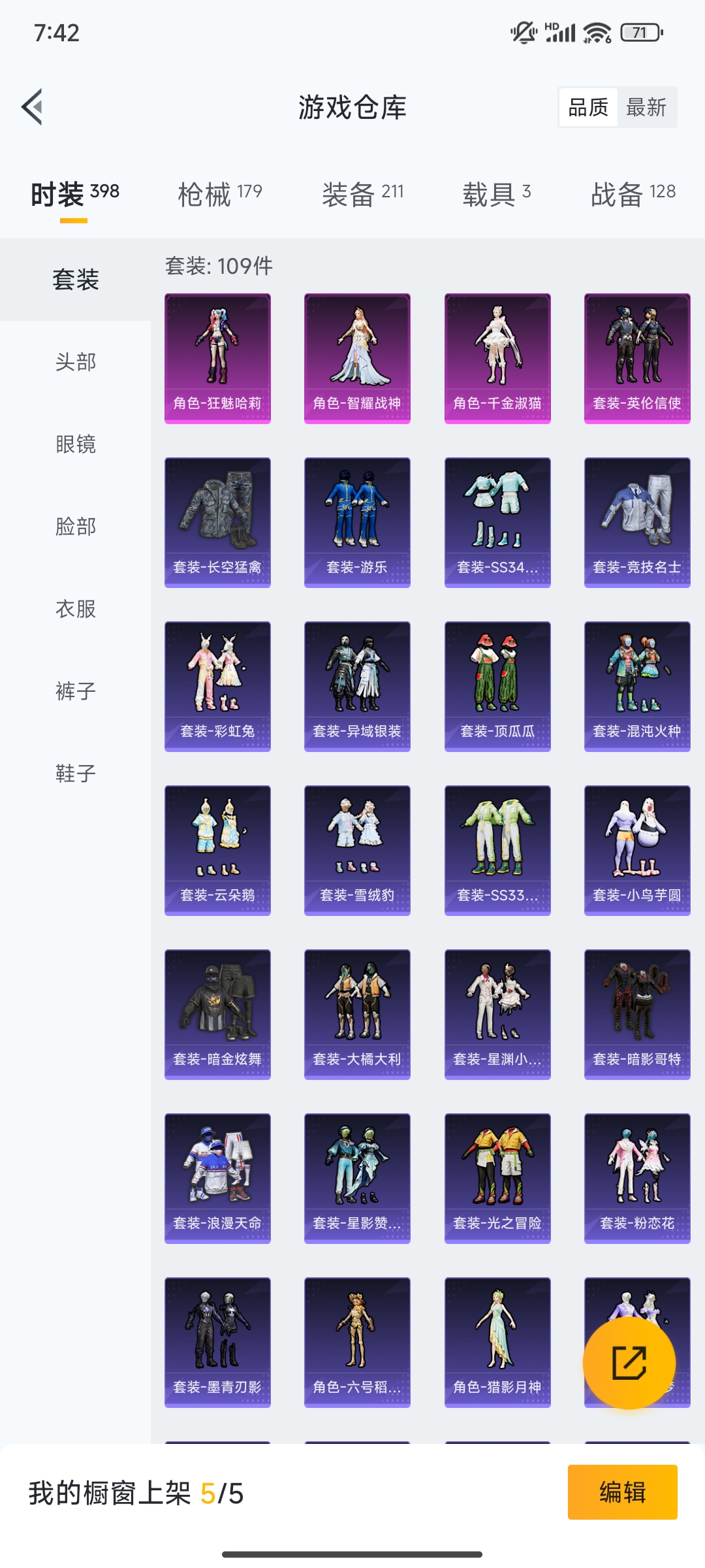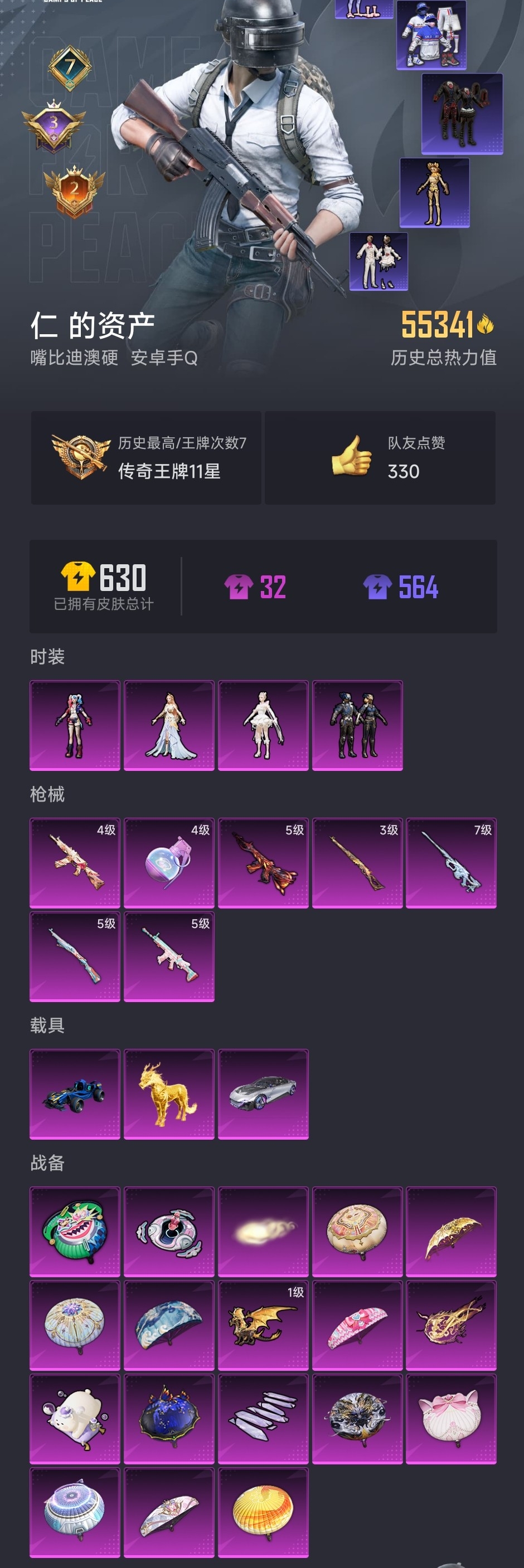 [10538416]【编号45158】【109套装179呛械】【4粉装7升级呛3载具 热门紫装:六号稻草人 暗影哥特】 角色-智耀战神 角色-狂魅哈莉 角色-千金淑猫 套装-英伦信使 合金龙骨蓝 护世瑞兽 星河领航磐石银 千金淑猫降落伞 星穹咏叹调降落伞 双重狂想降落伞 智耀战神降落伞 圣域龙灵降落伞 雪月幻音降落伞 鬼刀降落伞 樱桃泡泡降落伞 时空协奏降落伞 精灵梦叶罗丽降落伞 墨龙九天降落伞 祥瑞锦鲤降落伞 齐天大圣飞行器 幻星舰长飞行器 万象金身飞行器 圣域金龙飞行器1级 酣梦熊熊飞行器 镜域双华-灵镜之阶 aks-74u-星穹咏叹调[4级] 破片手留单-瓶中星球[4级] kar98k-圣域龙灵[3级] m200-伏羲圣卦[7级] kar98k-巳巳如意[5级] scar-l-锦绣绵绵[5级] m416-风花雪月[5级]