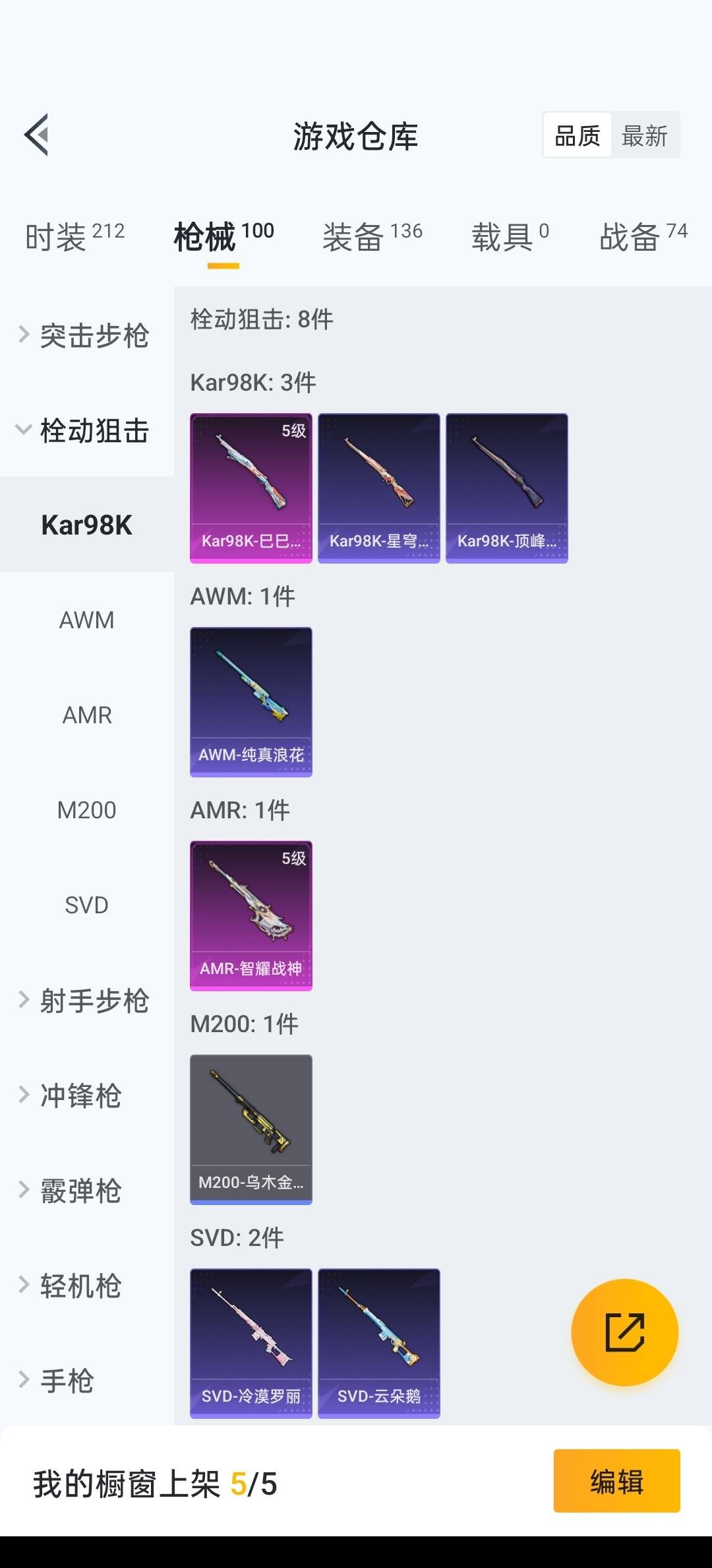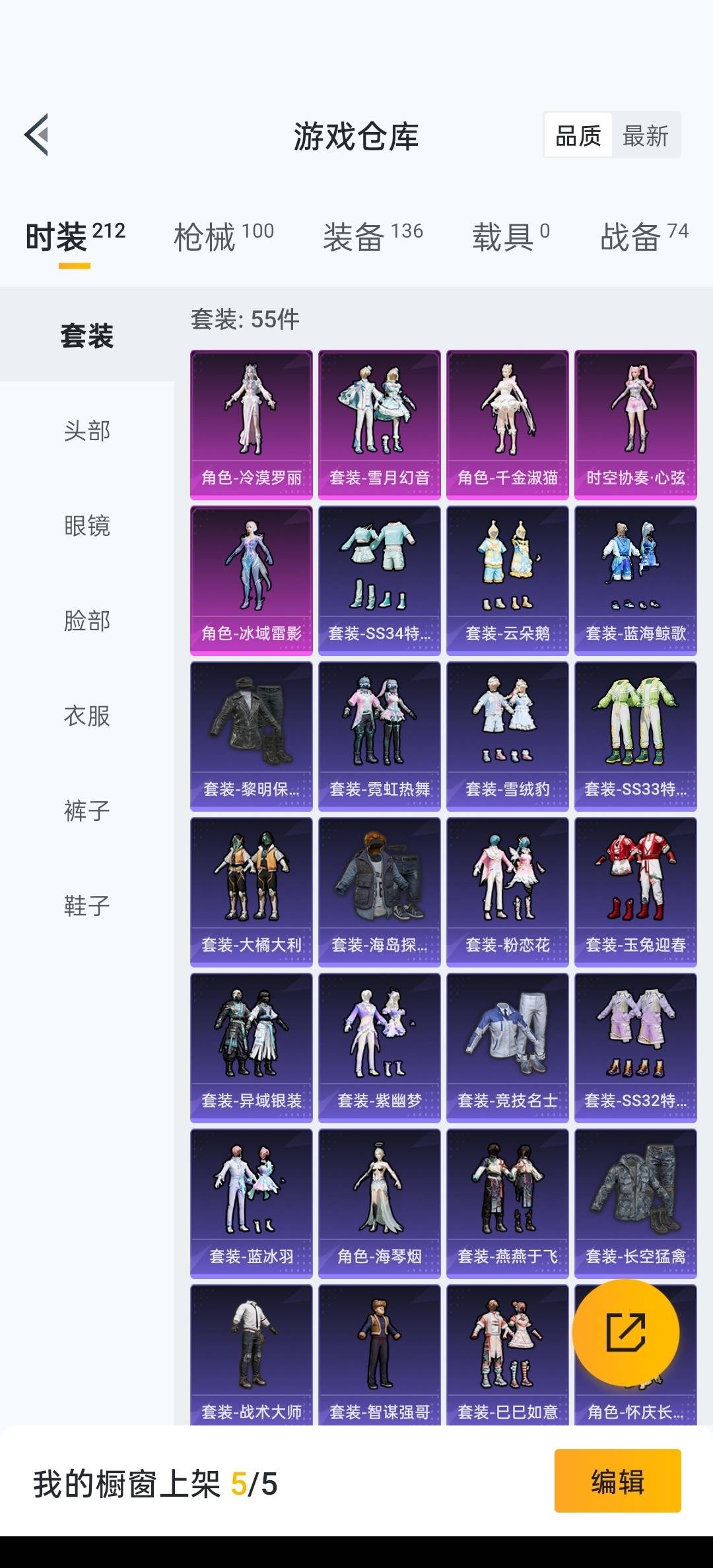 5粉装 4特效呛 5印记 可二次 可修改实名 热门装扮:时空协奏·心弦千金淑猫雪月幻音冷漠罗丽冰域雷影 稀有呛皮:amr-智耀战神kar98k-巳巳如意aks-74u-星穹咏叹调 五级特效呛:五级kar98k-巳巳如意五级amr-智耀战神五级aks-74u-星穹咏叹调 一级特效呛:一