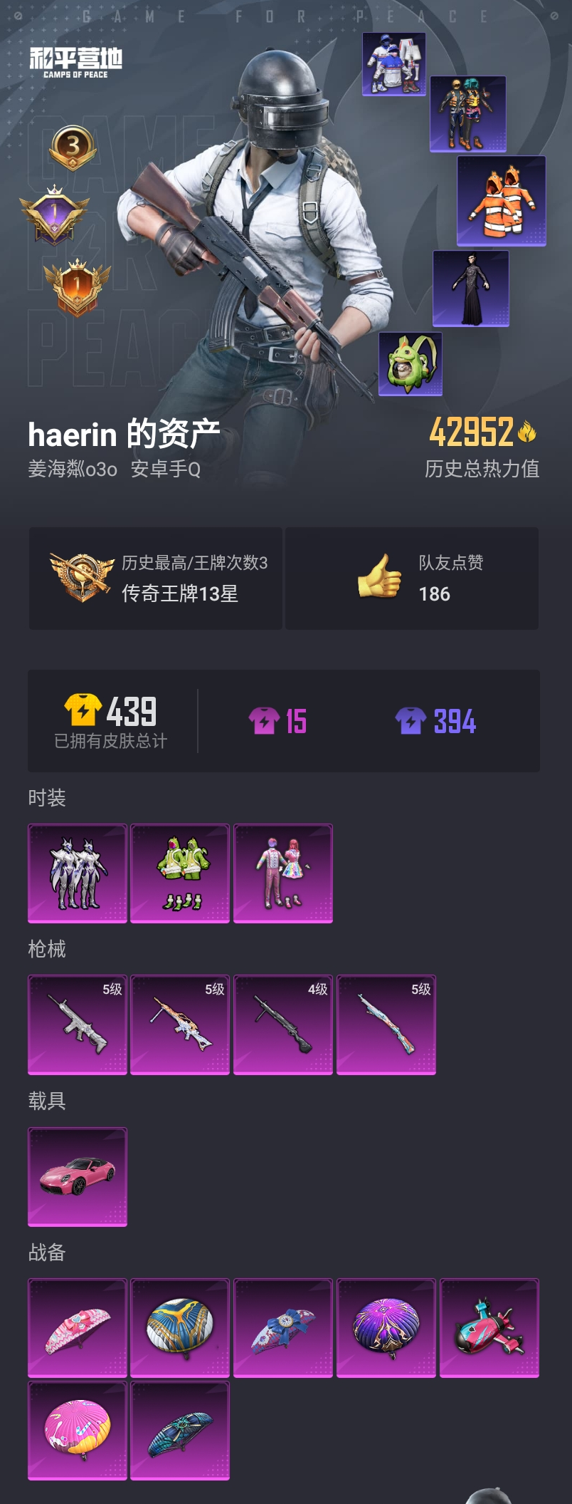 【和平精英】【lyhp9980】3粉装4特效呛1载具 彩虹糖 恐龙拽拽 天命 深海小丑鱼 申公豹 5级纯梦死噶 保时捷911敞篷 3粉装,4特效呛,1载具,历史最高段位:传奇王牌13星 王牌印记3次 热力值:42952,93套装,139呛械,129装备,58战备;套装:套装-天使彩虹糖,套装-恐龙拽拽,套装-紫电风暴,套装-猎鹰,套装-青年教官,套装-蓝色运动,套装-黄色伏地魔,套装-白色伏地魔,套装-黑色伏地魔,套装-竞技名士,套装-酒红色名流,套装-长空猛禽,套装-浪漫天命,套装-战地英姿,套装-甜蜜告白,套装-滨海假日,套装-完美偶像,套装-人气偶像,套装-街头潮人,套装-酷萌兔限定,套装-千禧之恋,套装-怒火燎原,套装-魅力单车,套装-绮丽涂鸦,套装-竞技达人朋克,套装-破晓战魂,套装-幻世战舞者,套装-弄潮海豚,套装-深海小丑鱼,套装-风暴特警,套装-格斗先锋,套装-小丑鱼,套装-万圣娃娃,套装-破蛋小黄鸡,套装-疯狂小兔子,套装-北国孤狼,套装-鹤鸣,套装-白熊同盟,套装-夏日音浪,套装-探宝勇士,套装-牛气满满,套装-ss18特训,套装-龙宫之主,套装-ss16特训,套装-ss17特训,套装-瑞龙福将,套装-团圆交子,套装-焰山流火,套装-冰爽风暴,套装-极乐追光,套装-福星高照,套装-虎虎生威吉莉,套装-异彩先驱,套装-霓虹极客,套装-空投萌叽,套装-ss19特训,套装-飞驰魅影,套装-音速流光,套装-炫蓝之夏,套装-ss20特训,套装-浑天鲲鹏,套装-猎梦纪元,套装-甜心亚梦,套装-虚音幻奏,套装-ss21特训,套装-ss22特训,套装-绯格组合,套装-王牌教练,套装-ss26特训,套装-漫游都市,套装-恋语绒绒,角色-无面战甲,套装-异域银装,角色-蜜桃派对,套装-ss31特训,套装-鱼渊荷华,套装-燕燕于飞,套装-紫幽梦,套装-ss33特训,套装-云朵鹅,套装-ss32特训,套装-彩虹兔,套装-蓝冰羽,套装-顶瓜瓜,套装-雪绒豹,套装-元气之梦,套装-ss34特训,套装-擎苍青焰,套装-朱霞炽焰,角色-申公豹,套装-游乐,套装-凌霄紫焰,套装-薄荷星砂;呛皮:akm-缤纷海域,akm-破晓战魂,akm-彩虹符号,akm-虎虎生威,akm-极光猎影,akm-玄冥寒域,m16a4-甜心亚梦,m16a4-幻世战舞者,5级scar-l-纯梦嫁纱,scar-l-红色方程式,scar-l-龙宫之主,scar-l-暗夜玫瑰,scar-l-玉兔迎春,scar-l-啾咪啾咪,m416-蓝色火焰,m416-绯红前夜,m416-红色方程式,m416-暗星紫秘,m416-糯团青竹,m416-萌萌史莱姆,m416-炽阳奇点,groza-蓝莓炮弹,groza-异彩先驱,groza-无面战甲,aug-耀粉歌者,aug-异域银装,aug-紫晶流影,q-绚金瑰梦,q-飞驰魅影,m762-绯红前夜,m762-甜心宝贝,m762-瑞龙福将,m762-萌物绒绒,m762-云朵鹅,mk47-乌木金纹,g36c-暗夜玫瑰,g36c-炙焰牛王,g36c-乌木金纹,ac-val-甜心亚梦,ac-val-天降萌叽,蜜獾-天降萌叽,蜜獾-乌木金纹,famas-乌木金纹,arx-凌霄紫焰,5级kar98k-巳巳如意,kar98k-炫彩节奏,kar98k-洛神天依,kar98k-蓝莓炮弹,kar98k-飞驰魅影,kar98k-乌木金纹,m24-影袭,m24-炫彩节奏,m24-虎虎生风虎牙,m24-次元破裂哔哩哔哩,m24-乌木金纹,win94-瑞龙福将,莫辛纳甘-乌木金纹,amr-妙红点点,amr-乌木金纹,m200-次元竞界,m200-乌木金纹,svd-云朵鹅,sks-迅猛狂鲨,sks-炫彩节奏,sks-大we天龙wegame,mini14-穿刺龙虾,mini14-异彩先驱,mk14-暗星紫秘,mk14-乌木金纹,mk14-紫幽梦,mk14-薄荷星砂,m417-玩趣呆呆,uzi-影袭,uzi-炫彩节奏,uzi-天降萌叽,uzi-啾咪啾咪,ump45-夜灯,ump45-蓝色火焰,ump45-时空追击者,vect-燕燕于飞,汤姆逊-异彩先驱,野牛-夜灯,野牛-燕燕于飞,野牛-乌木金纹,mp5k-蓝莓炮弹,mp5k-异彩先驱,aks-74u-鸡智如我,aks-74u-次元竞界,aks-74u-乌木金纹,js9-凌霄紫焰,p90-飞驰魅影,p90-乌木金纹,s686-红色方程式,s1897-飞驰魅影,s1897-紫幽梦,s12k-香水柠檬,s12k-龙宫之主,s12k-瑞龙福将,s12k-幻世战舞者,dbs-暗星紫秘,dbs-甜心亚梦,spas-12-燕燕于飞,spas-12-云朵鹅,m249-破晓战魂,m249-彩虹符号,m249-糯团青竹,m249-无面战甲,4级dp-28-豹影疾电,dp-28-彩虹符号,dp-28-橘柚倾心,dp-28-甜心亚梦,mg3-瑞龙福将,mg3-幻世战舞者,mg3-乌木金纹,pkm-啾咪啾咪,pkm-紫幽梦,5级mg-36-沧焰双生,mg-36-凌霄紫焰,p92-紫幽梦,p92-凌霄紫焰,p1911-无面战甲,蝎式手呛-闲梦青缨,蝎式手呛-燕燕于飞,沙墨之鹦-云朵鹅,大砍刀-云朵鹅,撬棍-绯红前夜,撬棍-幻世战舞者,平底锅-绯红前夜,平底锅-瑞龙福将,平底锅-异彩先驱,平底锅-飞驰魅影,平底锅-甜心亚梦,平底锅-紫幽梦,平底锅-凌霄紫焰,十子怒-燕燕于飞,十子怒-异域银装,突击盾牌-万古烈焰,盐雾蛋-冰氧夏日,破片手留单-萌趣颜团子;载具:保时捷911 敞篷版星珀红;降落伞:童趣迷兔降落伞,暗夜玫瑰降落伞,暗星紫秘降落伞,蓝莓炮弹降落伞,环太平洋降落伞,樱桃泡泡降落伞,都市猎人降落伞,化学天才降落伞,海域冒险降落伞,沙场雄鹰降落伞,龙宫之主降落伞,2022烟花降落伞,瑞龙福将降落伞,虎虎生威降落伞,异彩先驱降落伞,空投萌叽降落伞,飞驰魅影降落伞,月下萌萌兔降落伞,甜心亚梦降落伞,幻世战舞者降落伞,空岛之星降落伞,异域银装降落伞,无面战甲降落伞,燕燕于飞降落伞,紫幽梦降落伞,萌萌史莱姆降落伞,一举夺葵降落伞,云朵鹅降落伞,ss33王牌降落伞,凌霄紫焰降落伞,极光猎影降落伞,ss34王牌降落伞,次元竞界降落伞,紫菱降落伞,青羽降落伞,普通降落伞;滑翔尾迹:神秘黑猫飞行器,粉色滑翔尾迹,异域银装飞行器; 详情看图