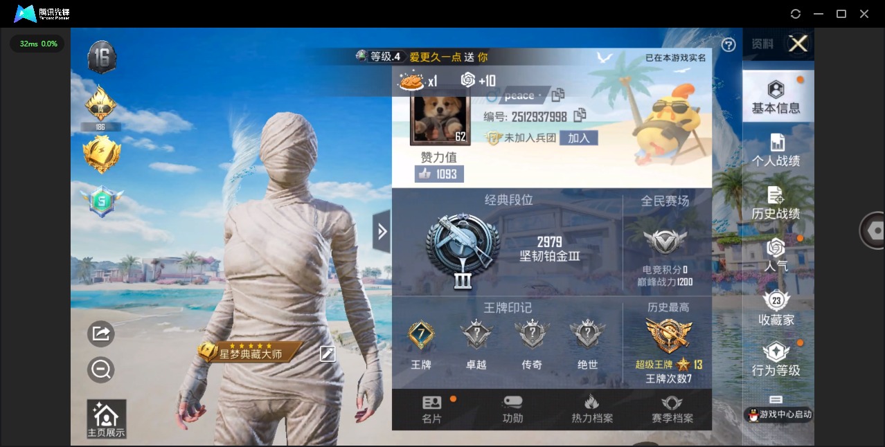 1特效呛 7印记 可二次 可修改实名 身法装备:冥河战士老木乃伊 优质装备:冥河战士老木乃伊木乃伊套装(老)冥河战士奇异狩猎者kar98k-巳巳如意 五级特效呛:五级kar98k-巳巳如意 紫色装扮:ss22特训ss23特训ss21特训ss31特训套装ss30特训套装