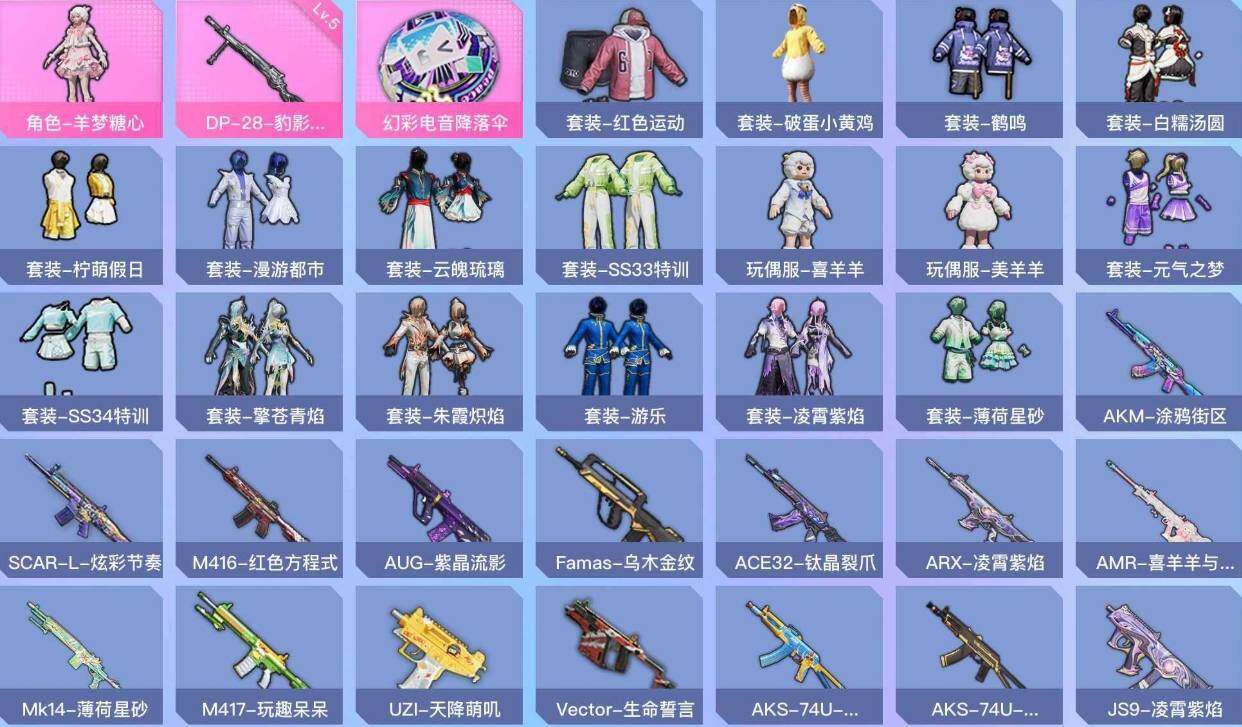 [11335157]【商品标题】:安卓【精品小号/1粉装-1满特效呛】 手q6842热力值-0印记-18套装-23呛皮 【特效呛等级】:dp-28-豹影疾电五级 【优质套装】:角色-羊梦糖心 【稀有套装】:套装-朱霞炽焰,套装-凌霄紫焰,套装-擎苍青焰,玩偶服-美羊羊,玩偶服-喜羊羊 【优质武器皮肤】:dp-28-豹影疾电 【稀有武器皮肤】:scar-l-炫彩节奏,m416-红色方程式,ace32-钛晶裂爪,arx-凌霄紫焰,uzi-天降萌叽,vect-生命誓言,js9-凌霄紫焰,amr-喜羊羊与灰太狼,dbs-荧海星豚,m249-绯穹魔姬,mg-36-凌霄紫焰,p92-凌霄紫焰,平底锅-凌霄紫焰 【其他套装】:套装-柠萌假日,套装-破蛋小黄鸡,套装-红色运动,套装-鹤鸣 【优质降落伞】:幻彩电音降落伞 【营地id】:1004813020
