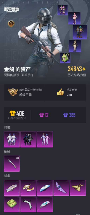 【和平精英】【lyhp10316】3粉1特效呛 梦幻火箭 新星烈龙 暗夜玫瑰 小丑鱼 猫包 3粉装,1特效呛,0载具,历史最高段位:超级王牌 王牌印记1次 热力值:34843,83套装,117呛械,125装备,63战备;套装:套装-梦幻火箭,套装-新星烈龙,套装-暗夜玫瑰,套装-特训学院,套装-猎鹰,套装-青年教官,套装-橘黑制服,套装-红色运动,套装-黄色运动,套装-蓝色运动,套装-黄色伏地魔,套装-白色伏地魔,套装-竞技名士,套装-酒红色名流,套装-长空猛禽,套装-冷焰舞者,套装-甜蜜告白,套装-滨海假日,套装-魅力单车,套装-竞技达人朋克,套装-都市漫游者,套装-深海小丑鱼,套装-缤纷果语,套装-冰川特警,套装-格斗先锋,套装-鹤鸣,套装-夏日音浪,套装-探宝勇士,套装-牛气满满,套装-战术大师,套装-牛气冲天,套装-ss18特训,套装-电音精灵,套装-ss16特训,套装-暴风机械师,套装-时空追击者,套装-暗夜魅影,套装-暗夜傀儡,套装-ss17特训,套装-瑞龙福将,套装-团圆交子,套装-福星高照,套装-豚鼠丹丹,套装-虎虎生威吉莉,套装-异彩先驱,套装-霓虹极客,套装-空投萌叽,套装-ss19特训,套装-飞驰魅影,套装-音速流光,套装-炫蓝之夏,套装-ss20特训,套装-覆海蛟龙,套装-ss21特训,套装-玉兔迎春,套装-ss22特训,套装-田园牧歌,套装-轻风白浪,套装-熠彩粉晶,套装-光之冒险,套装-绯格组合,套装-ss23特训,套装-莱茵河畔,套装-妙红点点,套装-幻彩翩翩,套装-柠萌假日,套装-ss24特训,套装-龟仙人,套装-ss25特训,套装-惊鸿侠骨,套装-锦衣飞扬,套装-绝对偶像,套装-龙的传人,套装-ss26特训,套装-快闪甜心,套装-春光漫游,套装-粉锦千层,套装-空岛之星,套装-ss28特训,角色-白光莹,角色-情公主,套装-海盐绵绵冰,套装-星途旅人;呛皮:akm-生命誓言,akm-破晓战魂,akm-虎虎生威,akm-龙的传人,m16a4-幻世战舞者,m16a4-冰河战士,scar-l-玉兔迎春,scar-l-甜蜜旋律,scar-l-星途旅人,scar-l-海盐豹豹,m416-蓝色火焰,m416-红色方程式,m416-糯团青竹,groza-治愈之星,groza-蓝莓炮弹,groza-异彩先驱,groza-恐龙拽拽,groza-田园牧歌,aug-天降萌叽,q-彩虹符号,q-飞驰魅影,m762-瑞龙福将,m762-暗夜鎏金,m762-第五大道,m762-天降萌叽,mk47-乌木金纹,mk47-妙红点点,g36c-时空追击者,g36c-乌木金纹,ac-val-乌木金纹,ac-val-快闪甜心,蜜獾-垂柳戏鸭,蜜獾-天降萌叽,5级kar98k-巳巳如意,kar98k-梦幻火箭,kar98k-炫彩节奏,kar98k-飞驰魅影,kar98k-乌木金纹,m24-炫彩节奏,m24-乌木金纹,awm-恐龙拽拽,win94-瑞龙福将,莫辛纳甘-乌木金纹,amr-妙红点点,amr-乌木金纹,m200-惊鸿侠骨,sks-时空追击者,sks-天之羽翼,vss-田园牧歌,mini14-炫彩节奏,mini14-耀粉歌者,mini14-异彩先驱,mini14-旋转彩虹,mini14-香桃花海,mk14-乌木金纹,slr-四圣焕新,m417-惊鸿侠骨,mk20-h-快闪甜心,mk20-h-星途旅人,mk20-h-乌木金纹,uzi-炫彩节奏,uzi-天降萌叽,uzi-啾咪啾咪,ump45-时空追击者,ump45-灵符少年,vect-生命誓言,vect-暗夜玫瑰,vect-田园牧歌,汤姆逊-耀粉歌者,汤姆逊-异彩先驱,汤姆逊-暗夜鎏金,野牛-乌木金纹,mp5k-蓝莓炮弹,mp5k-异彩先驱,mp5k-乌木金纹,p90-飞驰魅影,p90-快闪甜心,p90-乌木金纹,s686-橘柚倾心,s1897-炫彩节奏,s1897-飞驰魅影,s1897-暗夜鎏金,s1897-乌木金纹,s12k-瑞龙福将,s12k-玩趣呆呆,dbs-时空追击者,dbs-彩虹符号,dbs-乌木金纹,aa12-g-炫光之旅,spas-12-田园牧歌,spas-12-乌木金纹,m249-破晓战魂,m249-彩虹符号,m249-妙红点点,dp-28-齐天大圣,mg3-瑞龙福将,mg3-幻世战舞者,mg3-乌木金纹,mg3-暗夜行者,mg3-妙红点点,mg3-惊鸿侠骨,p1911-粉锦千层,沙墨之鹦-王牌投手,沙墨之鹦-快闪甜心,平底锅-时空追击者,平底锅-瑞龙福将,平底锅-异彩先驱,平底锅-飞驰魅影,平底锅-田园牧歌,平底锅-光之冒险,平底锅-妙红点点,平底锅-惊鸿侠骨,平底锅-快闪甜心,平底锅-空岛之星,爆炸猎弓-惊鸿侠骨,破片手留单-呆爆全场,破片手留单-巳巳如意;降落伞:四圣焕新降落伞,恐龙拽拽降落伞,未来歌姬降落伞,圣堂之誓降落伞,蓝海之火降落伞,白昼之火降落伞,化学天才降落伞,放飞梦想降落伞,时空追击者降落伞,2022烟花降落伞,瑞龙福将降落伞,虎虎生威降落伞,异彩先驱降落伞,飞驰魅影降落伞,月下萌萌兔降落伞,暗夜行者降落伞,绿草茵茵降落伞,田园牧歌降落伞,妙红点点降落伞,惊鸿侠骨降落伞,冰河战士降落伞,快闪甜心降落伞,海盐豹豹降落伞,紫菱降落伞,青羽降落伞,蝶舞翩翩降落伞,普通降落伞;滑翔尾迹:梦幻火箭飞行器,天之羽翼飞行器,庄周梦蝶飞行器,拂晓神骑飞行器,红色滑翔尾迹; 详情看图
