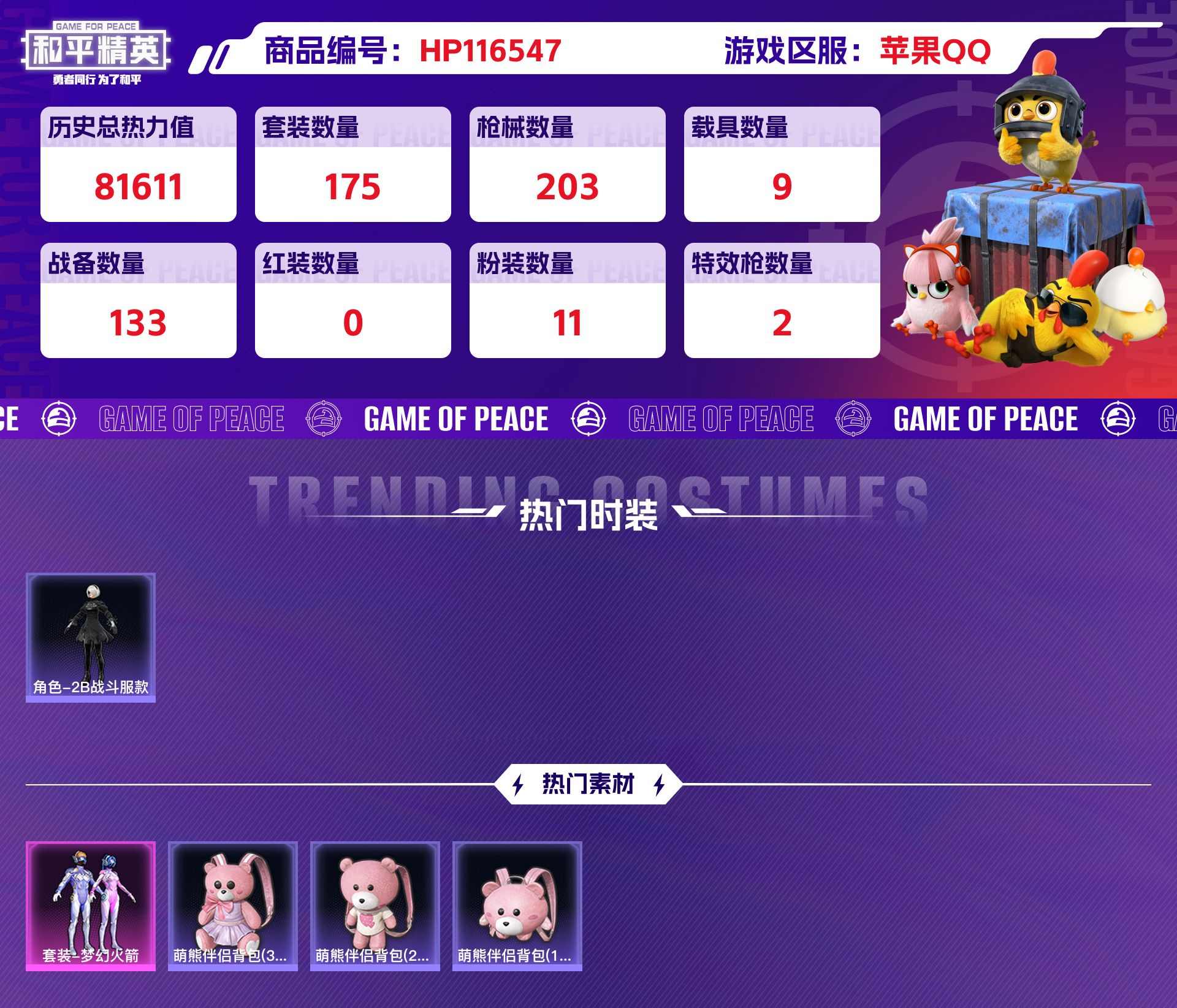 hp116547|可二次苹果qq 历史总热力值:81611 粉装数量:11 特效呛数量:2 载具数量:9 火箭少女 萌熊伴侣3件套