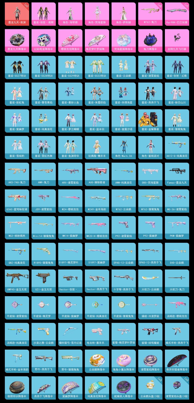 【和平精英】【lyhp11596】1红装3粉装3特效呛 2级敖渊 创世救赎 荧海星豚 6级鬼刃762 蓝螳螂 懒羊羊 3粉装,3特效呛,0载具,历史最高段位:超级王牌12星 王牌印记5次 热力值:30558,72套装,102呛械,127装备,50战备;套装:墨龙九天-敖渊,套装-创世·救赎,角色-萨利娅,角色-荧海星豚,套装-黄色运动,套装-黑色伏地魔,套装-竞技名士,套装-野性山猫,套装-长空猛禽,套装-旭日情侣,套装-冷焰舞者,套装-魅力单车,套装-绮丽涂鸦,套装-破晓战魂,套装-森林游猎者,套装-金耀舞者,套装-青涩时光,套装-缤纷果语,套装-龙魂突击队,套装-元素星魂,套装-破蛋小黄鸡,套装-霓虹街区,套装-白熊同盟,套装-战术大师,套装-曼妙人鱼,套装-热情海星,套装-纯真浪花,套装-柠萌假日,套装-青玉碎影,套装-龟仙人,套装-冰河战士,套装-漫游都市,套装-ss27特训,套装-恋语绒绒,套装-ss28特训,角色-mark.06,套装-海盐绵绵冰,套装-蝶变,套装-创世·幻影,套装-粉日山川,套装-ss29特训,套装-雏菊兔兔,套装-萝兰蝴蝶,角色-无面战甲,角色-蜜桃派对,套装-星途旅人,套装-ss30特训,套装-ss31特训,套装-鱼渊荷华,套装-燕燕于飞,套装-智谋强哥,角色-风玲,角色-海琴烟,套装-紫幽梦,套装-ss33特训,套装-云朵鹅,套装-巳巳如意,套装-ss32特训,套装-彩虹兔,套装-蓝冰羽,套装-顶瓜瓜,套装-雪绒豹,套装-霓虹热舞,套装-蜜露汐语,玩偶服-懒羊羊,套装-元气之梦,套装-ss34特训,套装-擎苍青焰,套装-朱霞炽焰,套装-游乐,套装-凌霄紫焰,套装-薄荷星砂;呛皮:蜜獾-天降萌叽,蜜獾-精灵梦叶罗丽,蜜獾-绯穹魔姬,蜜獾-乌木金纹,m416-蓝色火焰,m416-红色方程式,aug-耀粉歌者,aug-天降萌叽,aug-紫晶流影,akm-破晓战魂,arx-凌霄紫焰,scar-l-星途旅人,scar-l-海盐豹豹,6级m762-鬼刀,m762-雏菊兔兔,m762-云朵鹅,q-彩虹符号,q-纯真浪花,m16a4-冰河战士,groza-海盐豹豹,groza-无面战甲,famas-墨龙九天,famas-乌木金纹,g36c-星穹咏叹调,5级kar98k-巳巳如意,amr-鬼刀,amr-乌木金纹,m200-乌木金纹,m24-樱桃泡泡,awm-天降萌叽,awm-纯真浪花,svd-云朵鹅,mini14-炫彩节奏,mini14-香桃花海,mini14-雏菊兔兔,mk20-h-星途旅人,mk20-h-樱桃泡泡,mk20-h-乌木金纹,sks-炫彩节奏,mk14-冰河战士,mk14-紫幽梦,mk14-薄荷星砂,ump45-生命誓言,ump45-金玉无双,p90-玩趣呆呆,p90-巳巳如意,汤姆逊-纯真浪花,汤姆逊-樱桃泡泡,mp5k-乌木金纹,vect-生命誓言,vect-创世·救赎,vect-燕燕于飞,aks-74u-鬼刀,aks-74u-鸡智如我,aks-74u-乌木金纹,js9-凌霄紫焰,野牛-雏菊兔兔,野牛-燕燕于飞,uzi-金玉无双,uzi-冰河战士,s686-巳巳如意,s1897-精灵梦叶罗丽,s1897-紫幽梦,spas-12-燕燕于飞,spas-12-云朵鹅,spas-12-乌木金纹,aa12-g-纯真浪花,dbs-荧海星豚,dbs-乌木金纹,m249-金丰海韵,m249-无面战甲,pkm-啾咪啾咪,pkm-紫幽梦,mg3-幻世战舞者,mg3-桃粉嫣然,mg-36-凌霄紫焰,5级dp-28-豹影疾电,蝎式手呛-金丰海韵,蝎式手呛-燕燕于飞,p92-紫幽梦,p92-凌霄紫焰,r1895-雏菊兔兔,电击呛-喜羊羊与灰太狼,短管霰弹-竹节火铳,沙墨之鹦-云朵鹅,p1911-无面战甲,撬棍-冷漠罗丽,大砍刀-鬼刀,大砍刀-云朵鹅,平底锅-空岛之星,平底锅-精灵梦叶罗丽,平底锅-纯真浪花,平底锅-雏菊兔兔,平底锅-紫幽梦,平底锅-属我最6,平底锅-凌霄紫焰,破片手留单-星途旅人,破片手留单-巳巳如意,爆炸猎弓-雪月幻音,十子怒-燕燕于飞,十子怒-异域银装,盐雾蛋-冰氧夏日;降落伞:极限特训降落伞,墨龙九天降落伞,精灵梦叶罗丽降落伞,樱桃泡泡降落伞,鬼刀降落伞,幻彩电音降落伞,荧海星豚降落伞,奇异狩猎者降落伞,天涯共此时降落伞,和平使命降落伞,冰河战士降落伞,纯真浪花降落伞,ss28王牌降落伞,海盐豹豹降落伞,兔兔小魔女降落伞,雏菊兔兔降落伞,ss29王牌降落伞,星途旅人降落伞,无面战甲降落伞,燕燕于飞降落伞,ss31王牌降落伞,紫幽梦降落伞,云朵鹅降落伞,ss33王牌降落伞,巳巳如意降落伞,凌霄紫焰降落伞,蛇蝎美人降落伞,ss34王牌降落伞,普通降落伞;滑翔尾迹:龙翔九天飞行器,粉色滑翔尾迹,破刃行动尾迹; 详情看图