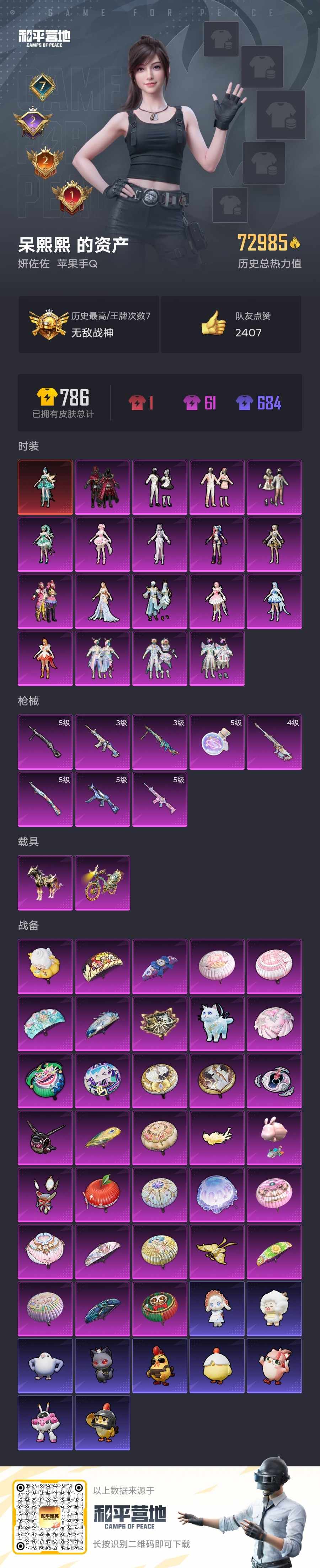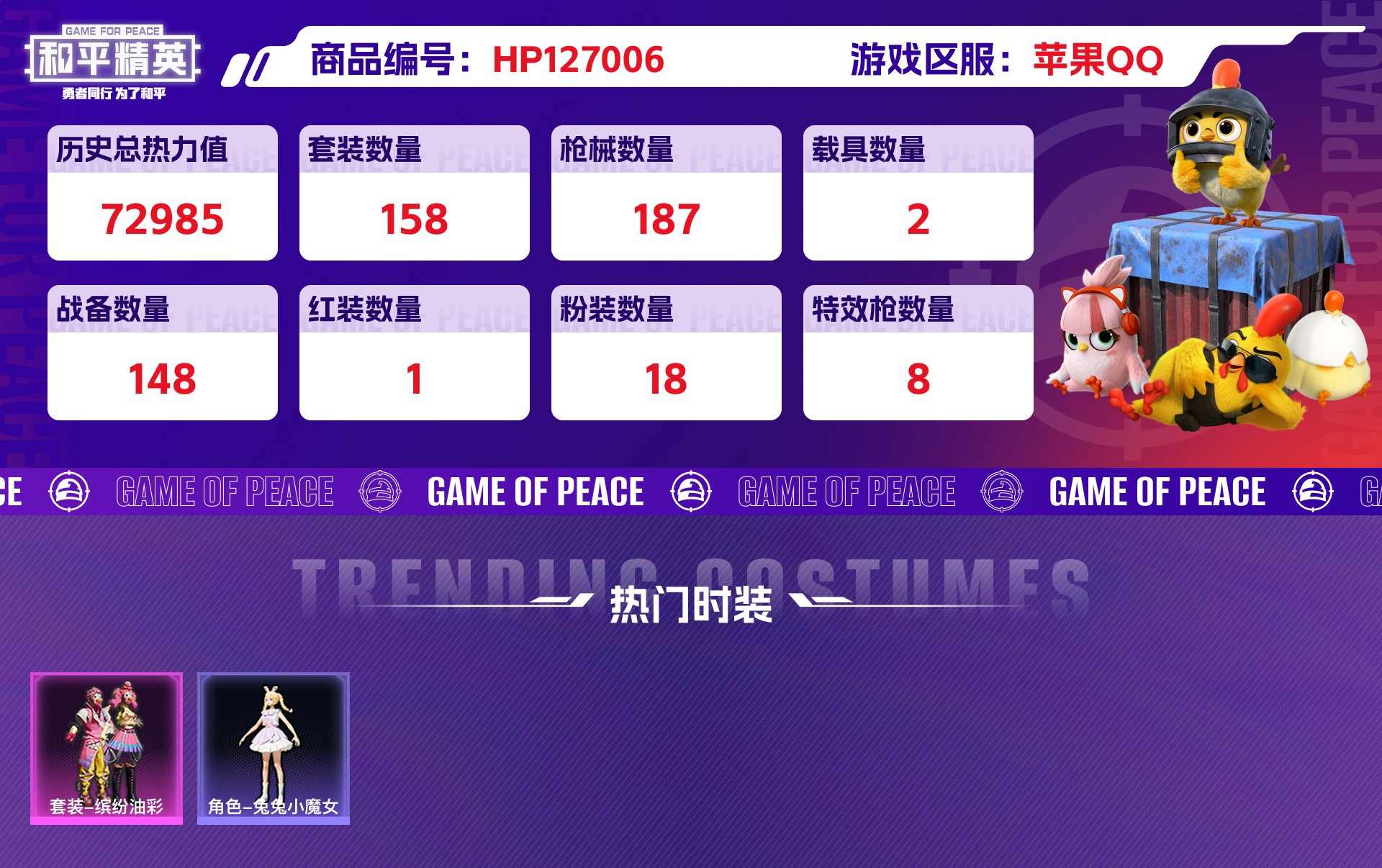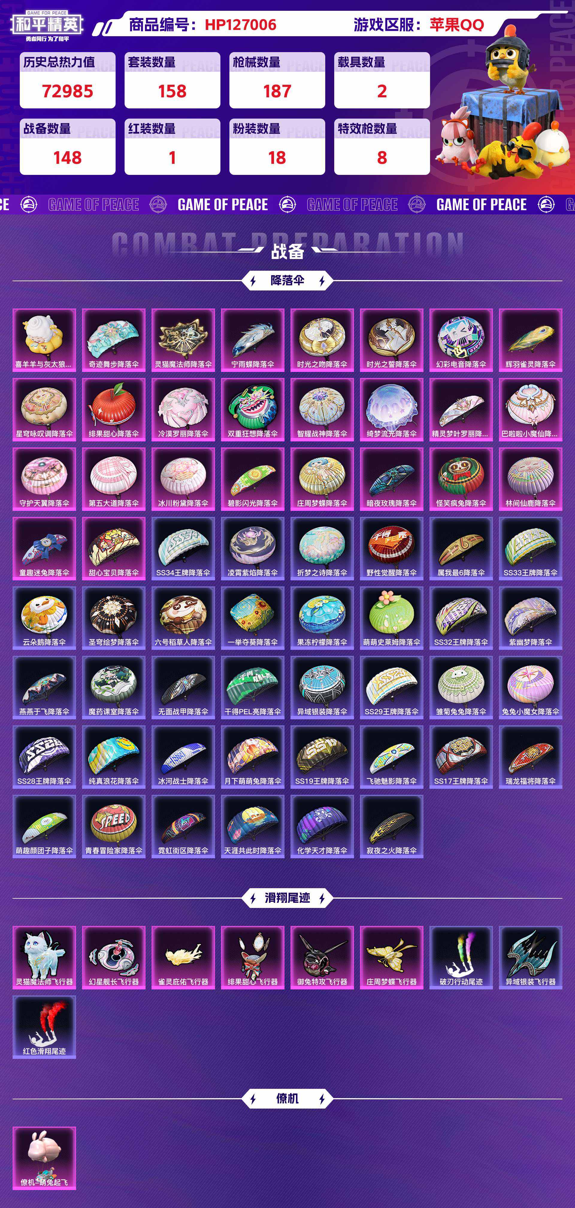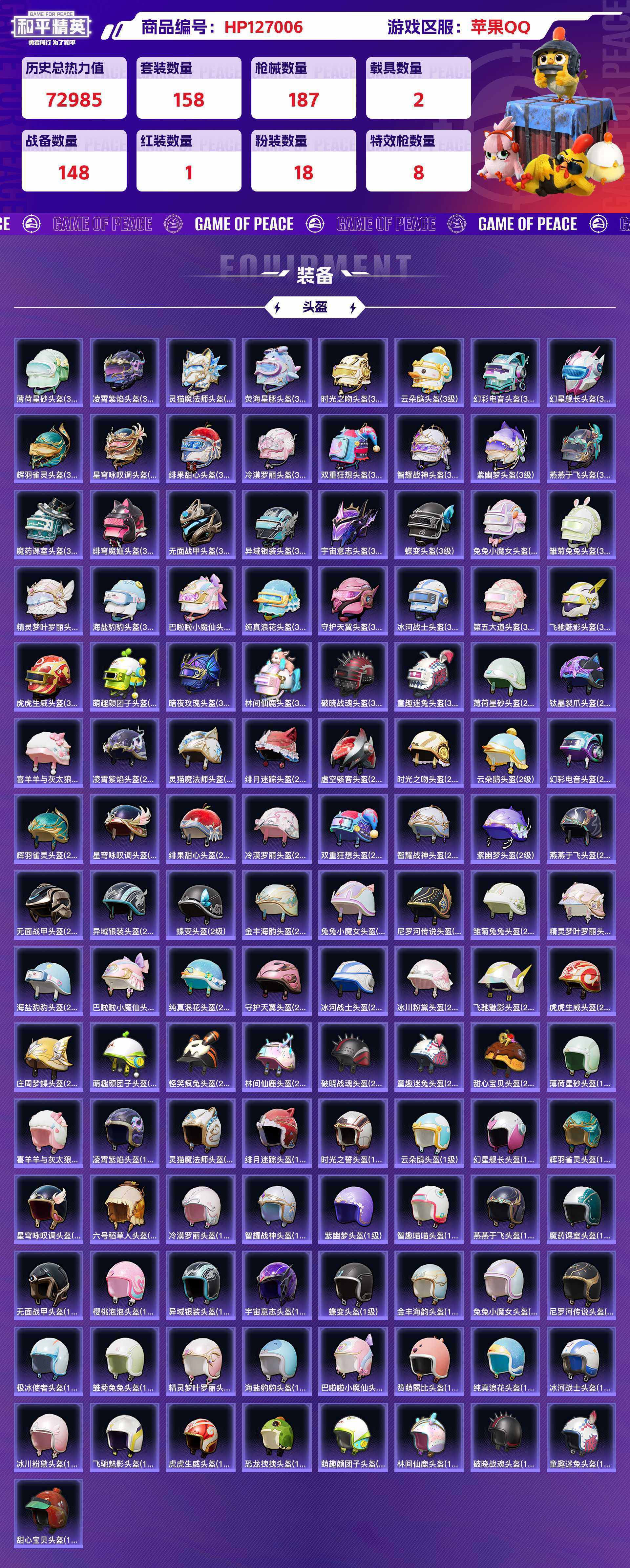 hp127006|精品号苹果qq红装1(辉羽雀灵-初翊)粉装18(小蓝 美琪 美雪 等)粉呛8(m416-电玩时刻 ump45-量子极限 kar98k-巳巳如意 等)载具2(辉羽雀灵自行车黑曜夜骑)