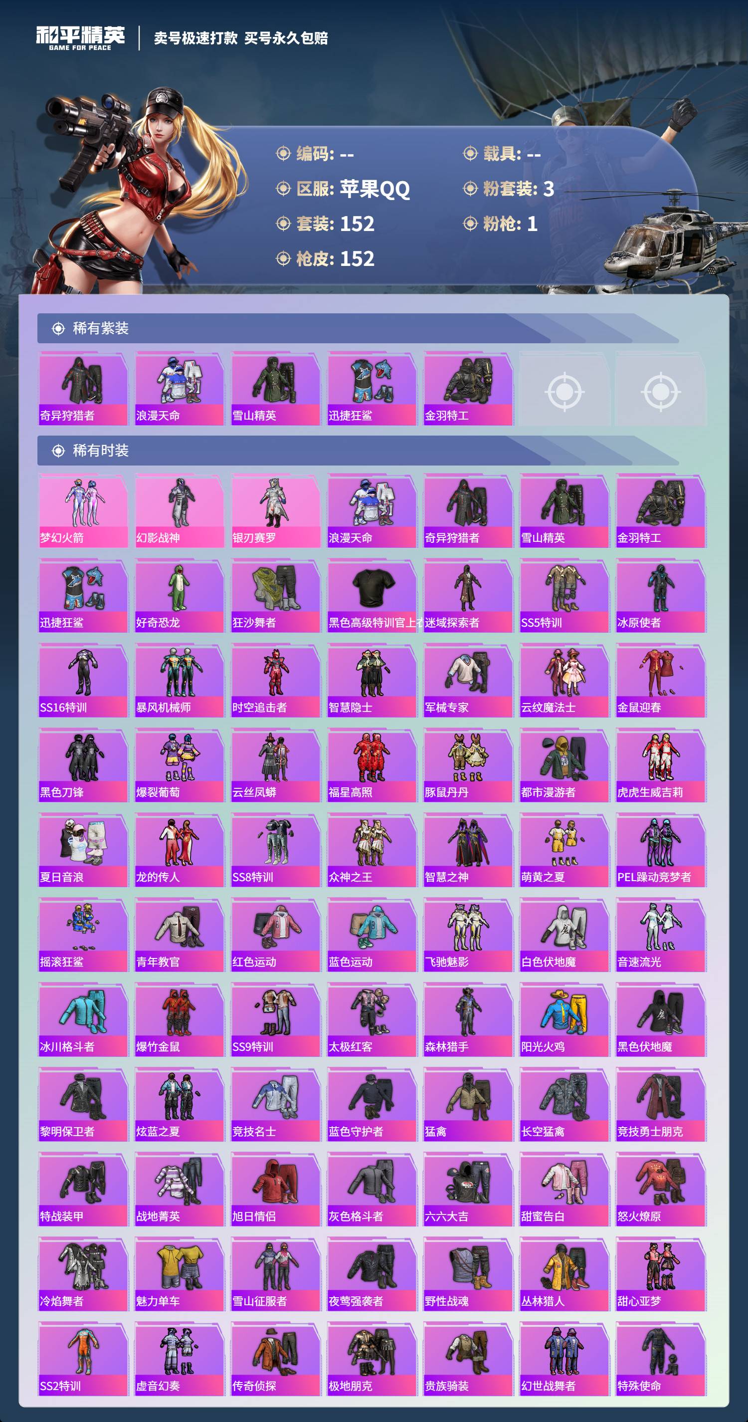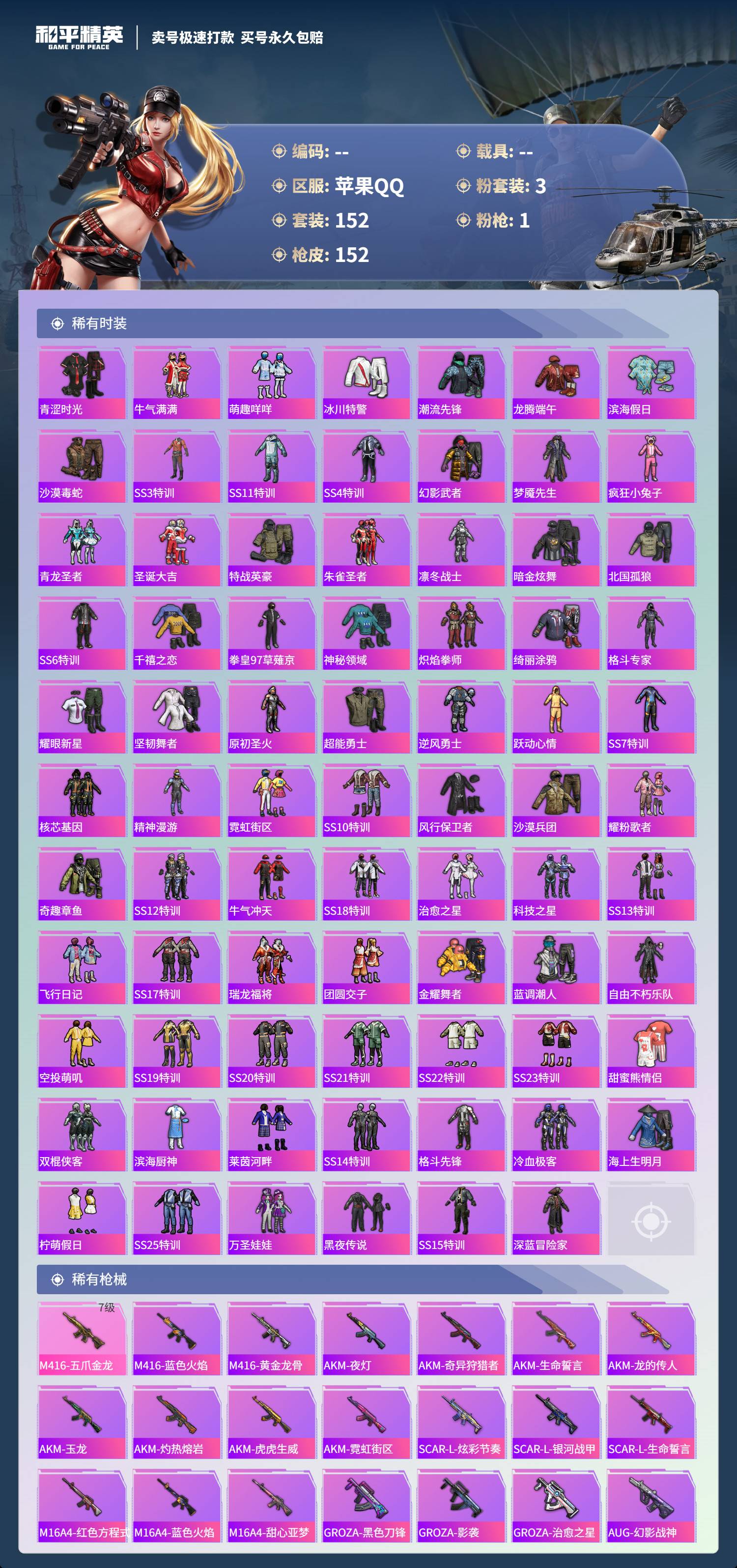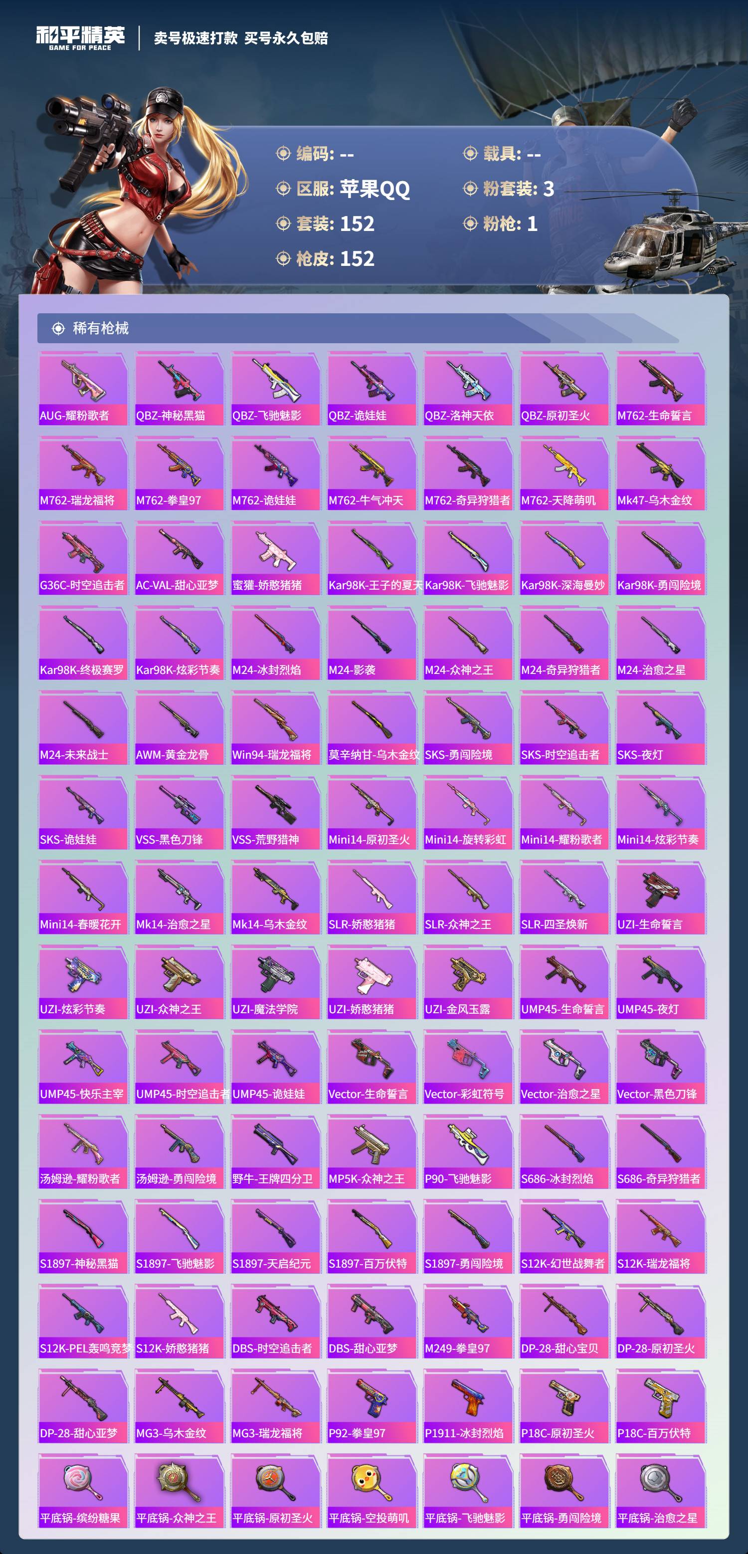 006fs:k2751苹果手q-12王牌印记-3粉装-1特效呛-50000热力值-152套装-152呛皮 【3粉装】梦幻火箭幻影战神银刃赛罗 【1特效呛】m416-五爪金龙-7级 【5稀有紫装】奇异狩猎者浪漫天命雪山精英迅捷狂鲨金羽特工 【153稀有时装】浪漫天命奇异狩猎者雪山精英金羽特工迅捷狂鲨好奇恐龙狂沙舞者黑色高级特训官上衣迷域探索者ss5特训冰原使者ss16特训暴风机械师时空追击者智慧隐士军械专家云纹魔法士金鼠迎春黑色刀锋爆裂葡萄云丝凤蟒福星高照豚鼠丹丹都市漫游者虎虎生威吉莉夏日音浪龙的传人ss8特训众神之王智慧之神萌黄之夏pel躁动竞梦者摇滚狂鲨青年教官红色运动蓝色运动飞驰魅影白色伏地魔音速流光冰川格斗者爆竹金鼠ss9特训太极红客森林猎手阳光火鸡黑色伏地魔黎明保卫者炫蓝之夏竞技名士蓝色守护者猛禽长空猛禽竞技勇士朋克特战装甲战地菁英旭日情侣灰色格斗者六六大吉甜蜜告白怒火燎原冷焰舞者魅力单车雪山征服者夜莺强袭者野性战魂丛林猎人甜心亚梦ss2特训虚音幻奏传奇侦探极地朋克贵族骑装幻世战舞者特殊使命青涩时光牛气满满萌趣咩咩冰川特警潮流先锋龙腾端午滨海假日沙漠毒蛇ss3特训ss11特训ss4特训幻影武者梦魇先生疯狂小兔子青龙圣者圣诞大吉特战英豪朱雀圣者凛冬战士暗金炫舞北国孤狼ss6特训千禧之恋拳皇97草薙京神秘领域炽焰拳师绮丽涂鸦格斗专家耀眼新星坚韧舞者原初圣火超能勇士逆风勇士跃动心情ss7特训核芯基因精神漫游霓虹街区ss10特训风行保卫者沙漠兵团耀粉歌者奇趣章鱼ss12特训牛气冲天ss18特训治愈之星科技之星ss13特训飞行日记ss17特训瑞龙福将团圆交子金耀舞者蓝调潮人自由不朽乐队空投萌叽ss19特训ss20特训ss21特训ss22特训ss23特训甜蜜熊情侣双棍侠客滨海厨神莱茵河畔ss14特训格斗先锋冷血极客海上生明月柠萌假日ss25特训万圣娃娃黑夜传说ss15特训深蓝冒险家 【152稀有呛械】m416-五爪金龙/7级m416-乌木金纹m416-蓝色火焰m416-黄金龙骨akm-夜灯akm-奇异狩猎者akm-生命誓言akm-乌木金纹akm-龙的传人akm-玉龙akm-灼热熔岩akm-虎虎生威akm-霓虹街区scar-l-乌木金纹scar-l-炫彩节奏scar-l-银河战甲scar-l-生命誓言m16a4-红色方程式m16a4-蓝色火焰m16a4-甜心亚梦groza-乌木金纹groza-黑色刀锋groza-影袭groza-治愈之星aug-乌木金纹aug-幻影战神aug-耀粉歌者q-神秘黑猫q-飞驰魅影q-诡娃娃q-洛神天依q-原初圣火q-乌木金纹m762-生命誓言m762-瑞龙福将m762-拳皇97m762-诡娃娃m762-乌木金纹m762-牛气冲天m762-奇异狩猎者m762-天降萌叽mk47-乌木金纹g36c-乌木金纹g36c-时空追击者ac-val-甜心亚梦蜜獾-娇憨猪猪kar98k-乌木金纹kar98k-王子的夏天kar98k-飞驰魅影kar98k-深海曼妙kar98k-勇闯险境kar98k-终极赛罗kar98k-炫彩节奏m24-冰封烈焰m24-乌木金纹m24-影袭m24-众神之王m24-奇异狩猎者m24-治愈之星m24-未来战士awm-乌木金纹awm-黄金龙骨win94-瑞龙福将莫辛纳甘-乌木金纹sks-勇闯险境sks-时空追击者sks-夜灯sks-诡娃娃vss-乌木金纹vss-黑色刀锋vss-荒野猎神mini14-原初圣火mini14-旋转彩虹mini14-耀粉歌者mini14-乌木金纹mini14-炫彩节奏mini14-春暖花开mk14-治愈之星mk14-乌木金纹slr-娇憨猪猪slr-众神之王slr-四圣焕新uzi-生命誓言uzi-炫彩节奏uzi-乌木金纹uzi-众神之王uzi-魔法学院uzi-娇憨猪猪uzi-金风玉露ump45-生命誓言ump45-夜灯ump45-快乐主宰ump45-时空追击者ump45-诡娃娃vect-乌木金纹vect-生命誓言vect-彩虹符号vect-治愈之星vect-黑色刀锋汤姆逊-耀粉歌者汤姆逊-乌木金纹汤姆逊-勇闯险境野牛-乌木金纹野牛-王牌四分卫mp5k-众神之王p90-乌木金纹p90-飞驰魅影s686-冰封烈焰s686-乌木金纹s686-奇异狩猎者s1897-神秘黑猫s1897-乌木金纹s1897-飞驰魅影s1897-天启纪元s1897-百万伏特s1897-勇闯险境s12k-幻世战舞者s12k-乌木金纹s12k-瑞龙福将s12k-pel轰鸣竞梦者s12k-娇憨猪猪dbs-时空追击者dbs-甜心亚梦m249-拳皇97m249-乌木金纹dp-28-甜心宝贝dp-28-乌木金纹dp-28-原初圣火dp-28-甜心亚梦mg3-乌木金纹mg3-瑞龙福将p92-拳皇97p1911-冰封烈焰p18c-原初圣火p18c-百万伏特平底锅-缤纷糖果平底锅-众神之王平底锅-原初圣火平底锅-空投萌叽平底锅-飞驰魅影平底锅-勇闯险境平底锅-治愈之星平底锅-时空追击者平底锅-娇憨猪猪平底锅-甜心亚梦平底锅-拳皇97平底锅-瑞龙福将平底锅-黑色刀锋平底锅-冰封烈焰平底锅-诡娃娃撬棍-绯红前夜撬棍-传奇侦探 【2稀有飞行器】紫色滑翔尾迹梦幻火箭飞行器 【36稀有背包】幻影战神背包3级乘风破浪背包3级冰封烈焰背包2级pec最牛战神背包2级华贵君王背包3级暗夜玫瑰背包2级时之沙漏背包3级虎虎生威背包3级拳皇97背包2级ss11赛季背包2级诡娃娃背包2级霓虹街区背包3级霓虹街区背包2级ss9赛季背包2级飞驰魅影背包3级治愈之星背包3级黑色刀锋背包3级飞驰魅影背包2级金羽特工背包2级金羽特工背包3级梦幻火箭背包3级梦幻火箭背包2级古堡领主背包2级ss11赛季背包3级音爆索尼克背包2级ss10赛季背包3级炫蓝之夏背包3级ss8赛季背包3级ss7赛季背包3级ss8赛季背包2级山经魅狐背包3级ss7赛季背包2级拳皇97背包3级ss10赛季背包2级ss9赛季背包3级治愈之星背包2级详情请看图【限时道具不保证剩余时间,段位仅限本赛季,喜欢速秒!!!手慢无!!!】五星签约大卖家高额保证金 靠谱商家平台认证永久包赔