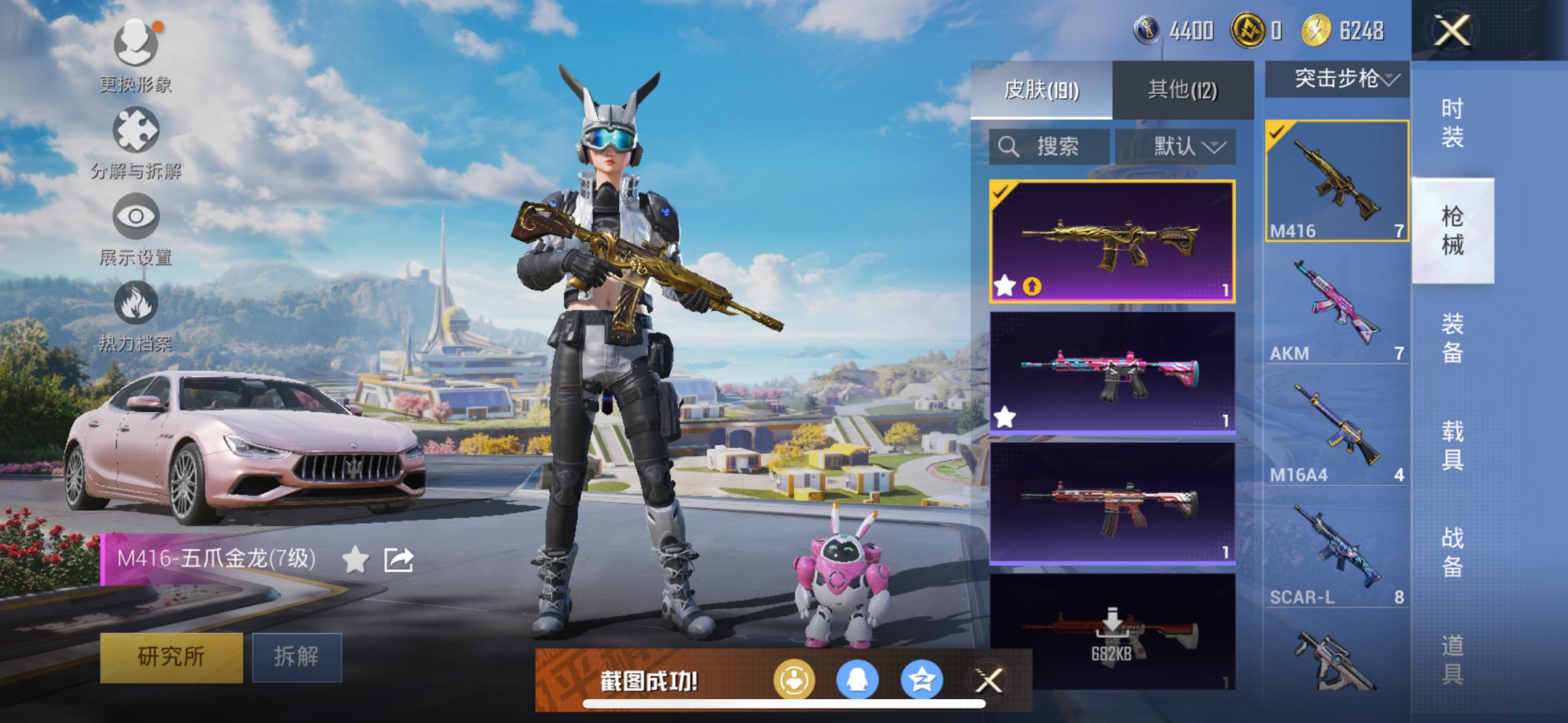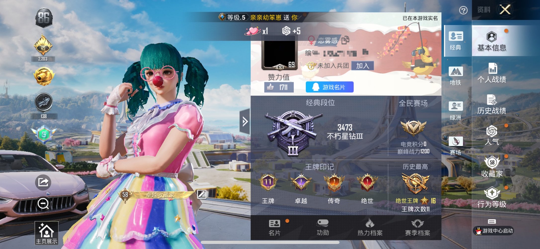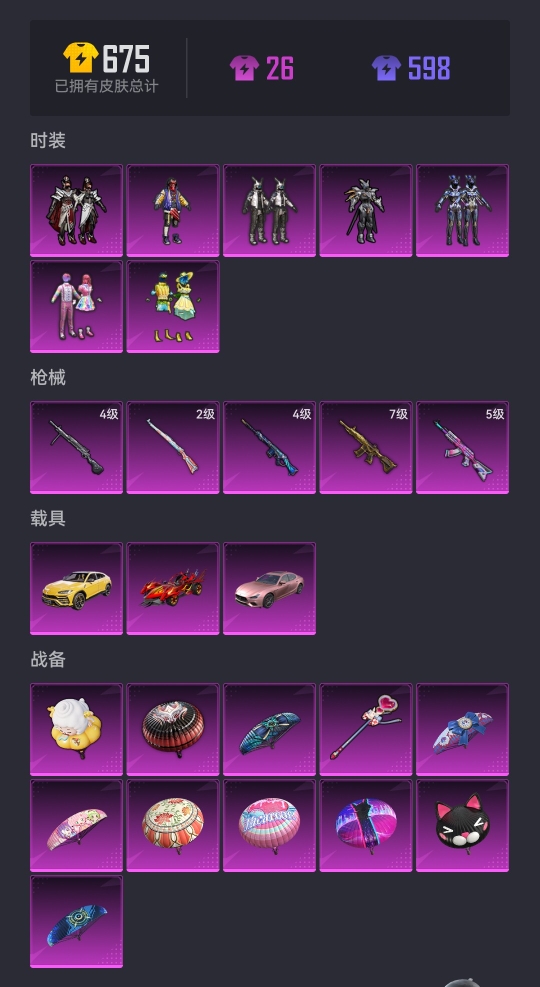 【满级五爪金龙3载具7粉装5特效呛 秒换绑不用等】 苹果q区-64059热力值-11印记-164套装-191呛皮 【3载具】 玛莎拉蒂粉色 兰博suv黄色 焰龙咆哮【2稀有】 奇异狩猎者 akm-百万伏特【7粉装】 天使彩虹糖 数码大师 香水柠檬 飓风飞鹰 沙场疾风 天禅智恒 苍蓝魅影【5特效呛】 m416-五爪金龙7级 akm-炫紫旋律5级 slr-暗夜玫瑰4级 kar98k-巳巳
