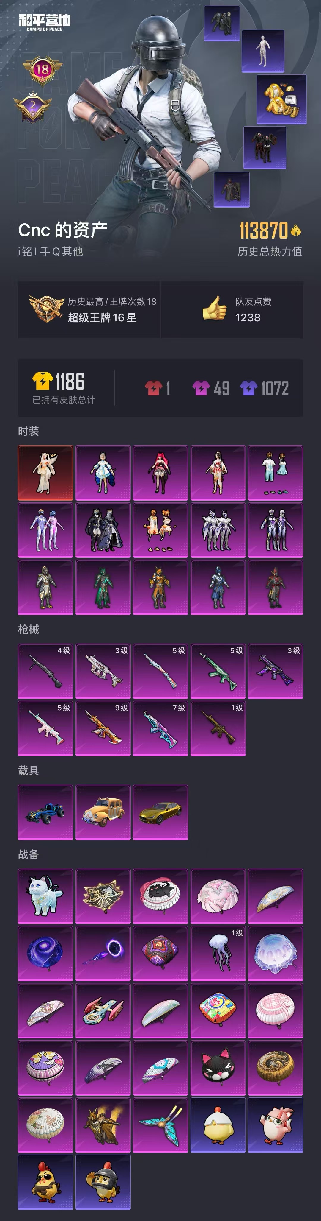 【和平精英】【lyhp13044】18印记 1红14粉9特3载具 2级露米娜 木乃伊 都市 金鞋 哥特 奇异 火箭 洛天依 9级m4至情 金马 14粉装,9特效呛,3载具,历史最高段位:超级王牌16星 王牌印记18次 热力值:113870,244套装,310呛械,428装备,168战备;套装:精灵之光-露米娜,套装-金曜白虎,套装-木曜青龙,套装-土曜战麒,套装-水曜玄武,套装-火曜朱雀,套装-梦幻火箭,套装-天启纪元,套装-星夜魔法师,角色-洛天依,套装-橘柚倾心,套装-紫电风暴,套装-仲夏莫吉托,角色-狂花道·不知火舞,角色-绯穹魔姬,套装-特训学院,套装-青年教官,套装-红色运动,套装-黄色运动,套装-蓝色运动,套装-黄色伏地魔,套装-白色伏地魔,套装-黑色伏地魔,套装-骑行爱好者,套装-冰川格斗者,套装-竞技名士,套装-深蓝色名流,套装-酒红色名流,套装-湖蓝色名流,套装-黄色名流,套装-猛禽,套装-长空猛禽,套装-漫步者,套装-霸义无双,套装-竞技勇士朋克,套装-黎明保卫者,套装-旭日情侣,套装-六六大吉,套装-冷焰舞者,套装-灼焰舞者,套装-都市猎人,套装-浪漫天命,套装-特战装甲,套装-贵族骑装,套装-青春校园,套装-灰色格斗者,套装-甜蜜告白,套装-迎春赐吉,套装-潮流先锋,套装-龙腾端午,套装-滨海假日,套装-沙漠毒蛇,套装-鹰眼刺客,套装-冰冻风暴,套装-幻影武者,套装-特战英豪,套装-街头潮人,套装-蓝彩潮人,套装-千禧之恋,套装-神秘领域,套装-怒火燎原,套装-魅力单车,套装-绮丽涂鸦,套装-竞技达人朋克,套装-夜莺强袭者,套装-都市漫游者,套装-野性战魂,套装-金羽特工,套装-超能勇士,套装-都市魅力,套装-热血青春,套装-派对舞王,套装-传奇侦探,套装-极地朋克,套装-幻世战舞者,套装-奇异狩猎者,套装-金耀舞者,套装-蓝调潮人,套装-暗影哥特,套装-弄潮海豚,套装-深海小丑鱼,套装-甜蜜熊情侣,套装-缤纷果语,套装-滨海厨神,套装-电音之王,套装-冰川特警,套装-格斗先锋,套装-太极红客,套装-旷野奇兵,套装-海上生明月,套装-麻辣教官,套装-沙暴袭击者,套装-小丑鱼,套装-冥河战士,套装-粉红小猪,套装-疯狂小兔子,套装-舞夜骑士,套装-深蓝冒险家,套装-迷域探索者,套装-金鼠迎春,套装-军械专家,套装-北国孤狼,套装-ss6特训,套装-拳皇97八神庵,套装-拳皇97草薙京,套装-拳皇97夏尔美,套装-炽焰拳师,套装-格斗专家,套装-圣殿骑士,套装-淡雅花蕊,套装-玲珑飞花,套装-跃动心情,套装-ss7特训,套装-核芯基因,套装-霓虹街区,套装-纯白誓言,套装-ss10特训,套装-潮萌小黄鸭,套装-ss8特训,套装-众神之王,套装-智慧之神,套装-白熊同盟,套装-萌黄之夏,套装-击剑大师,套装-摇滚狂鲨,套装-夏日音浪,套装-ss9特训,套装-风华少年志,套装-白月香洋装,套装-探宝勇士,套装-牛气满满,套装-ss11特训,套装-青春冒险家,套装-潮流游乐家,套装-白虎圣者,套装-原初圣火,套装-逆风勇士,套装-萌趣颜团子,套装-特种颜团子,套装-战术大师,套装-ss12特训,套装-牛气冲天,套装-ss18特训,套装-迅捷之星,套装-治愈之星,套装-科技之星,套装-飞行日记,套装-ss13特训,套装-热情海星,套装-纯真浪花,套装-ss14特训,套装-吉莉礼服,套装-ss15特训,套装-ss16特训,套装-暴风机械师,套装-时空追击者,套装-暗夜魅影,套装-ss17特训,套装-瑞龙福将,套装-团圆交子,套装-福星高照,套装-虎虎生威吉莉,角色-军刀雅典娜,套装-异彩先驱,套装-霓虹极客,套装-空投萌叽,套装-ss19特训,套装-飞驰魅影,套装-音速流光,套装-炫蓝之夏,套装-ss20特训,套装-浑天鲲鹏,套装-猎梦纪元,套装-甜心亚梦,套装-虚音幻奏,套装-ss21特训,套装-萌趣咩咩,套装-娇憨猪猪,套装-玉兔迎春,套装-ss22特训,套装-和煦暖阳,套装-田园牧歌,套装-轻风白浪,套装-光之冒险,套装-ss23特训,套装-摩登艾咪,套装-神气柴柴,套装-懵萌河马,套装-妙红点点,套装-幻彩翩翩,套装-柠萌假日,套装-青玉碎影,套装-ss24特训,套装-日照花林,套装-ss25特训,套装-惊鸿侠骨,套装-锦衣飞扬,套装-香桃花海,套装-龙的传人,套装-ss26特训,套装-快闪甜心,套装-春光漫游,套装-空岛之星,套装-明鸳圣池,套装-贝斯之夜,套装-焰鹰斗篷,套装-幻羽潜行,套装-ss27特训,套装-老实芭蕉,套装-ss28特训,套装-铁血战翼,角色-情公主,角色-mark.06,套装-街头风暴,套装-海盐绵绵冰,套装-蝶变,套装-ss29特训,套装-雏菊兔兔,套装-萝兰蝴蝶,角色-摩登魅猫,套装-星途旅人,套装-ss30特训,套装-青团波波,套装-糖糖葫芦,套装-ss31特训,套装-鱼渊荷华,套装-燕燕于飞,角色-海琴烟,套装-ss33特训,套装-云朵鹅,套装-ss32特训,套装-彩虹兔,套装-雪绒豹,角色-灵公主,套装-云鹰凌岚,套装-蜜露汐语,套装-蓝海鲸歌,角色-玫纹锢梦,套装-ss34特训,套装-擎苍青焰,套装-极光猎影,套装-朱霞炽焰,套装-凌霄紫焰,套装-ss35特训;呛皮:m16a4-蓝色火焰,m16a4-红色方程式,m16a4-冥河战士,m16a4-夜灯,m16a4-甜心亚梦,m16a4-幻世战舞者,m16a4-千金淑猫,m16a4-乌木金纹,1级m416-五爪金龙,9级m416-至情至圣,m416-夜灯,m416-神秘黑猫,m416-糯团青竹,m416-乌木金纹,groza-影袭,groza-银河战甲,groza-春暖花开,groza-治愈之星,groza-彩虹符号,groza-蓝莓炮弹,groza-异彩先驱,groza-恐龙拽拽,groza-田园牧歌,groza-懵萌河马,groza-海盐豹豹,groza-荧海星豚,groza-乌木金纹,g36c-不夜海上花,g36c-时空追击者,g36c-懵萌河马,g36c-乌木金纹,5级scar-l-锦绣绵绵,scar-l-红色方程式,scar-l-黄金龙骨,scar-l-未来战士,scar-l-炫彩节奏,scar-l-玉兔迎春,scar-l-星途旅人,scar-l-海盐豹豹,scar-l-冷漠罗丽,scar-