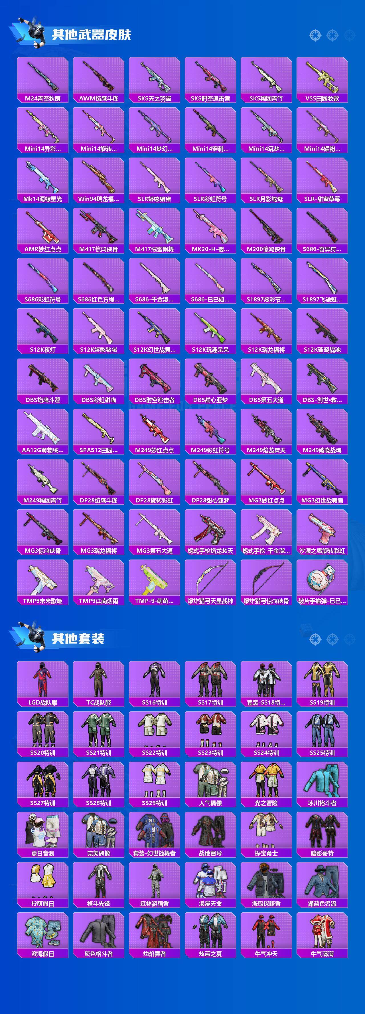 [12484436]【商品标题】:安卓 手q-14粉装-9特效呛-3载具-5粉色飞行器-91453热力值-12王牌印记-188套装-271呛皮 【热门品类】:粉装-音爆索尼克,套装-浪漫天命,套装-深海小丑鱼,套装-小丑鱼,角色-军刀雅典娜,套装-龟仙人,套装-暗影哥特,套装-粉红小猪,角色-8号机,角色-mark.06 【粉色载具】:仰望u7(阿盖尔紫),杜卡迪 panigale v4(杜卡迪红),星梦玉骢 【粉色套装】:粉装-宝贝奶油派,粉装-银龙傲海,粉装-碧影闪光,粉装-岚岚物语,粉装-赤焰黑爵,角色-复仇流浪者,粉装-音爆索尼克,角色-烟云彩露,角色-光极星,角色-初号机 觉醒ver.,角色-狂花道·不知火舞,粉装-未来领航者,粉装-星穹咏叹调 【粉色呛皮等级】:m416-电玩时刻五级,groza-精灵之光三级,m762-青锋波束五级,ump45-量子极限五级,vect-环太平洋六级,p90-能量风暴七级,kar98k-巳巳如意五级,slr-暗夜玫瑰七级,莫辛纳甘-未来领航者四级 【粉色呛皮】:m416-电玩时刻,groza-精灵之光,m762-青锋波束,ump45-量子极限,vect-环太平洋,p90-能量风暴,kar98k-巳巳如意,slr-暗夜玫瑰,莫辛纳甘-未来领航者 【粉色飞行器】:天之羽翼飞行器,翩跹演武飞行器,沙丘之主天马,龙翔九天飞行器,曦光华影飞行器 【粉色降落伞】:至尊龙雀降落伞,梦幻火箭降落伞,烈焰拳霸降落伞,古战神甲降落伞,焰龙焚天降落伞,暗夜玫瑰降落伞,林间仙鹿降落伞,碧影闪光降落伞,橘柚倾心降落伞,筑梦精灵降落伞,环太平洋降落伞,彩虹甜喵降落伞,旋转彩虹降落伞,音爆索尼克降落伞,第五大道降落伞,龙珠超降落伞,天星战神降落伞,闲梦青缨降落伞,炫光之旅降落伞,圣堂之誓降落伞,精灵梦叶罗丽降落伞,墨龙九天降落伞,创世·救赎降落伞,星梦奇缘降落伞,初号机 觉醒ver.降落伞,英伦信使降落伞,未来领航者降落伞,精灵之光降落伞,千金淑猫降落伞 【稀有套装】:套装-龟仙人,套装-绒宝小鹅,套装-巳巳如意,套装-雏菊兔兔,套装-萝兰蝴蝶,套装-小熊娃娃,套装-先驱飞行员,套装-火种守卫者,套装-糖糖葫芦,套装-青团波波,套装-棉花软糖,角色-都市丽猫,角色-摩登魅猫,角色-临安公主,套装-燕燕于飞,套装-鱼渊荷华,套装