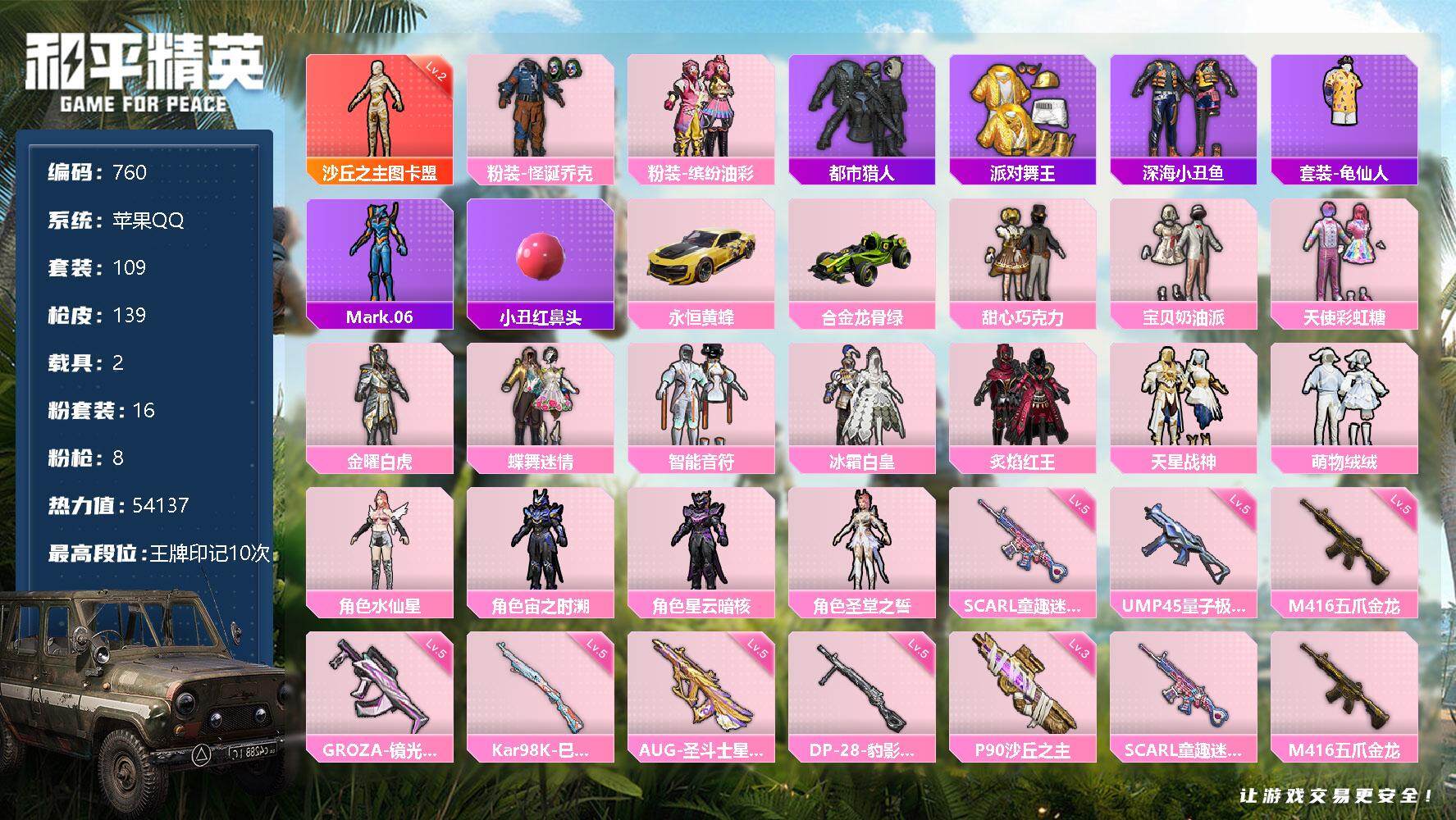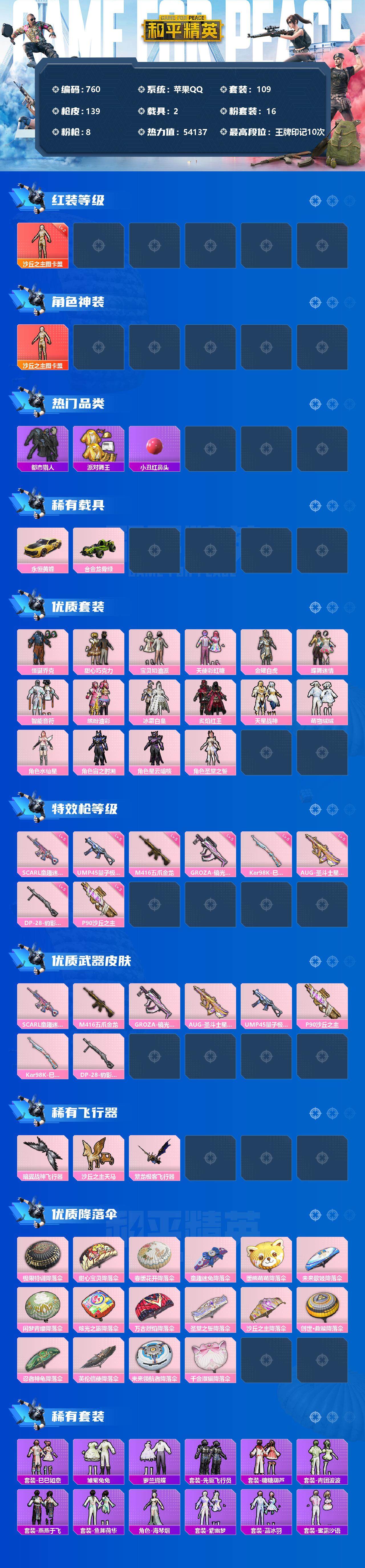 [12484551]【商品标题】:苹果 手q-1神装-16粉装-8特效呛-2载具-3粉色飞行器-54137热力值-10王牌印记-109套装-139呛皮 【红色神装等级】:沙丘之主-图卡盟二级 【红色角色神装】:沙丘之主-图卡盟 【热门品类】:粉装-怪诞乔克,粉装-缤纷油彩,套装-都市猎人,套装-派对舞王,套装-深海小丑鱼,套装-龟仙人,角色-mark.06,小丑红鼻头 【粉色载具】:永恒黄蜂,合金龙骨(绿) 【粉色套装】:粉装-怪诞乔克,粉装-甜心巧克力,粉装-宝贝奶油派,粉装-天使彩虹糖,粉装-金曜白虎,粉装-蝶舞迷情,粉装-智能音符,粉装-缤纷油彩,粉装-冰霜白皇,粉装-炙焰红王,粉装-天星战神,粉装-萌物绒绒,角色-水仙星,角色-宙之时溯,角色-星云暗核,角色-圣堂之誓 【粉色呛皮等级】:scar-l-童趣迷兔五级,m416-五爪金龙五级,groza-镜光银凌五级,aug-圣斗士星矢五级,ump45-量子极限五级,p90-沙丘之主三级,kar98k-巳巳如意五级,dp-28-豹影疾电五级 【粉色呛皮】:scar-l-童趣迷兔,m416-五爪金龙,groza-镜光银凌,aug-圣斗士星矢,ump45-量子极限,p90-沙丘之主,kar98k-巳巳如意,dp-28-豹影疾电 【粉色飞行器】:暗翼战神飞行器,沙丘之主天马,繁龙极客飞行器 【粉色降落伞】:极限特训降落伞,甜心宝贝降落伞,春暖花开降落伞,童趣迷兔降落伞,暖熊萌萌降落伞,未来歌姬降落伞,闲梦青缨降落伞,炫光之旅降落伞,万古烈焰降落伞,圣堂之誓降落伞,沙丘之主降落伞,创世·救赎降落伞,忍者神龟降落伞,英伦信使降落伞,未来领航者降落伞,千金淑猫降落伞 【稀有套装】:套装-龟仙人,套装-巳巳如意,套装-雏菊兔兔,套装-萝兰蝴蝶,套装-先驱飞行员,套装-糖糖葫芦,套装-青团波波,套装-燕燕于飞,套装-鱼渊荷华,角色-海琴烟,套装-紫幽梦,套装-蓝冰羽,套装-蜜露汐语 【稀有呛皮】:akm-影袭,akm-缤纷海域,akm-龙的传人,m416-糯团青竹,m416-红色方程式,aug-幻影战神,aug-甜蜜菠萝,aug-耀粉歌者,q-未来歌姬,m762-暖熊萌萌,m762-甜心宝贝,ac-val-快闪甜心,蜜獾-天降萌叽,uzi-啾咪啾咪,uzi-天降萌叽,uzi-影袭,ump45-炫光之旅,ve