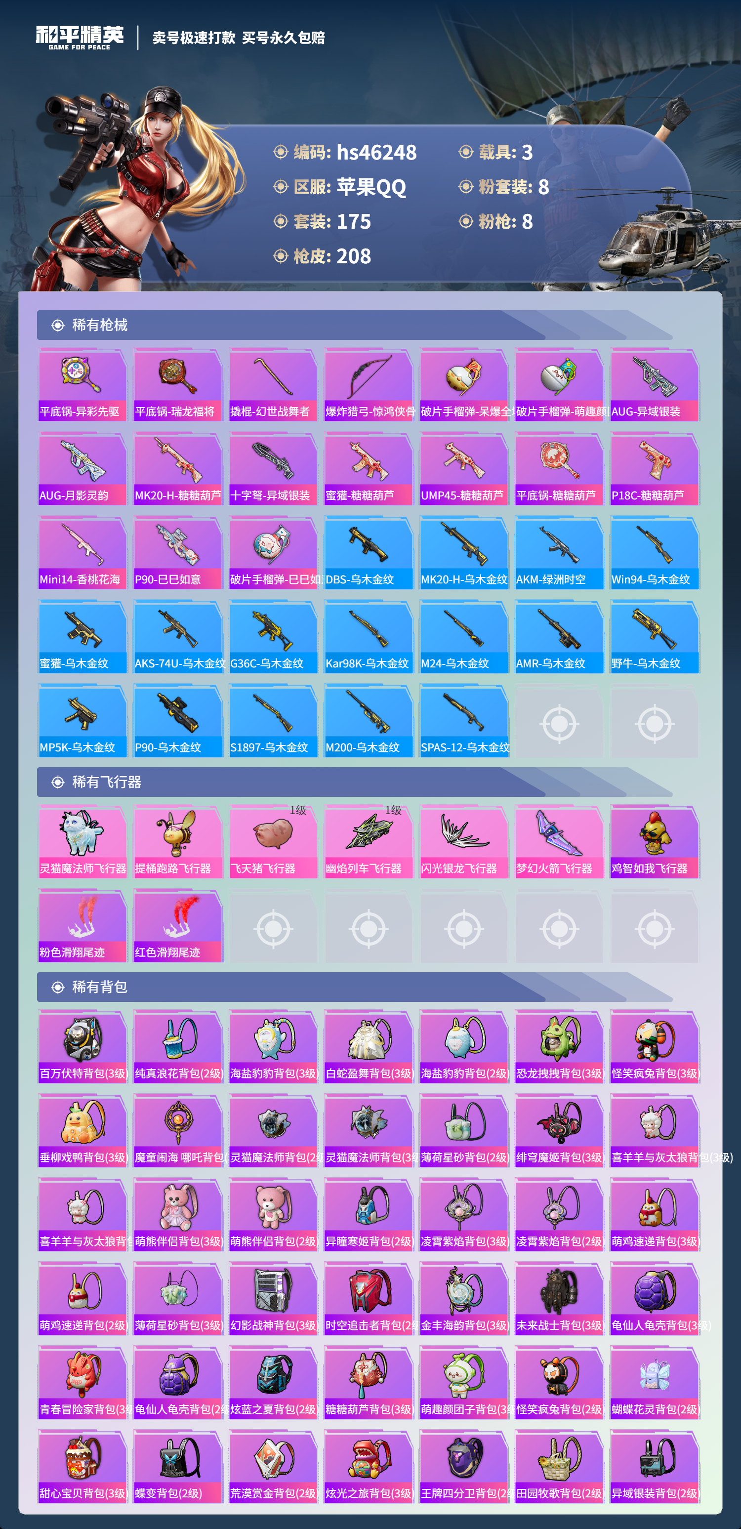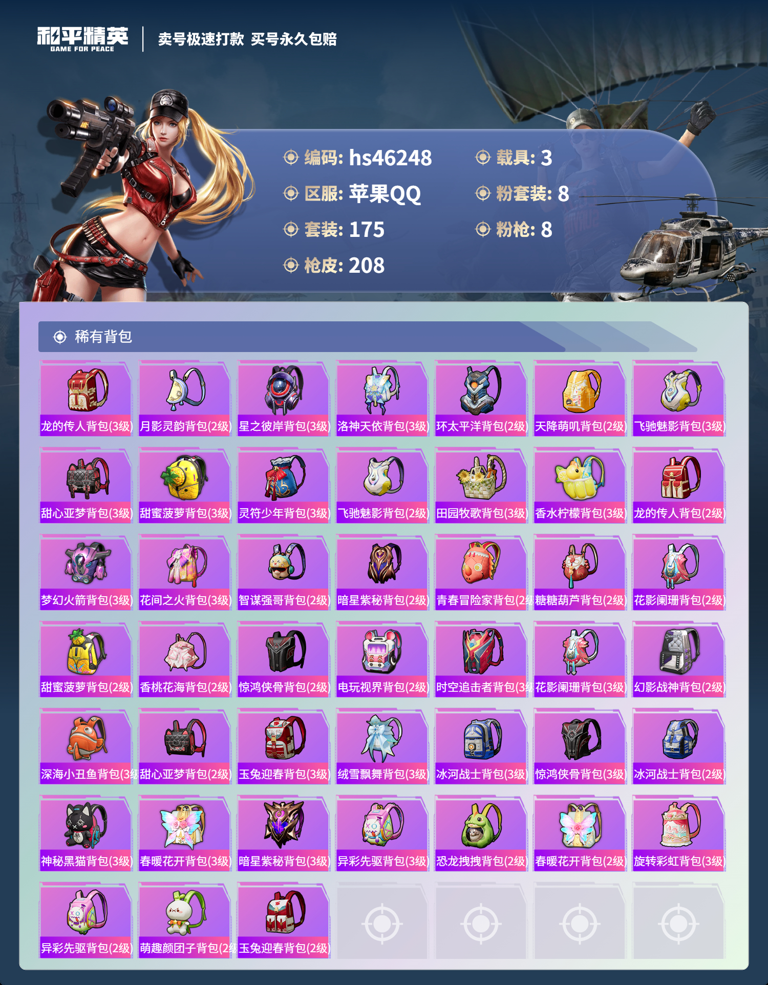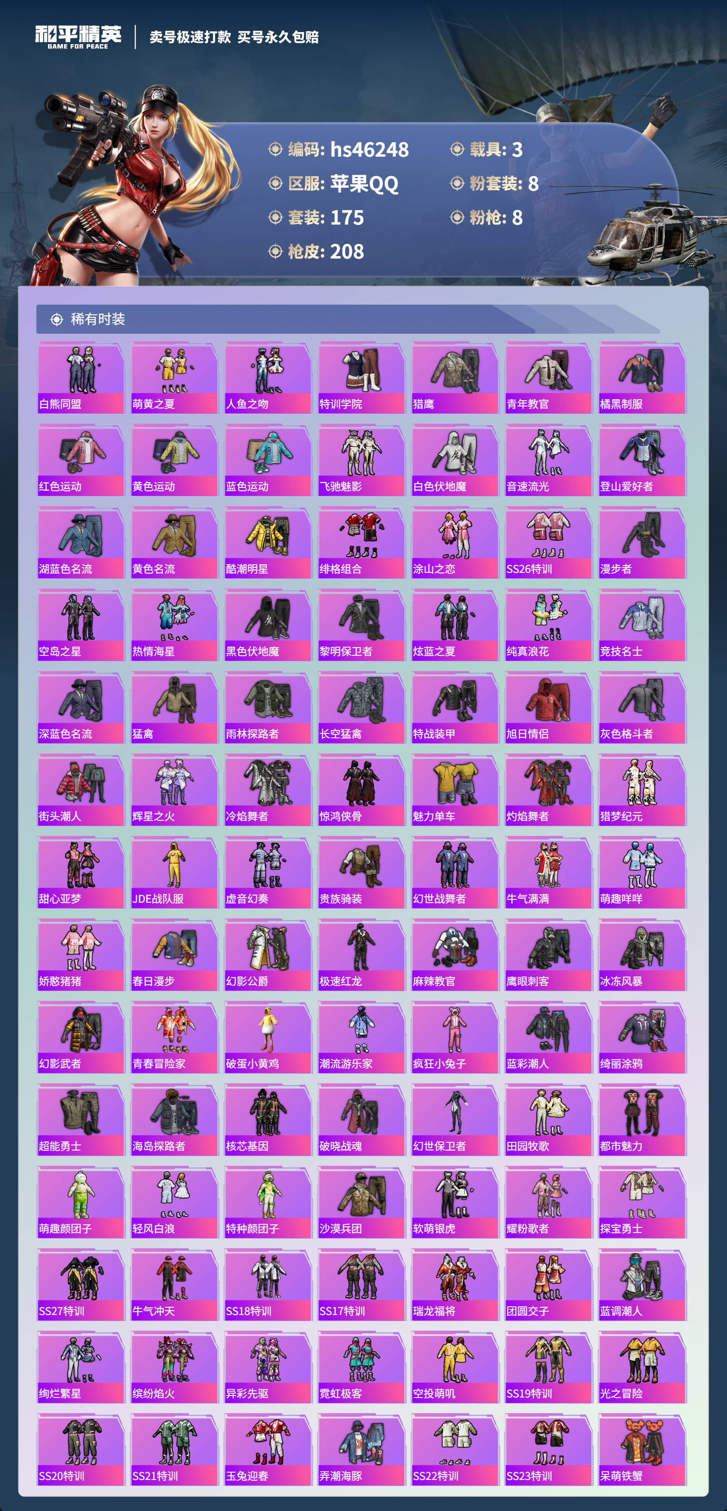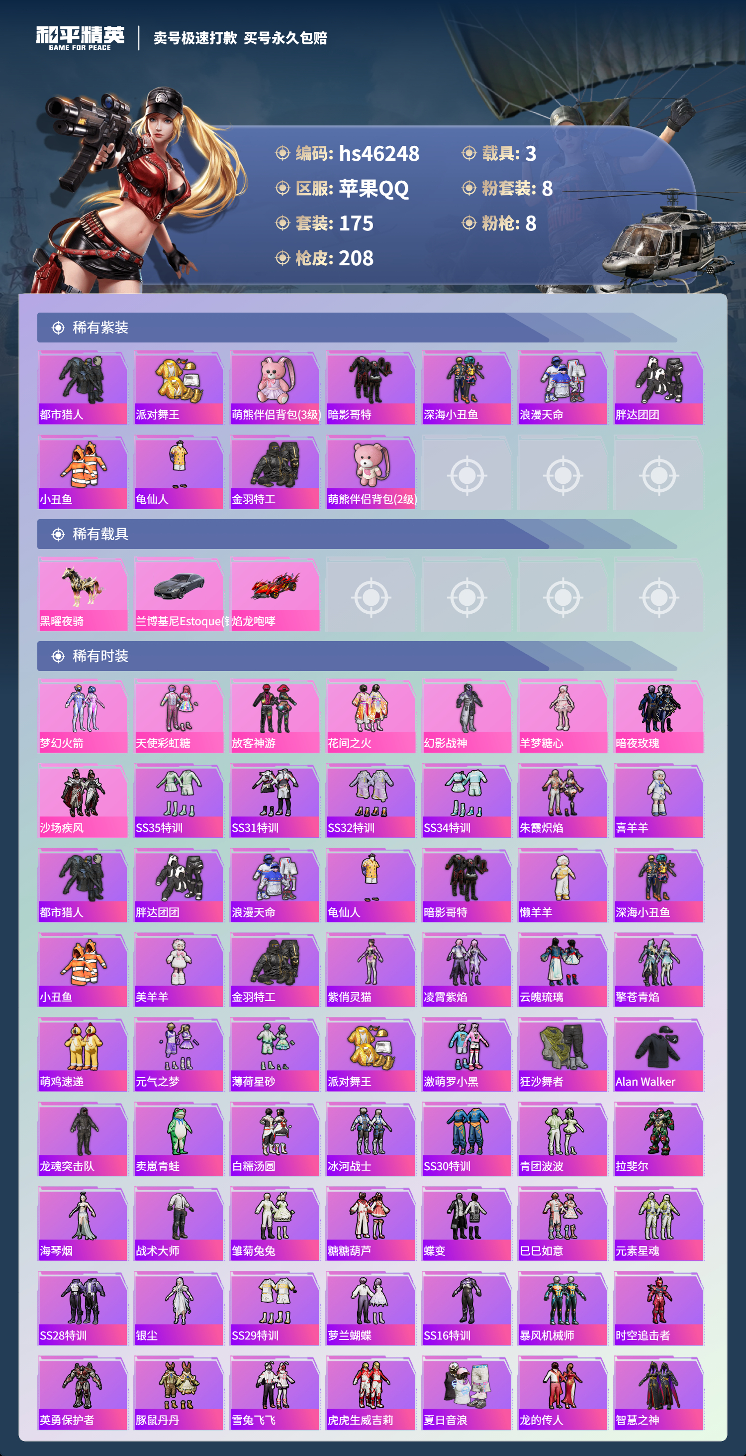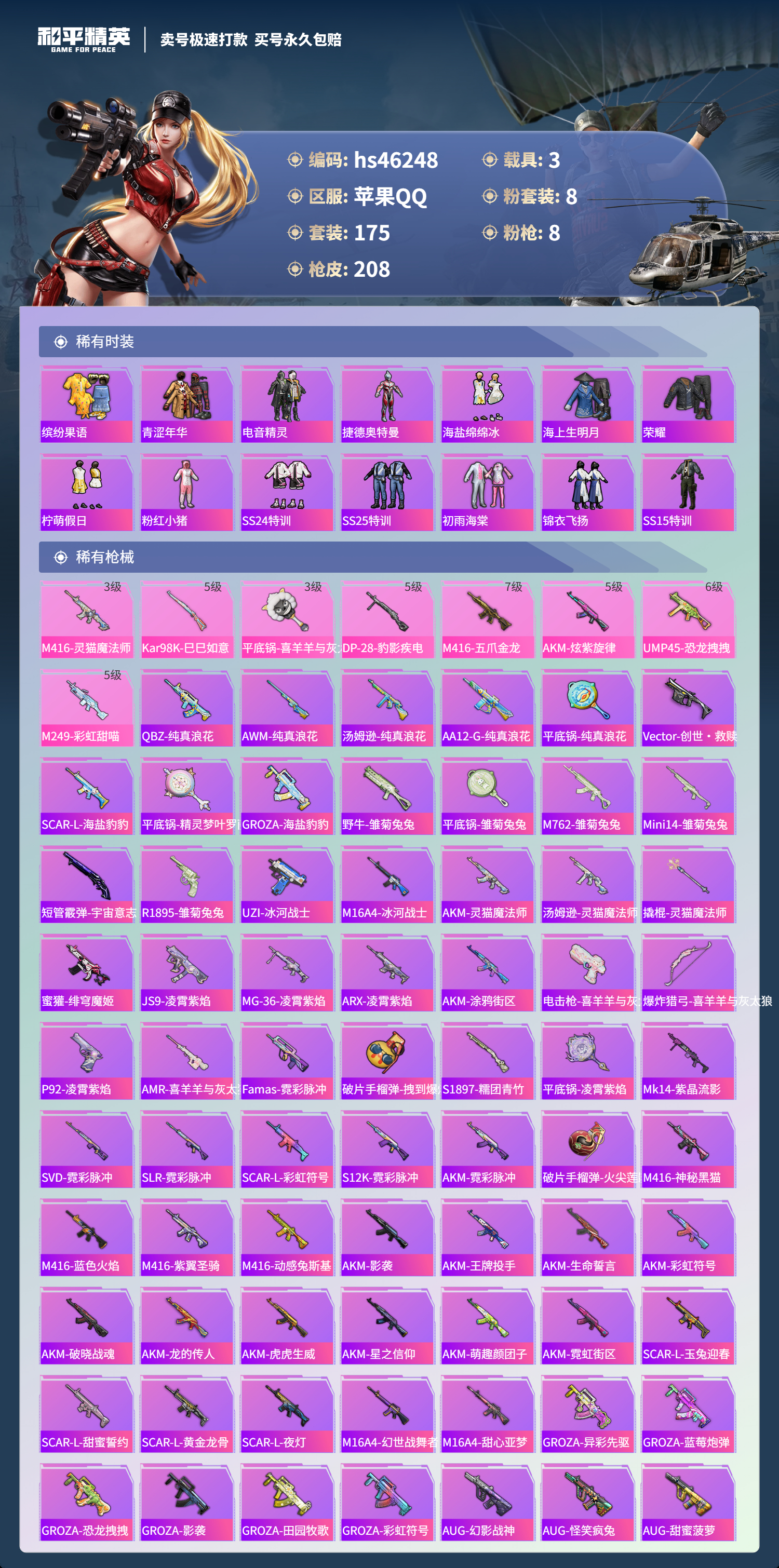 苹果手q-18王牌印记-有战神框-8粉装-8特效呛-3载具-75190热力值-175套装-208呛皮-1卓越印记-0传奇印记 【8粉装】梦幻火箭天使彩虹糖放客神游花间之火幻影