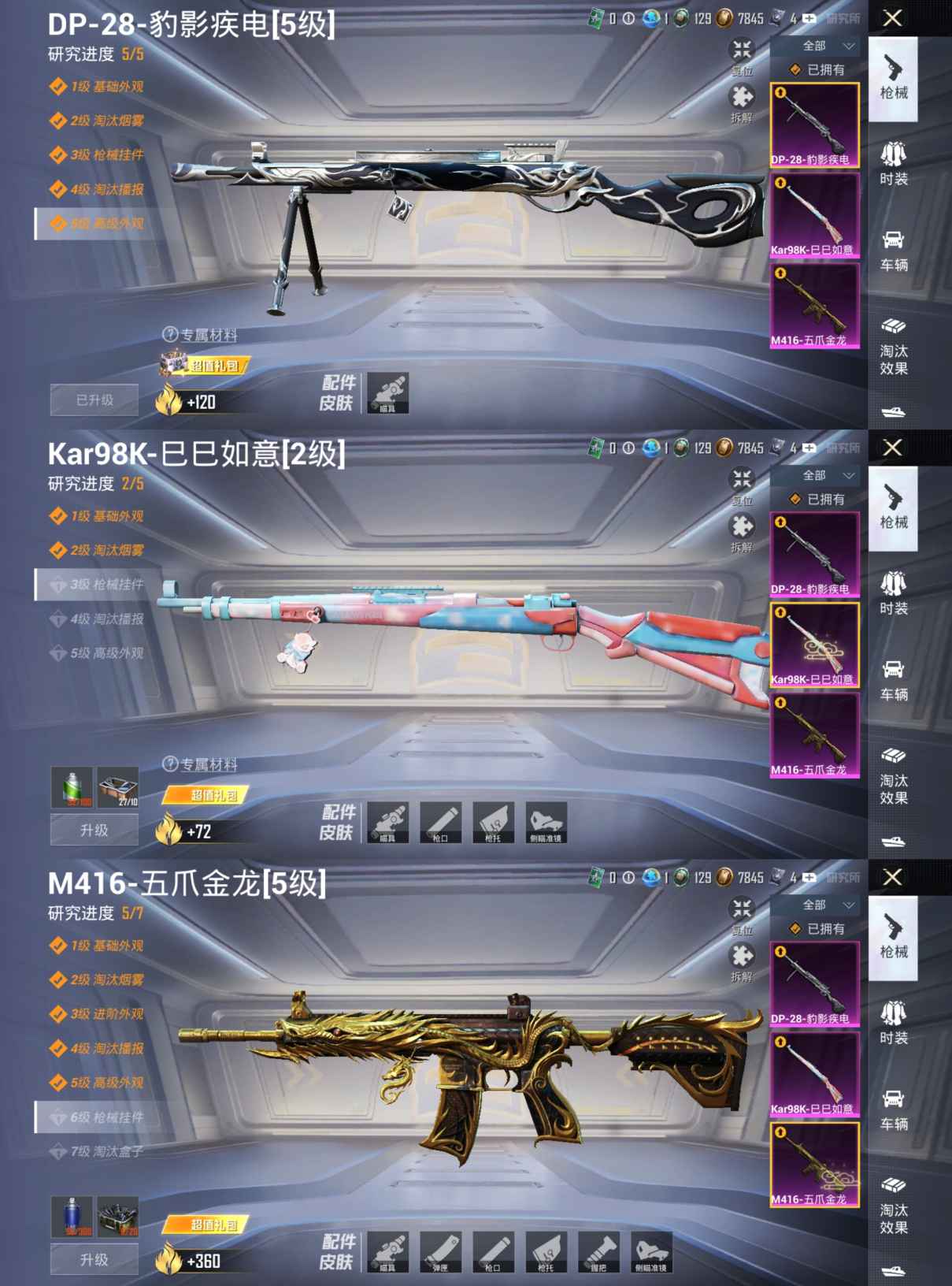 【3特效呛 五爪金龙5级】 安卓q-1稀有3特效呛3热门54套装60呛皮 19782热力值 2印记 历史超级王牌1星 【1稀有】 akm-缤纷海域 【3特效呛】 m416-五爪金龙 5级 kar98k-巳巳如意 2级 dp-28-豹影疾电 5级