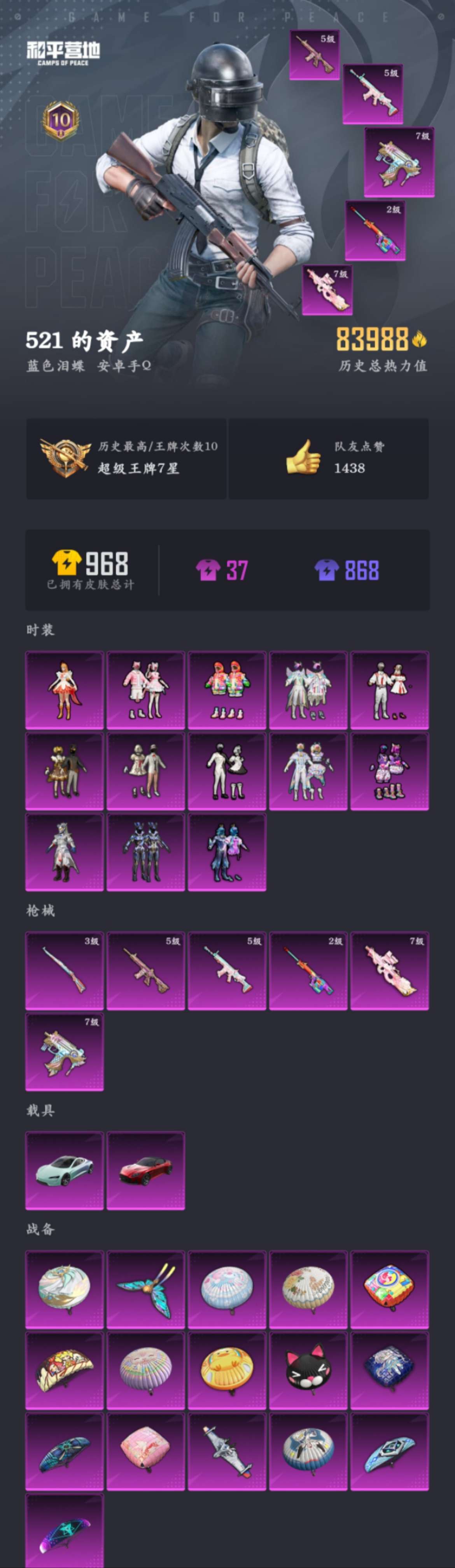 秒换绑不用等【公主号-甜心巧克力-13粉6特效呛2车-有地铁】安卓手q-10王牌印记-13粉装-6特效呛-2载具-83988热力值-226套装-251呛皮