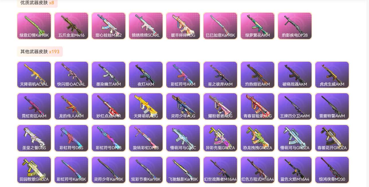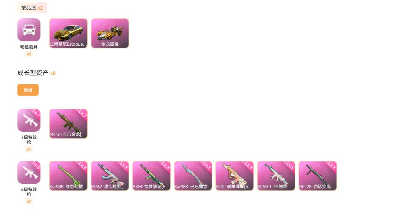 007f:x248苹果qq可二次热力值:78368,11粉装,8粉呛,2金皮载具,18粉色战备 红螳螂/ 11粉装-宝贝奶油派,粉装-天使彩虹糖,粉装-青葱仙萝,粉装-2号机款机体服,粉装-流星咚咚,粉装-精灵娃娃,粉装-酣梦娃娃,粉装-绚金瑰梦,粉装-暖熊萌萌,粉装-暗夜鎏金,粉装-金丰海韵;【粉色呛械】:akm-绿萝繁花[5级],m762-甜心娃娃[5级],scar-l-锦绣绵绵[5级],m416-五爪金龙[7级],aug-暖羊咩咩[5级],kar98k-巳巳如意[5级],kar98k-绿意幻情[5级],dp-28-豹影疾电[5级];【粉色载具】:金龙耀世,兰博基尼estoque(炫光金)僚机】:僚机-萌兔起飞;超多稀有紫装详情看图
