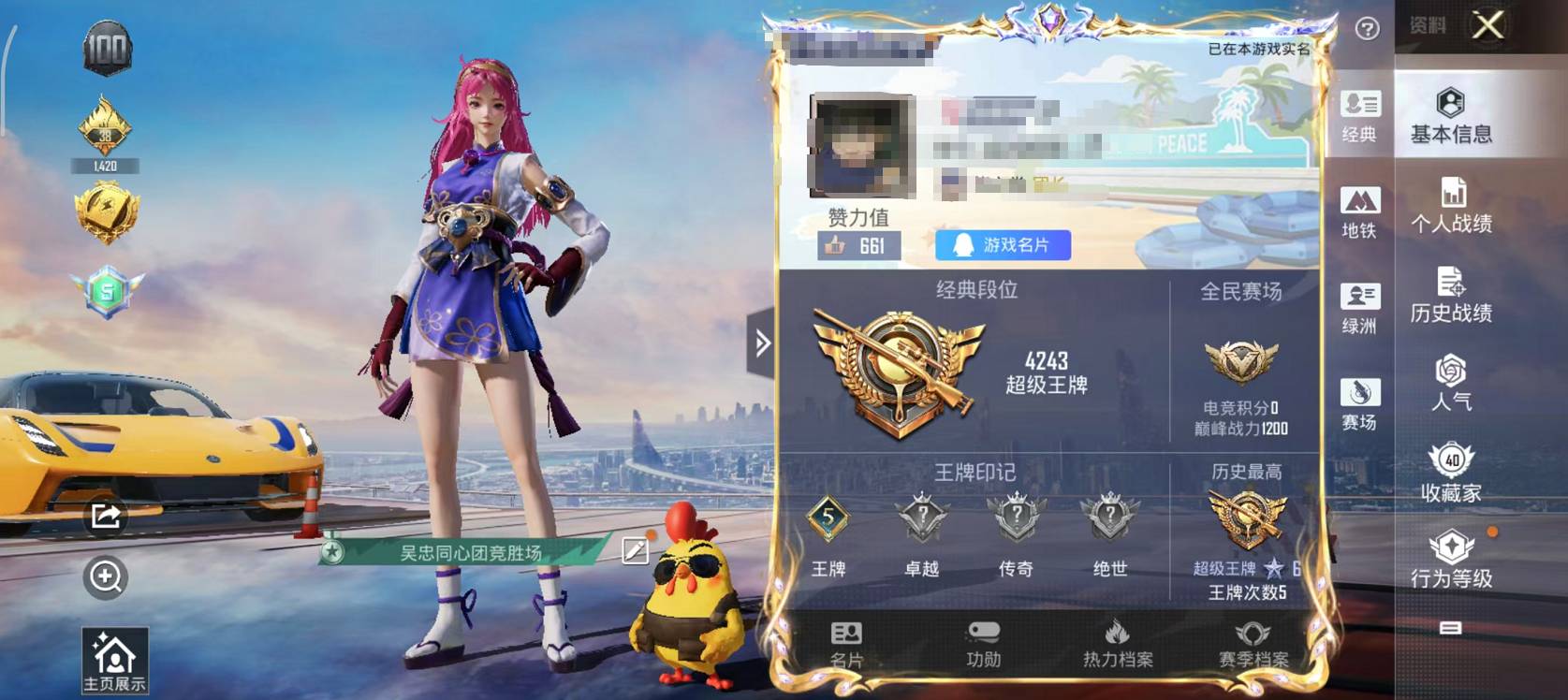 003蕾:081l;安卓qq;可以二次;【赠送王者v6】2粉呛-1载具-0珍稀飞行器-85套装-110呛皮】当前段位:超级王牌 历史最高段位:超级王牌6星 热力值:32286 王牌印记:5 游戏等级:64;