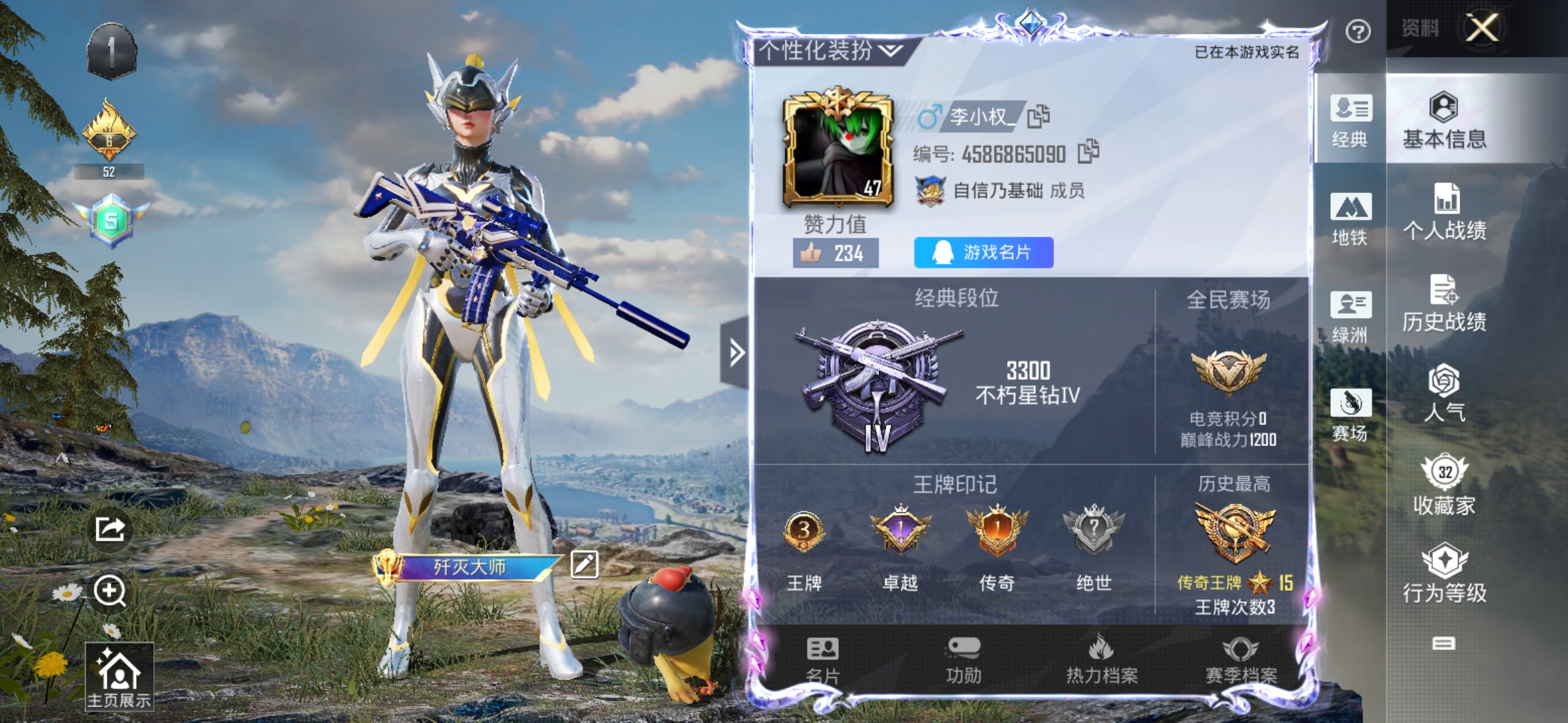 [13416259]和平 可二次 4粉2呛 身法号素材号 绚金战神 天鹅座冰河 智耀战神 恐龙拽拽 6级scr青春物语 深海小丑鱼 申公豹 乐音 游乐 云朵鹅 满级dp28豹影疾电 平底锅凌霄紫焰淘汰盒子 pkm紫幽梦淘汰盒子 实名: 可修改 时装数: 147 呛械数: 51 战备数: 42 热门装扮: 深海小丑鱼绚金战神恐龙拽拽智耀战神天鹅座 冰河 稀有呛皮: scar-l青春物语dp-28-豹影疾电
