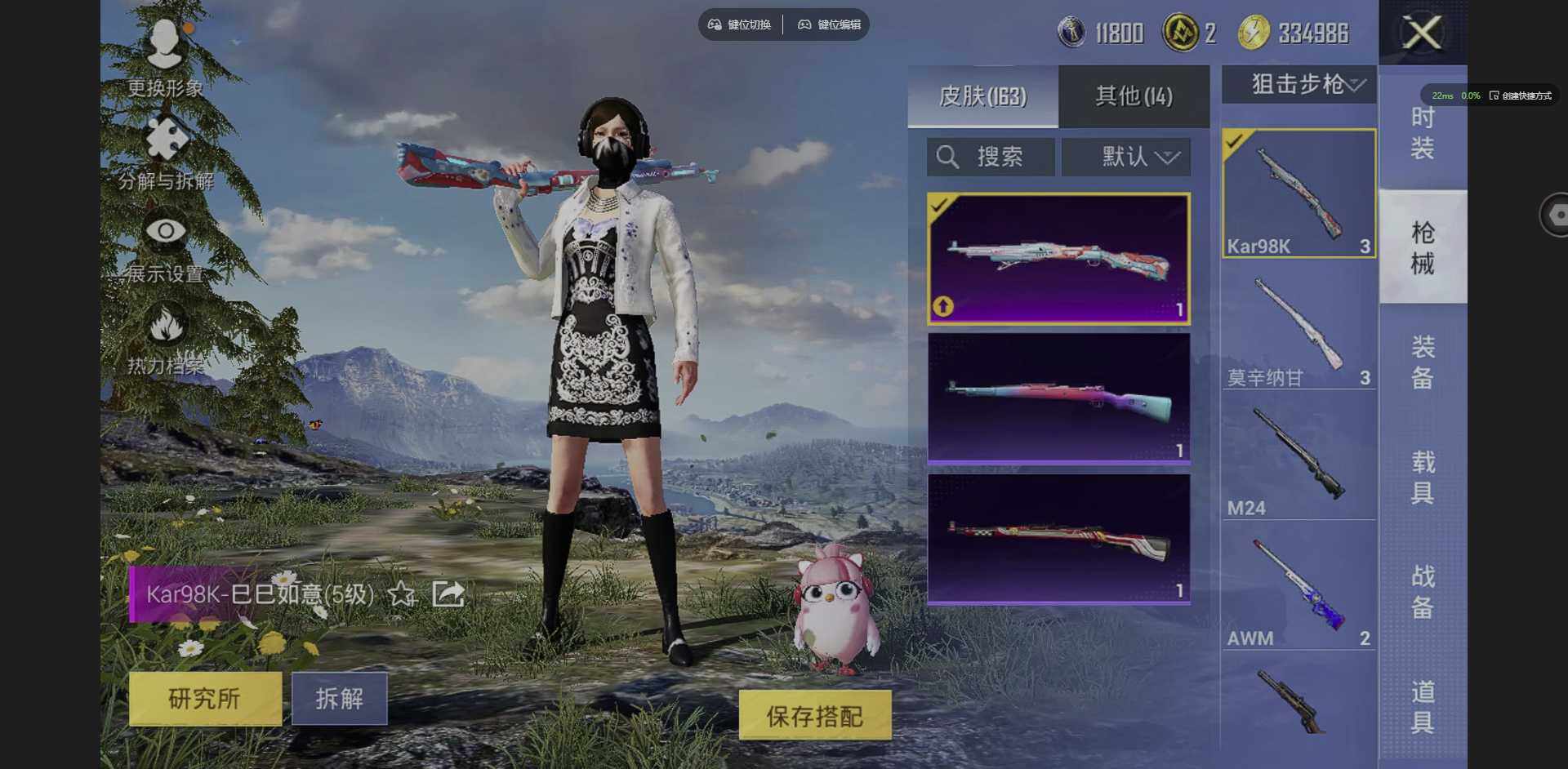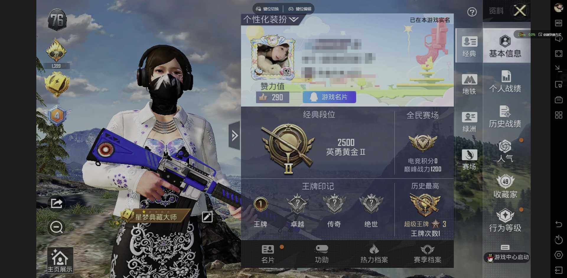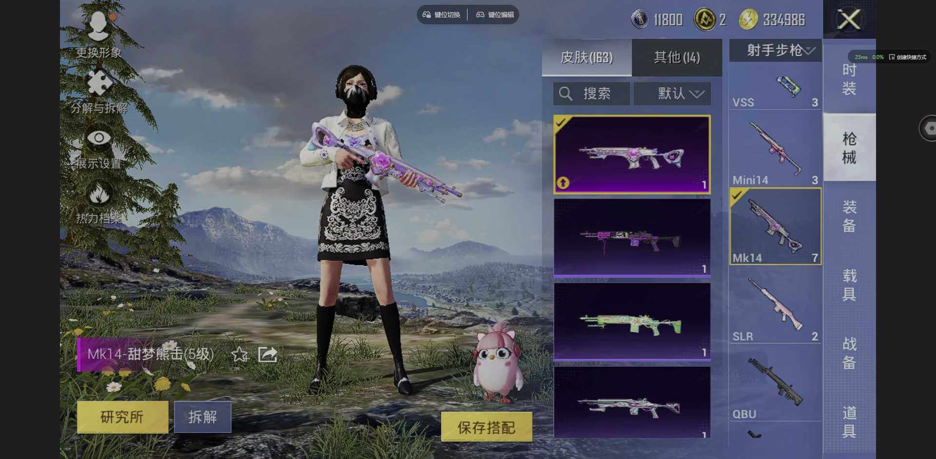 [13443160]实名: 可修改 时装数: 84 呛械数: 160 战备数: 94 热门装扮: 闲梦青缨 稀有呛皮: 七级m417-第五大道 ,五级kar98k-巳巳如意,五级mk14-甜梦熊击,五级dp-28-豹影疾电