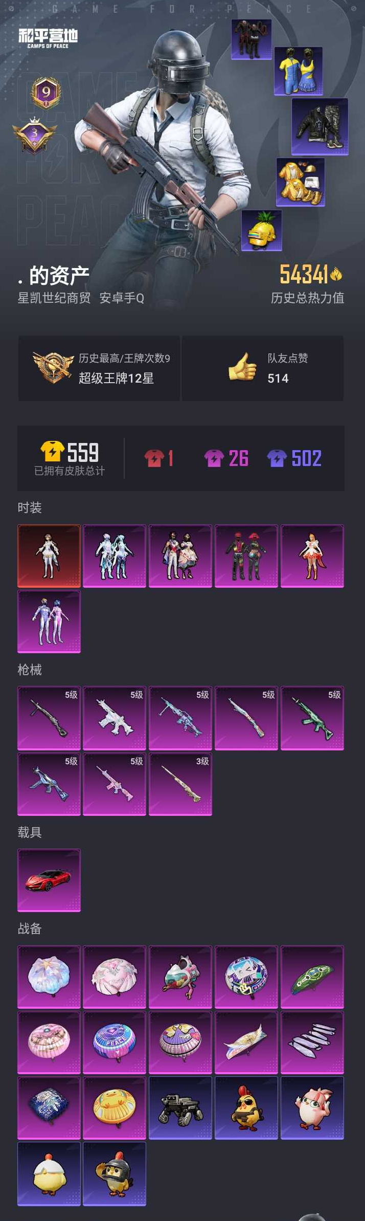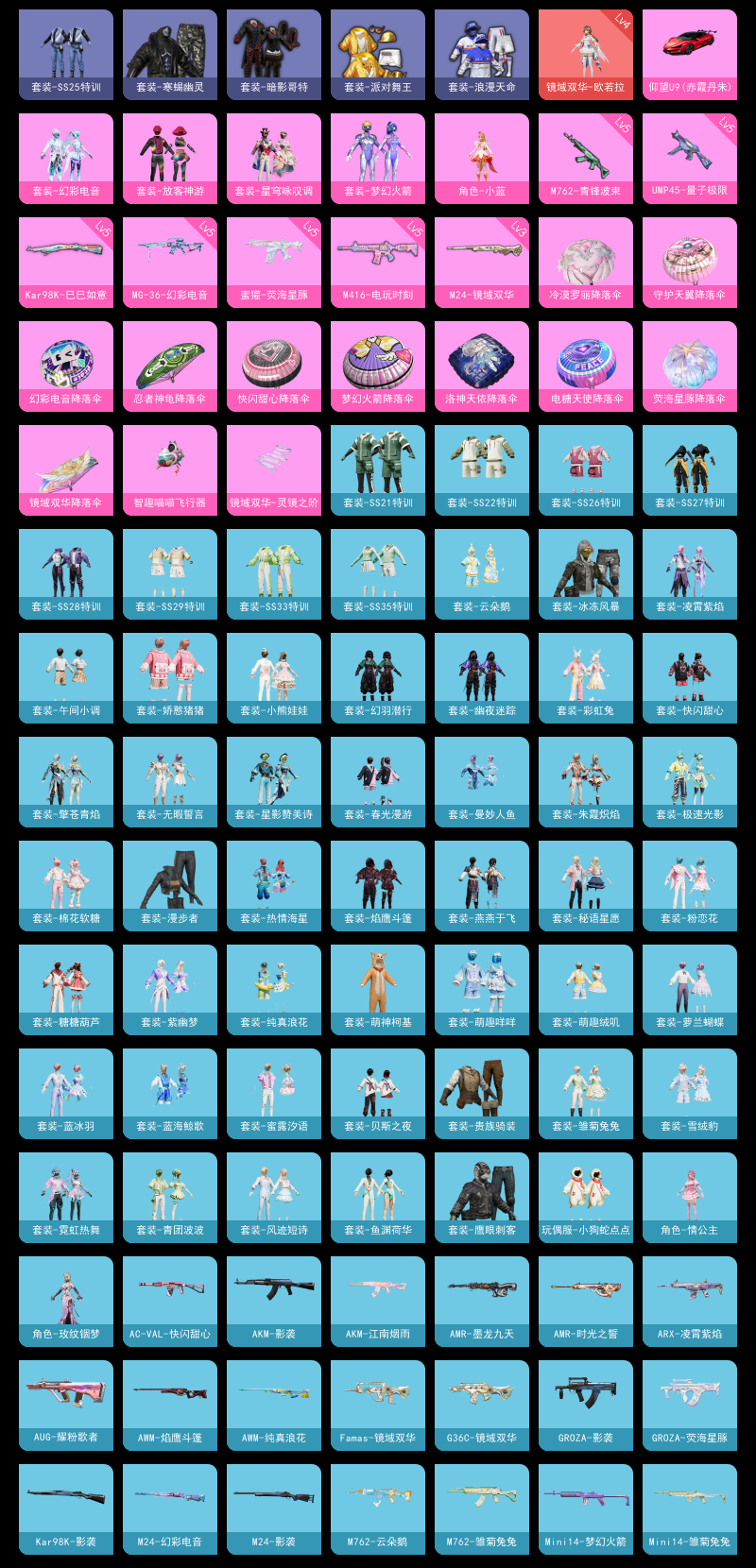 【和平精英】【lyhp15421】1红装5粉装8特效呛1载具 4级欧若拉 放客神游 梦幻火箭 幻彩电音 寒蝎 派对舞王 暗影哥特 菠萝头 5级蜜獾荧海星豚 5级mg-36幻彩电音 仰望u9(附带300扭蛋碎片) 5粉装,8特效呛,1载具,历史最高段位:超级王牌12星 王牌印记9次 热力值:54341,105套装,159呛械,188装备,87战备;套装:镜域双华-欧若拉,套装-梦幻火箭,套装-放客神游,角色-小蓝,套装-幻彩电音,套装-星穹咏叹调,套装-橘黑制服,套装-竞技名士,套装-湖蓝色名流,套装-黄色名流,套装-猛禽,套装-长空猛禽,套装-漫步者,套装-旭日情侣,套装-寒蝎幽灵,套装-浪漫天命,套装-贵族骑装,套装-青春校园,套装-甜蜜告白,套装-鹰眼刺客,套装-冰冻风暴,套装-蓝彩潮人,套装-都市漫游者,套装-森林游猎者,套装-派对舞王,套装-幻世战舞者,套装-暗影哥特,套装-夏日倾情,套装-缤纷果语,套装-滨海厨神,套装-龙魂突击队,套装-萌神柯基,套装-战术大师,套装-牛气冲天,套装-曼妙人鱼,套装-热情海星,套装-纯真浪花,套装-ss21特训,套装-萌趣咩咩,套装-娇憨猪猪,套装-ss22特训,套装-龟仙人,套装-ss25特训,套装-香桃花海,套装-冰河战士,套装-ss26特训,套装-快闪甜心,套装-春光漫游,套装-空岛之星,套装-无暇誓言,套装-萌趣绒叽,套装-贝斯之夜,套装-焰鹰斗篷,套装-幽夜迷踪,套装-幻羽潜行,套装-ss27特训,套装-恋语绒绒,套装-ss28特训,玩偶服-卖崽青蛙,角色-情公主,套装-街头风暴,套装-海盐绵绵冰,套装-小熊娃娃,套装-ss29特训,套装-雏菊兔兔,套装-萝兰蝴蝶,套装-异域银装,套装-星途旅人,套装-ss30特训,套装-青团波波,套装-棉花软糖,套装-糖糖葫芦,套装-小鸟芋圆,套装-ss31特训,套装-鱼渊荷华,套装-燕燕于飞,套装-智谋强哥,套装-紫幽梦,套装-粉恋花,套装-ss33特训,套装-云朵鹅,玩偶服-小狗蛇点点,套装-巳巳如意,套装-ss32特训,套装-彩虹兔,套装-蓝冰羽,套装-顶瓜瓜,套装-雪绒豹,套装-大橘大利,套装-极速光影,套装-霓虹热舞,套装-蜜露汐语,套装-星影赞美诗,套装-蓝海鲸歌,套装-元气之梦,角色-玫纹锢梦,套装-ss34特训,套装-擎苍青焰,套装-朱霞炽焰,套装-凌霄紫焰,套装-ss35特训,套装-午间小调,套装-秘语星愿,套装-风迹短诗,套装-萌鸡速递;呛皮:groza-影袭,groza-海盐豹豹,groza-荧海星豚,g36c-镜域双华,q-纯真浪花,ac-val-乌木金纹,ac-val-快闪甜心,scar-l-玉兔迎春,scar-l-星途旅人,scar-l-海盐豹豹,scar-l-小狗蛇点点,5级m762-青锋波束,m762-天降萌叽,m762-雏菊兔兔,m762-云朵鹅,5级蜜獾-荧海星豚,蜜獾-娇憨猪猪,蜜獾-天降萌叽,蜜獾-精灵梦叶罗丽,蜜獾-糖糖葫芦,蜜獾-风迹短诗,蜜獾-乌木金纹,5级m416-电玩时刻,m416-红色方程式,m416-糯团青竹,arx-凌霄紫焰,aug-甜蜜菠萝,aug-耀粉歌者,aug-异域银装,akm-影袭,akm-破晓战魂,akm-涂鸦街区,akm-龙的传人,akm-江南烟雨,m16a4-幻世战舞者,m16a4-冰河战士,famas-镜域双华,famas-乌木金纹,mk47-乌木金纹,mk47-风迹短诗,awm-焰鹰斗篷,awm-纯真浪花,5级kar98k-巳巳如意,kar98k-影袭,kar98k-彩虹符号,kar98k-顶峰精英,3级m24-镜域双华,m24-影袭,m24-幻彩电音,amr-墨龙九天,amr-时光之誓,amr-乌木金纹,m200-乌木金纹,svd-云朵鹅,莫辛纳甘-乌木金纹,莫辛纳甘-风迹短诗,win94-乌木金纹,mk14-乌木金纹,mk14-冰河战士,mk14-电糖天使,mk14-紫幽梦,mk20-h-快闪甜心,mk20-h-星途旅人,mk20-h-糖糖葫芦,mk20-h-乌木金纹,vss-彩虹符号,vss-香桃花海,mini14-梦幻火箭,mini14-香桃花海,mini14-雏菊兔兔,m417-玩趣呆呆,slr-娇憨猪猪,slr-守护天翼,slr-霓彩脉冲,mk12-风迹短诗,sks-糯团青竹,qbu-飒粉甜心,5级ump45-量子极限,ump45-生命誓言,ump45-电音之王,ump45-涂山之恋,ump45-海盐豹豹,ump45-糖糖葫芦,uzi-影袭,uzi-娇憨猪猪,uzi-冰河战士,uzi-炫彩糖果,aks-74u-鸡智如我,aks-74u-乌木金纹,vect-焰鹰斗篷,vect-突变脉冲,vect-创世·救赎,vect-燕燕于飞,野牛-雏菊兔兔,野牛-燕燕于飞,p90-快闪甜心,p90-玩趣呆呆,p90-巳巳如意,p90-乌木金纹,汤姆逊-纯真浪花,js9-凌霄紫焰,mp5k-乌木金纹,dbs-圣堂之誓,dbs-焰鹰斗篷,dbs-幻彩电音,dbs-荧海星豚,dbs-风迹短诗,dbs-乌木金纹,s1897-炫彩节奏,s1897-精灵梦叶罗丽,s1897-紫幽梦,s1897-荧海星豚,s686-彩虹符号,s686-巳巳如意,spas-12-燕燕于飞,spas-12-云朵鹅,spas-12-乌木金纹,s12k-娇憨猪猪,aa12-g-纯真浪花,pkm-蜜语绒猫,pkm-啾咪啾咪,pkm-紫幽梦,m249-彩虹符号,m249-糯团青竹,5级dp-28-豹影疾电,dp-28-焰鹰斗篷,mg3-镜域双华,5级mg-36-幻彩电音,mg-36-凌霄紫焰,p92-紫幽梦,p92-凌霄紫焰,短管霰弹-星穹咏叹调,p18c-糖糖葫芦,沙墨之鹦-快闪甜心,沙墨之鹦-云朵鹅,r1895-雏菊兔兔,r45-幻彩电音,蝎式手呛-燕燕于飞,p1911-小狗蛇点点,平底锅-娇憨猪猪,平底锅-快闪甜心,平底锅-空岛之星,平底锅-焰鹰斗篷,平底锅-纯真浪花,平底锅-雏菊兔兔,平底锅-糖糖葫芦,平底锅-紫幽梦,平底锅-属我最6,平底锅-凌霄紫焰,撬棍-巴啦啦小魔仙,大砍刀-云朵鹅,盐雾蛋-冰氧夏日,破片手留单-呆爆全场,破片手留单-星途旅人,破片手留单-拽到爆炸,破片手留单-巳巳如意,十子怒-燕燕于飞,十子怒-异域银装,战术弩-江南烟雨;载具:仰望u9赤霞丹朱;降落伞:梦幻火箭降落伞,洛神天依降落伞,垂柳戏鸭降落伞,电糖天使降落伞,守护天翼降落伞,镜域双华降落伞,忍者神龟降落伞,冷漠罗丽降落伞,幻彩电音降落伞,荧海星豚降落伞,都市猎人降落伞,寒蝎幽灵降落伞,寂夜之火降落伞,娇憨猪猪降落伞,2023祥云降落伞,香桃花海降落伞,冰河战士降落伞,ss26王牌降落伞,快闪甜心降落伞,空岛