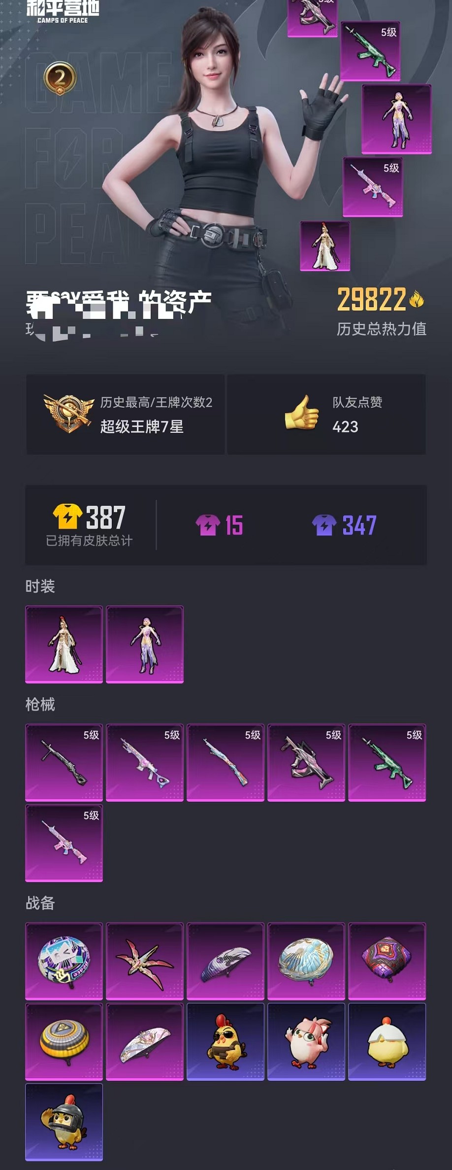 【蓝粉螳螂红眼罩 2粉装6特效呛可秒换绑】 安卓q区-29822热力值-2印记-83套装-99呛皮 【2稀有】 8号机 mark.06【2粉装】 角色-金域紫灵 角色-萨利娅【6特效呛】 m416-电玩时刻5级 m762-青锋波束5级 mk14-甜梦熊击5级 groza-镜光银凌5级 kar98k-巳巳如意5级 dp-28-豹影疾电5级【9热门】 浪漫天命 潮萌小黄鸭 鹰眼刺客 暗影哥特红眼罩 狂沙舞者 冰公主 白色伏地魔 mark.06 8号机【1飞行器】 祥瑞起舞飞行器 营地id:960175448
