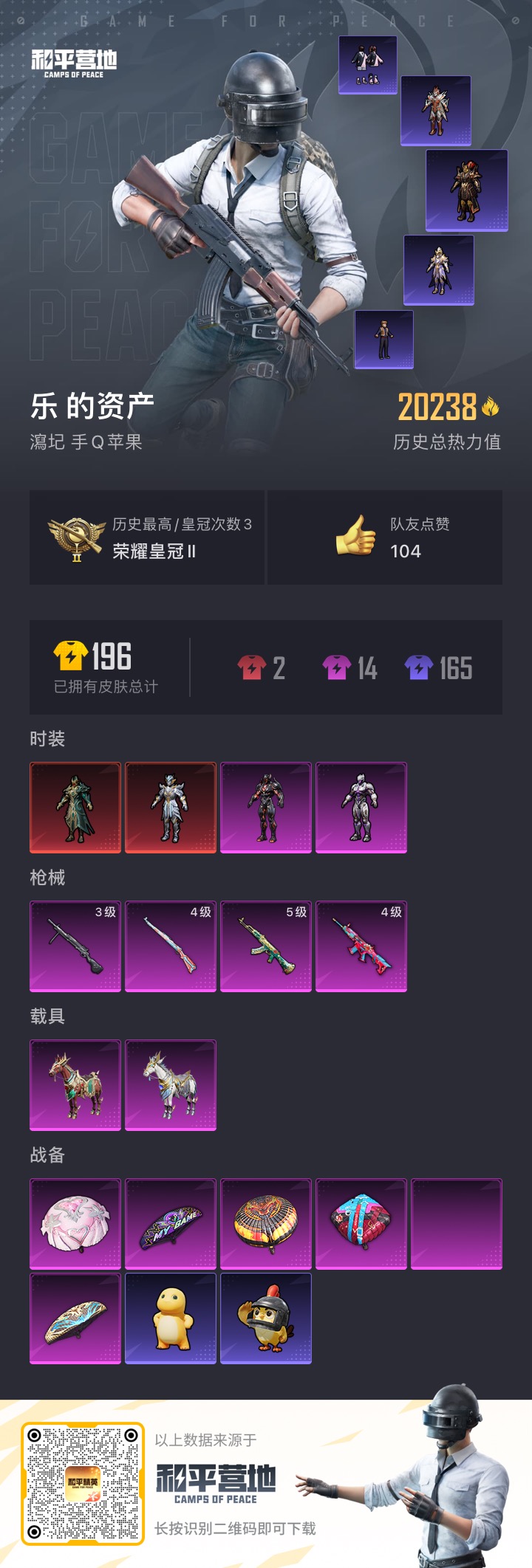 _2259144-2红装2载具2粉装4特效呛【2红装】青焰关公1级银呛赵云1级【2载具】照夜玉狮子赤兔【2粉装】熔岩统帅紫钛骑兵【4特效呛】akm-绿萝繁花5级kar98k-巳巳如意4级dp-28-豹影疾电3级scar-l-彩装战姬4级【3热门】深海小丑鱼破蛋小黄鸡m416-快乐主宰营地id:961846328