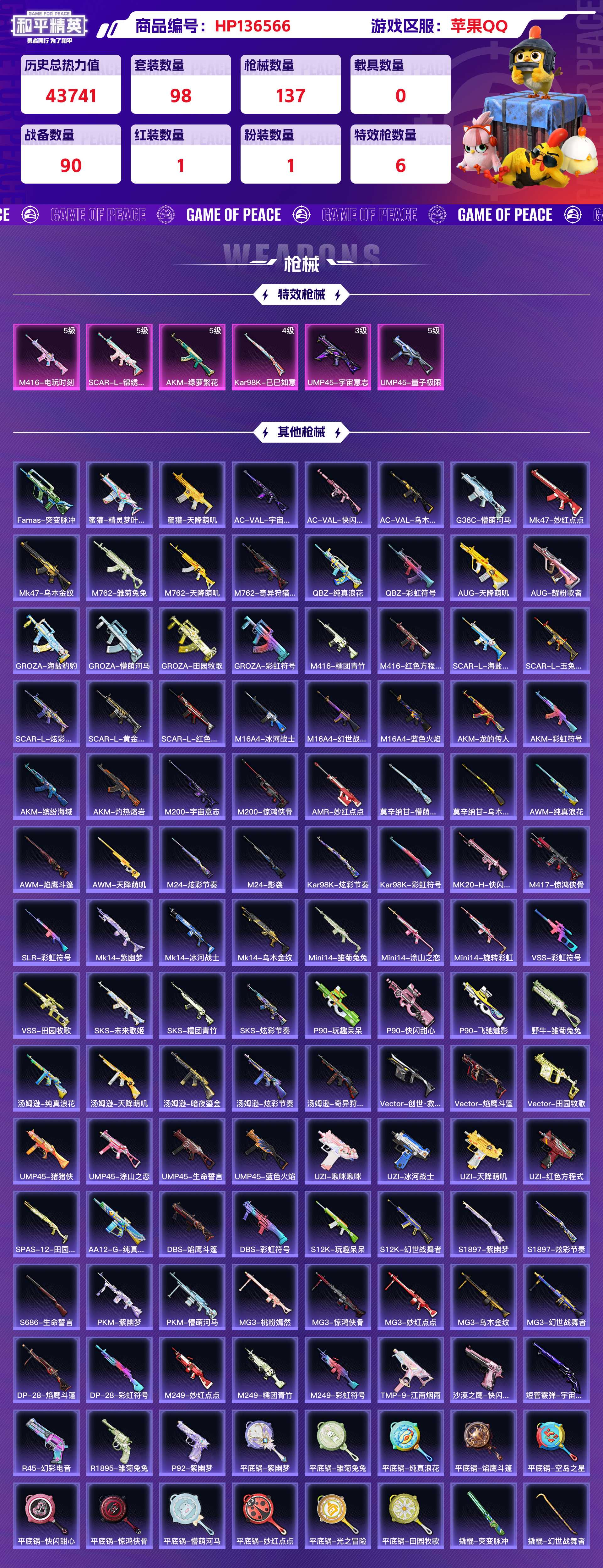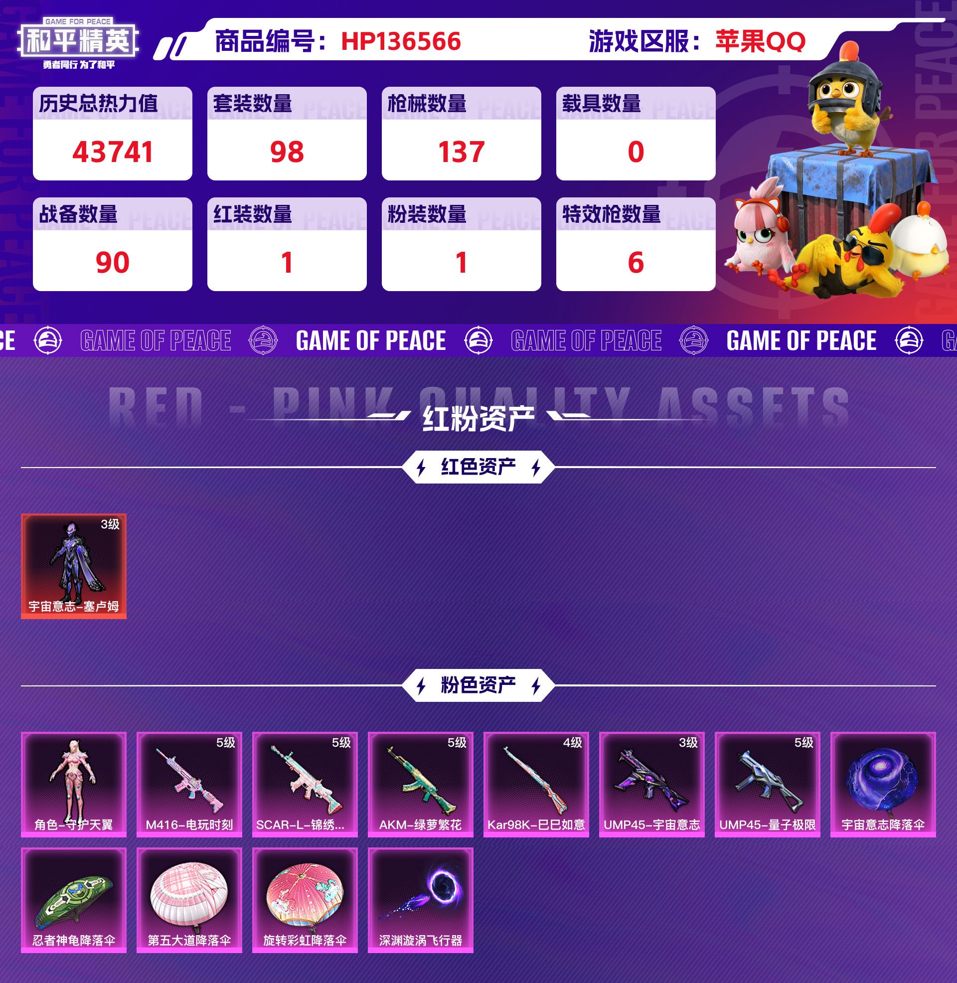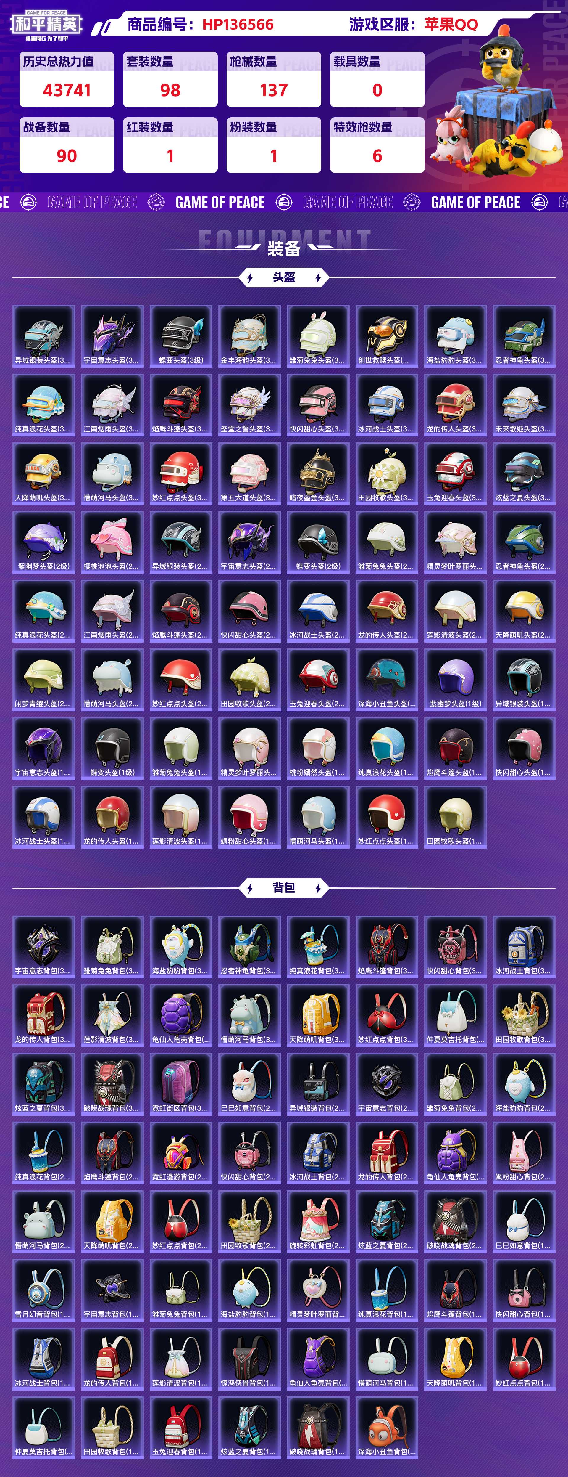 2247851-苹果qq 历史总热力值:43741 红装数量:1 粉装数量:1 特效呛数量:6 王牌印记:12 历史最高段位:超级王牌18星 套装数量:98 时装数量:365 呛械数量:137 战备数量:90 装备数量:144 时装:宇宙意志-塞卢姆3级角色-守护天翼套装-ss19特训套装-ss20特训套装-ss21特训套装-ss22特训套装-ss23特训套装-ss24特训