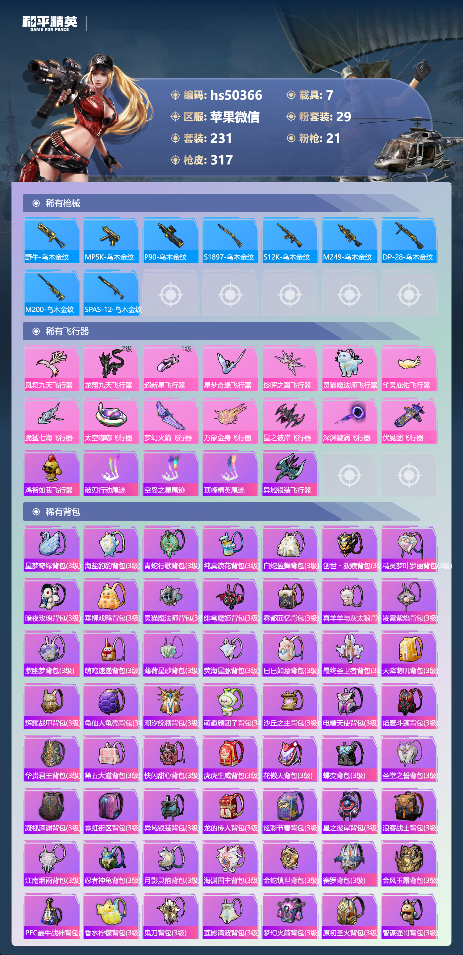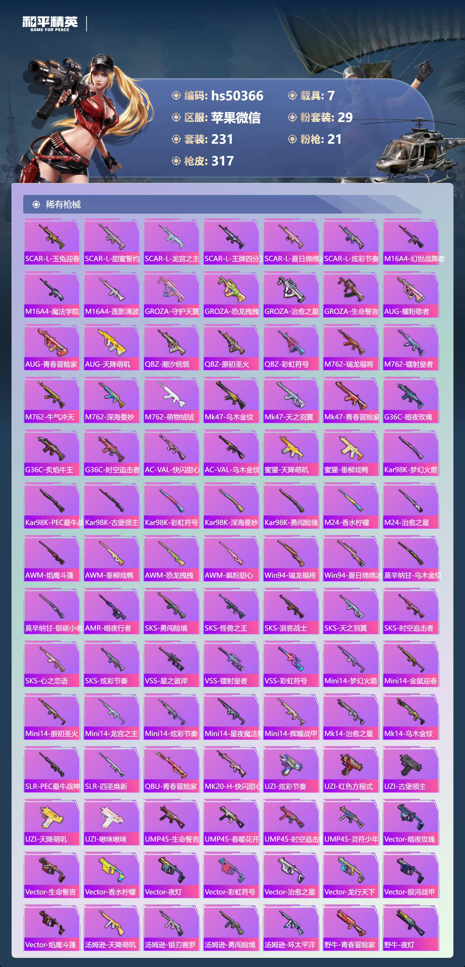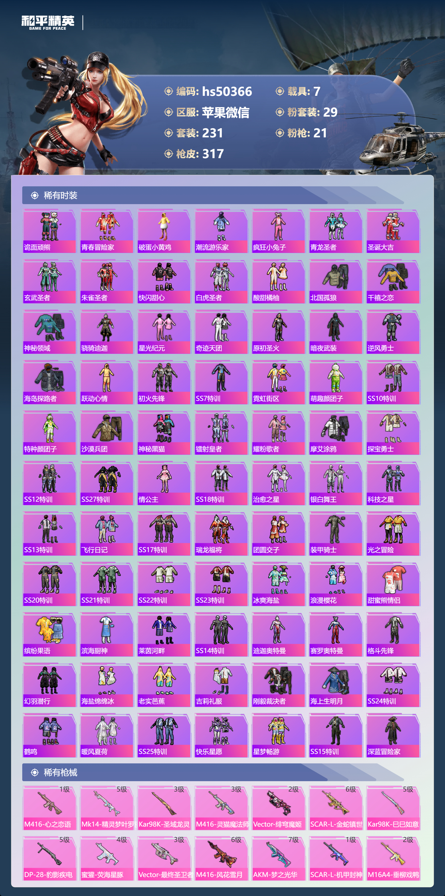 hs50366 苹果微信-18王牌印记-29粉装-21特效呛-7载具-热力值-231套装-317呛皮-3卓越印记-1传奇印记【29粉装】角色-荧海星豚角色-狂魅哈莉套装-炫光之旅套装-憨憨奶龙套装-黄蜂伯爵角色-冰域雷影套装-傲傲奶龙套装-香水柠檬角色-猩猩队长角色-复仇流浪者角色-超弦星套装-深渊皇后套装-古堡领主套装-垂柳戏鸭套装-莲影清波时空协奏·