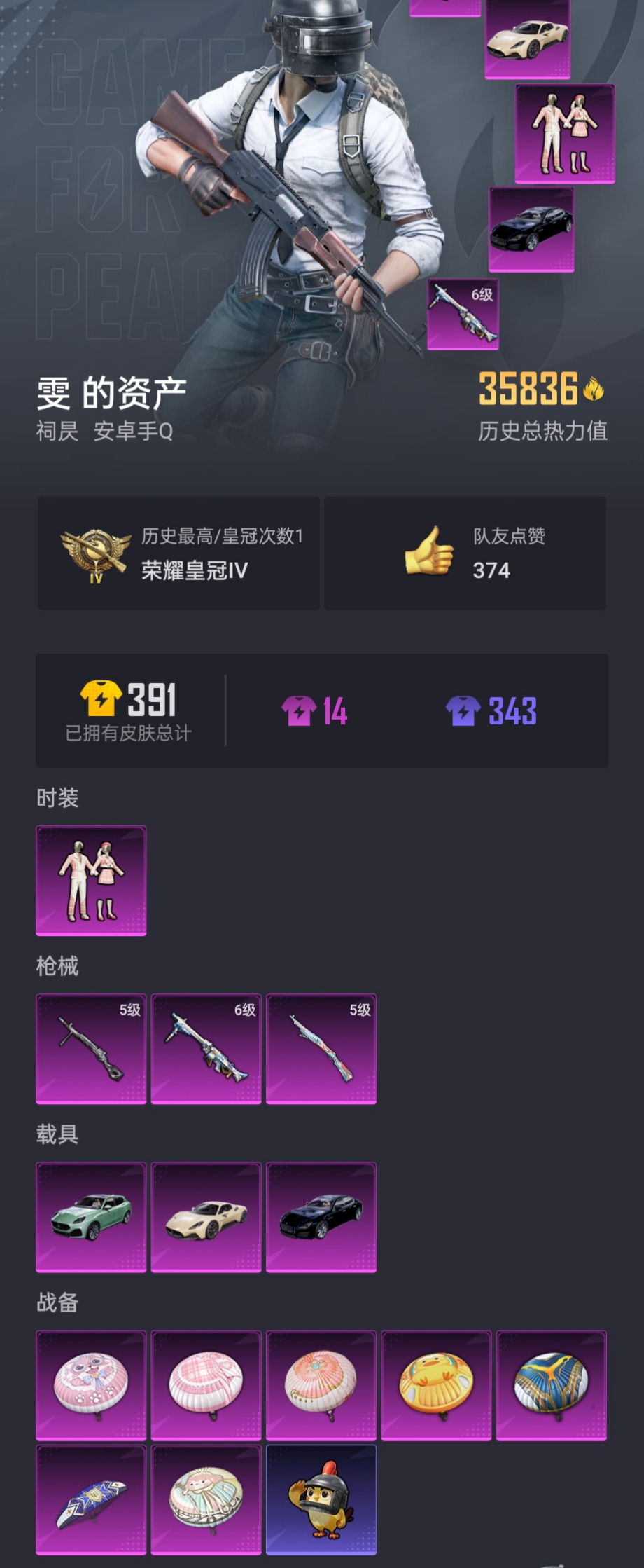 【送王者1典藏1无双20传说-1粉装-3特效呛-3载具】安卓手q-0王牌印记-1粉装-3特效呛-3载具-35836热力值-89套装-106呛皮【1粉装】套装-第五大道【3特效呛】dp-28-豹影疾电/5级mg3-洛神天依/6级kar98k-巳巳如意/5级【1稀有紫装】龟仙人【3稀有载具】玛莎拉蒂quattropte夜幕蓝玛莎拉蒂grecale薄荷绿玛莎拉蒂mc20星石白