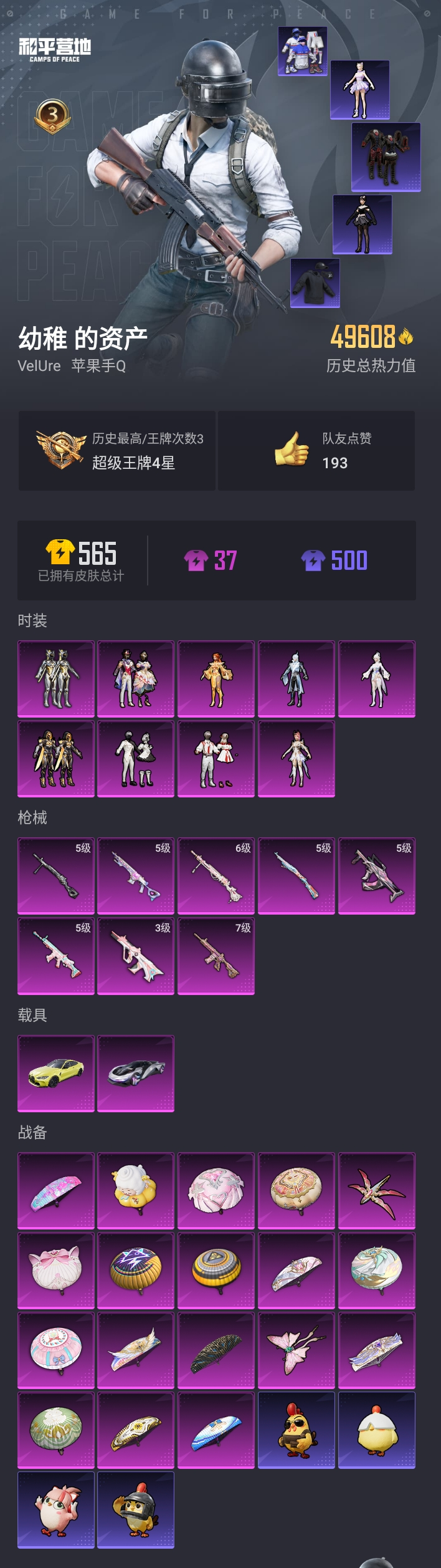 【和平精英】【lyhp16031】9粉装8特效呛2载具 炫金战神 女娲灵识 圣堂之誓 暗影哥特 都市丽猫 浪漫天命 3级aug甜心首席 满级m4心之恋语 6级dp-28千金淑猫 宝马m4 时空跃影 9粉装,8特效呛,2载具,历史最高段位:超级王牌4星 王牌印记3次 热力值:49608,109套装,154呛械,188装备,96战备;套装:套装-绚金战神,套装-冰川幽秘,套装-冰川红玫,角色-圣堂之誓,套装-创世·救赎,角色-女娲灵识,角色-伏羲圣卦,角色-羲和光序,套装-星穹咏叹调,套装-特训学院,套装-猎鹰,套装-青年教官,套装-橘黑制服,套装-红色运动,套装-黄色运动,套装-蓝色运动,套装-黄色伏地魔,套装-白色伏地魔,套装-黑色伏地魔,套装-竞技名士,套装-深蓝色名流,套装-湖蓝色名流,套装-长空猛禽,套装-海岛探路者,套装-浪漫天命,套装-特殊使命,套装-活力之心,套装-迎春赐吉,套装-竞技达人朋克,套装-森林游猎者,套装-暗影哥特,套装-生化防暴队,套装-青涩时光,套装-缤纷果语,套装-滨海厨神,套装-alan walker,套装-浴火魔神,套装-淡雅花蕊,套装-鹤鸣,套装-霓虹街区,套装-白熊同盟,套装-白糯汤圆,套装-战术大师,套装-热情海星,套装-纯真浪花,套装-暗夜傀儡,套装-甜心信使,套装-玉兔迎春,套装-光之冒险,套装-绯格组合,套装-王牌教练,套装-柠萌假日,套装-龟仙人,套装-ss25特训,套装-惊鸿侠骨,套装-锦衣飞扬,套装-香桃花海,套装-龙的传人,套装-ss26特训,套装-快闪甜心,套装-春光漫游,套装-漫游都市,套装-空岛之星,套装-无暇誓言,套装-萌趣绒叽,套装-傲娇队长,套装-云魄琉璃,套装-焰鹰斗篷,套装-幽夜迷踪,套装-幻羽潜行,套装-ss27特训,套装-老实芭蕉,套装-ss28特训,角色-蝶吟花词,角色-情公主,角色-银尘,角色-mark.06,套装-街头风暴,套装-海盐绵绵冰,套装-ss29特训,角色-狂花道·雅典娜,角色-无面战甲,套装-异域银装,角色-摩登魅猫,角色-都市丽猫,套装-星途旅人,套装-ss30特训,套装-小鸟芋圆,套装-ss31特训,套装-鱼渊荷华,套装-燕燕于飞,套装-智谋强哥,套装-紫幽梦,套装-粉恋花,套装-ss33特训,套装-云朵鹅,套装-巳巳如意,套装-ss32特训,套装-蓝冰羽,套装-顶瓜瓜,套装-雪绒豹,套装-大橘大利,套装-极速光影,套装-星渊小夜曲,套装-星影赞美诗,玩偶服-喜羊羊,套装-ss34特训,套装-薄荷星砂,套装-ss35特训;呛皮:5级scar-l-锦绣绵绵,scar-l-夜灯,scar-l-是爱神辣,scar-l-星途旅人,scar-l-海盐豹豹,5级groza-镜光银凌,groza-黑色刀锋,groza-海盐豹豹,groza-无面战甲,akm-缤纷海域,akm-龙的传人,akm-江南烟雨,akm-霓彩脉冲,m762-奇异狩猎者,m762-诡娃娃,m762-彩虹符号,m762-云朵鹅,q-洛神天依,q-纯真浪花,3级aug-甜心首席,aug-甜蜜菠萝,aug-辉耀战甲,aug-异域银装,aug-紫晶流影,m16a4-凝视深渊,m16a4-冰河战士,m16a4-千金淑猫,7级m416-心之恋语,m416-阿狸红,m416-糯团青竹,m416-绿洲时空,蜜獾-天降萌叽,蜜獾-精灵梦叶罗丽,蜜獾-绯穹魔姬,蜜獾-鸡智如我,蜜獾-乌木金纹,famas-乌木金纹,g36c-暗夜玫瑰,ac-val-快闪甜心,amr-乌木金纹,5级kar98k-巳巳如意,kar98k-顶峰精英,莫辛纳甘-蜜语绒猫,m200-惊鸿侠骨,m200-乌木金纹,svd-冷漠罗丽,svd-云朵鹅,m24-拂晓神骑,m24-幻彩电音,win94-乌木金纹,awm-焰鹰斗篷,awm-纯真浪花,5级mk14-甜梦熊击,mk14-紫幽梦,mk14-薄荷星砂,m417-惊鸿侠骨,m417-玩趣呆呆,mk20-h-快闪甜心,mk20-h-星途旅人,mk20-h-乌木金纹,mini14-春暖花开,mini14-阿狸红,mini14-香桃花海,mini14-熔岩统帅,vss-香桃花海,slr-霓彩脉冲,sks-未来歌姬,uzi-幻影战神,uzi-天降萌叽,uzi-冰河战士,uzi-绝色倾城,uzi-啾咪啾咪,vect-生命誓言,vect-暗夜玫瑰,vect-焰鹰斗篷,vect-燕燕于飞,ump45-夜灯,ump45-春暖花开,ump45-海盐豹豹,p90-快闪甜心,p90-玩趣呆呆,p90-竞速先锋,p90-巳巳如意,p90-乌木金纹,汤姆逊-幻影战神,汤姆逊-天降萌叽,汤姆逊-纯真浪花,aks-74u-鸡智如我,aks-74u-乌木金纹,野牛-燕燕于飞,mp5k-乌木金纹,dbs-歌者泠鸢,dbs-彩虹符号,dbs-焰鹰斗篷,dbs-幻彩电音,dbs-乌木金纹,s1897-精灵梦叶罗丽,s1897-紫幽梦,s686-生命誓言,s686-橘柚倾心,s686-千金淑猫,s686-巳巳如意,spas-12-燕燕于飞,spas-12-云朵鹅,spas-12-乌木金纹,aa12-g-纯真浪花,aa12-g-星空武士,aa12-g-牡丹亭·游园,s12k-幻影战神,s12k-夜灯,s12k-玩趣呆呆,s12k-霓彩脉冲,mg3-惊鸿侠骨,mg3-霓彩脉冲,6级dp-28-千金淑猫,5级dp-28-豹影疾电,dp-28-彩虹符号,dp-28-焰鹰斗篷,dp-28-alan walker潮音版,pkm-紫幽梦,m249-无面战甲,沙墨之鹦-快闪甜心,沙墨之鹦-云朵鹅,蝎式手呛-闲梦青缨,蝎式手呛-千金淑猫,蝎式手呛-燕燕于飞,短管霰弹-星穹咏叹调,p18c-百万伏特,r1895-六号树人,p1911-无面战甲,tmp-9-未来歌姬,p92-紫幽梦,平底锅-惊鸿侠骨,平底锅-超新星,平底锅-快闪甜心,平底锅-空岛之星,平底锅-焰鹰斗篷,平底锅-精灵梦叶罗丽,平底锅-纯真浪花,平底锅-紫幽梦,平底锅-属我最6,撬棍-alan walker潮音版,大砍刀-2p战斗服款,大砍刀-云朵鹅,十子怒-异瞳寒姬,十子怒-燕燕于飞,十子怒-异域银装,破片手留单-呆爆全场,破片手留单-星途旅人,破片手留单-海盐豹豹,破片手留单-巳巳如意,爆炸猎弓-惊鸿侠骨,战术弩-江南烟雨,铝热弹-炫彩糖果;载具:宝马m4圣保罗黄,时空跃影星辉银;降落伞:百万伏特降落伞,闲梦青缨降落伞,未来歌姬降落伞,拂晓神骑降落伞,甜心首席降落伞,圣堂之誓降落伞,绝色倾城降落伞,繁龙极客降落伞,镜域双华降落伞,精灵梦叶罗丽降落伞,创世·救赎降落伞,千金淑猫降落伞,冷漠罗丽降落伞,星穹咏叹调降落伞,喜羊羊与灰太狼降落伞,炫彩糖果降落伞,