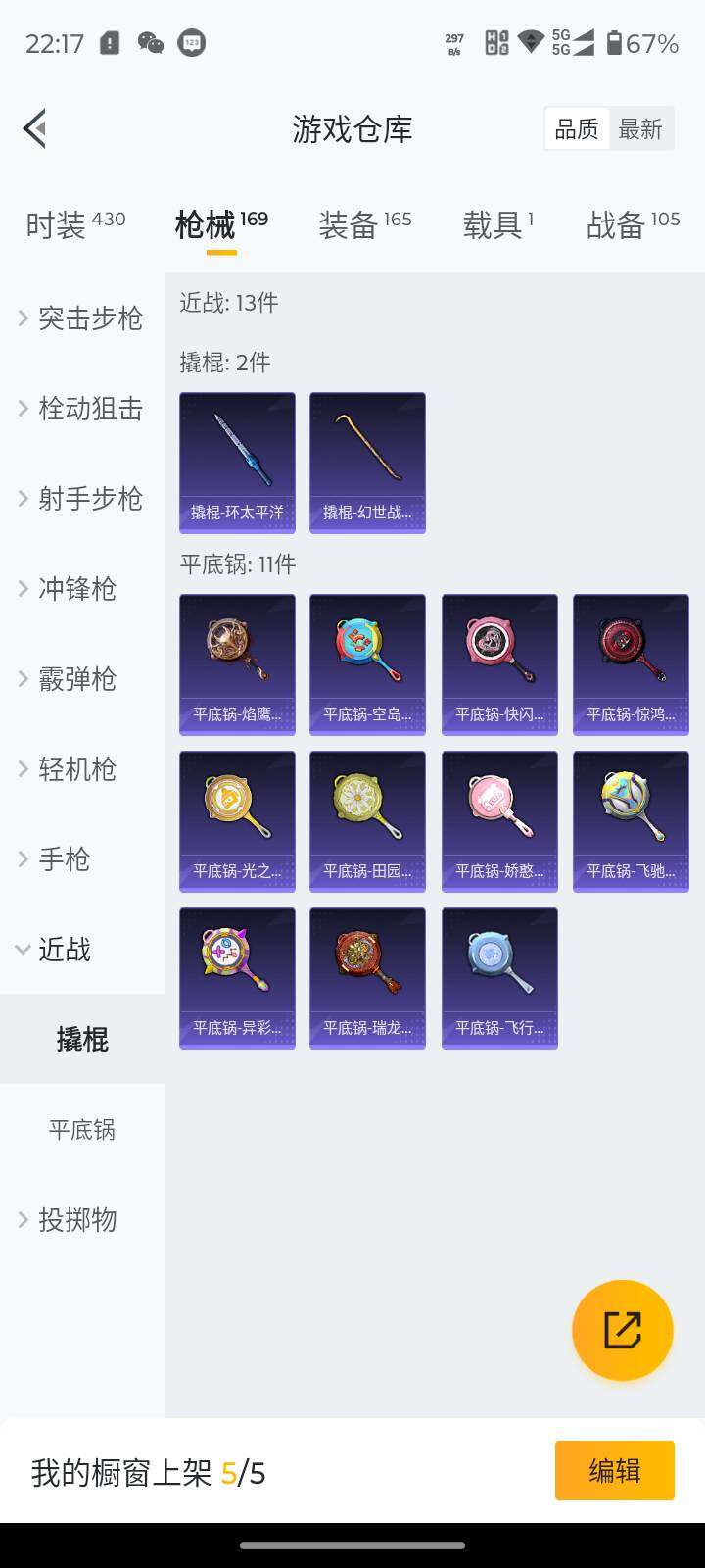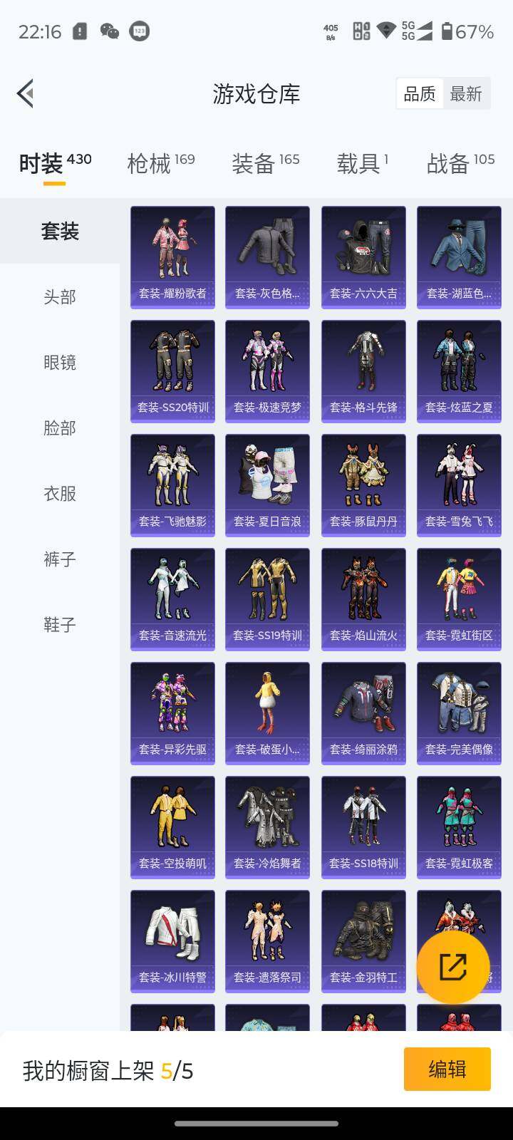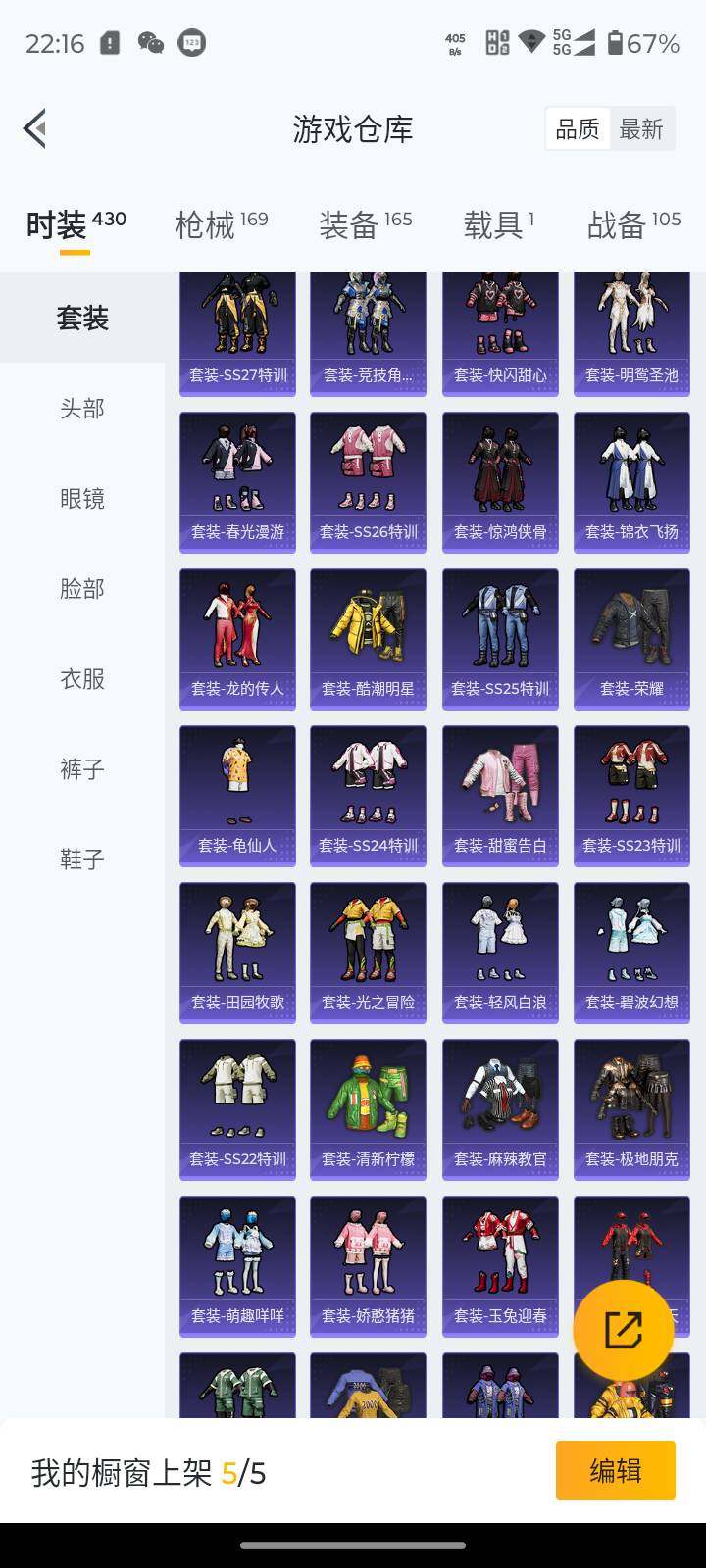 安卓 手q-5922 1粉装-3特效呛-1载具-1粉色飞行器-47177热力值-8王牌印记-113套装-169呛皮 【热门品类】:套装-金羽特工,套装-龟仙人,套装-粉红小猪 【粉色载具】:合金龙骨(蓝) 【粉色套装】:角色-复仇流浪者 【粉色呛皮等级】:m416-电玩时刻五级,kar98k
