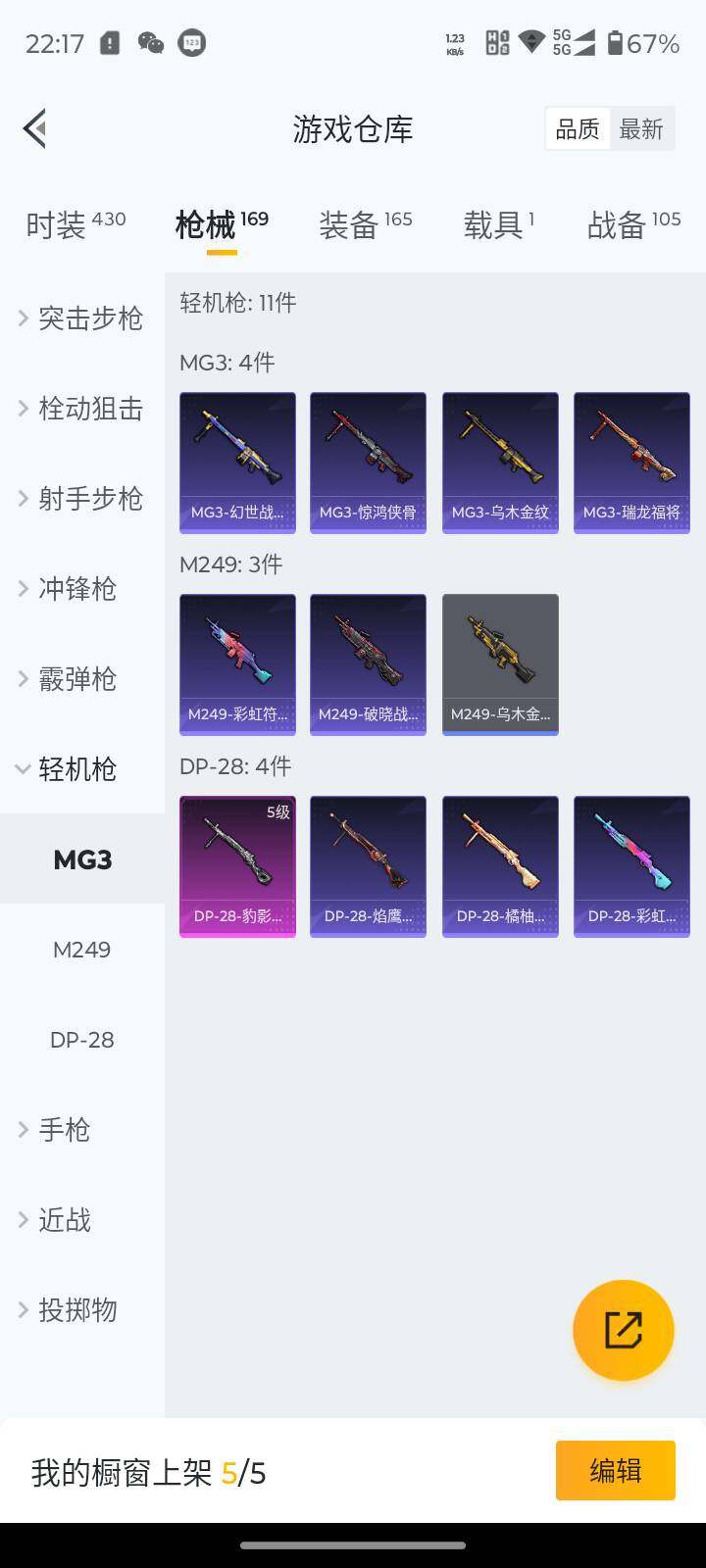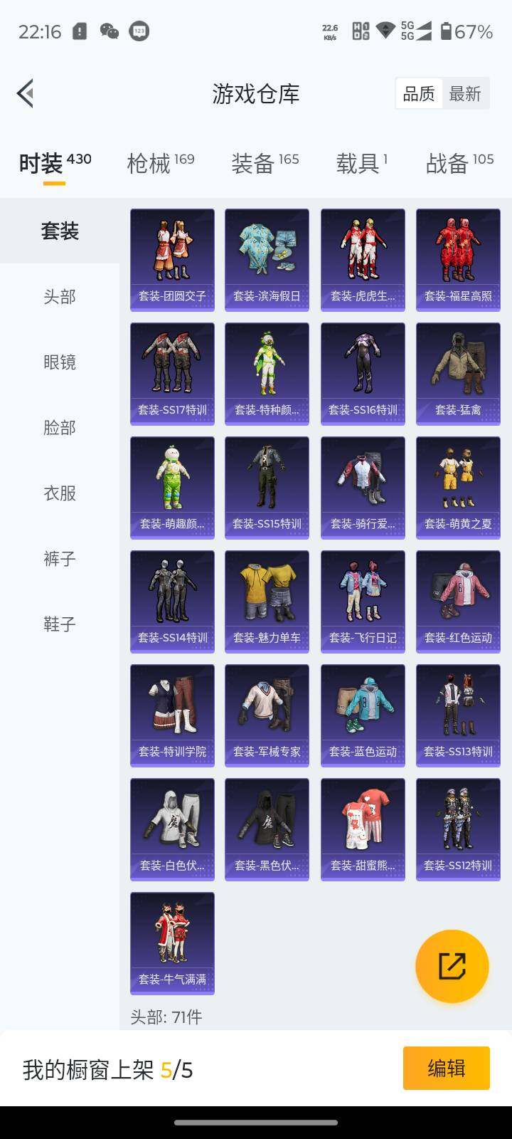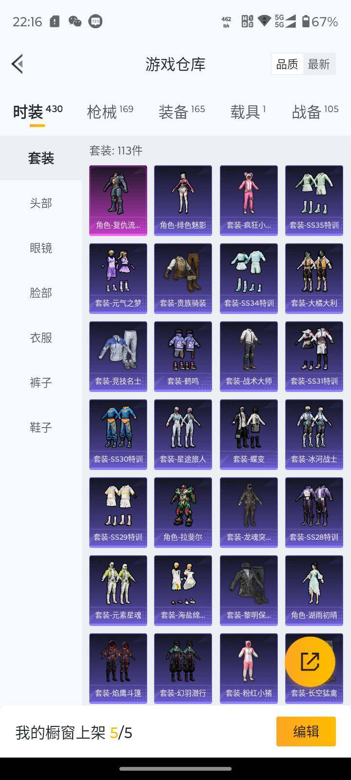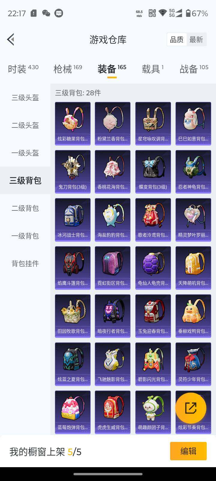 安卓 手q-5922 1粉装-3特效呛-1载具-1粉色飞行器-47177热力值-8王牌印记-113套装-169呛皮 【热门品类】:套装-金羽特工,套装-龟仙人,套装-粉红小猪 【粉色载具】:合金龙骨(蓝) 【粉色套装】:角色-复仇流浪者 【粉色呛皮等级】:m416-电玩时刻五级,kar98k