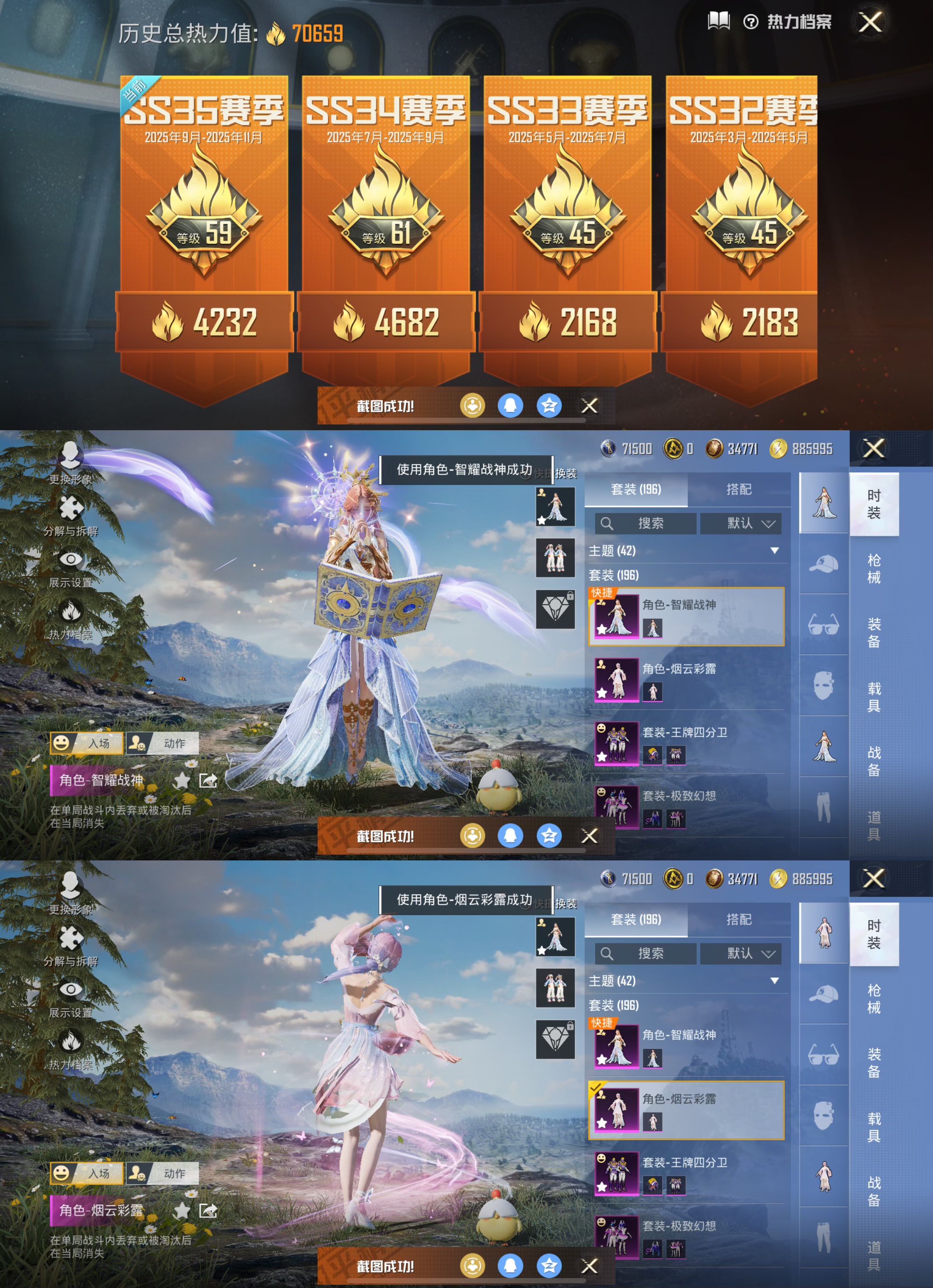 【1载具4粉装5特效】 苹果q-2稀有1载具4粉装5特效呛23热门196套装236呛皮 70659热力值 12印记 历史超级王牌11星 【2稀有】 奇异狩猎者 akm-缤纷海域 【1载具】 迈凯伦570s旭日黄 【4粉装】 烟云彩露 智耀战神 极致幻想 王牌四分卫 【5特效呛】 m416-心之恋语 7级 kar98k-巳巳如意 5级 dp-28-豹影疾电 5级 au