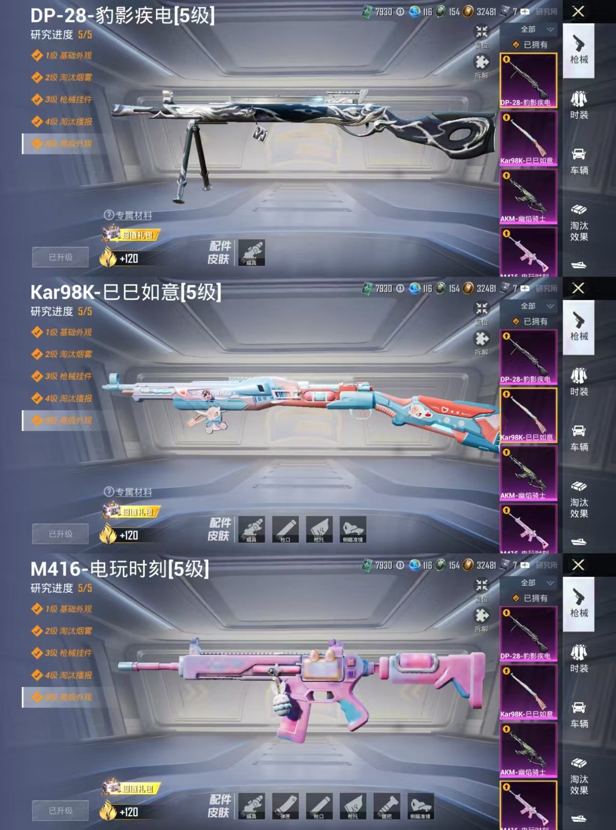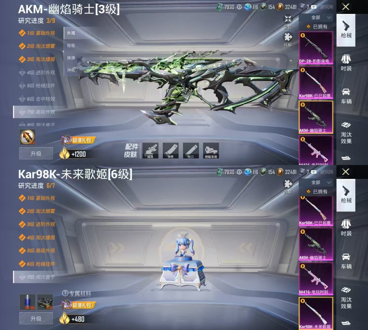 2267088-实名: 可修改 时装数: 532 载具数: 1 呛械数: 184 战备数: 125 热门装扮: 紫电风暴第五大道时空协奏·回响未来领航者樱桃泡泡 载具: 双人摩托-梦幻火箭 稀有呛皮: kar98k未来歌姬m416电玩时刻akm-幽焰骑士kar98k-巳巳如意dp-28-豹影疾电