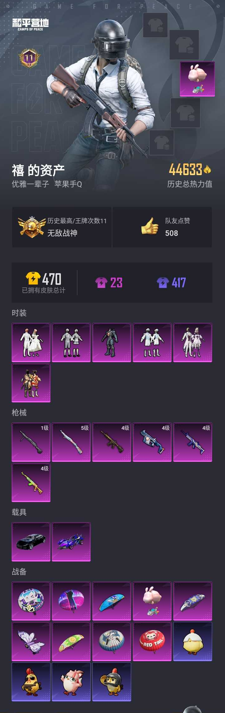 【和平精英】【lyhp16414】ss17无敌战神 6粉装6特效呛3载具含1僚机 复仇流浪者 4级m4五爪金龙 4级死噶青春物语 4级vect环太平洋 玛莎拉蒂 海龙奔腾 6粉装,6特效呛,2载具,历史最高段位:无敌战神 王牌印记11次 热力值:44633,111套装,133呛械,131装备,73战备;套装:套装-迷蝶贵族,套装-葫芦兄弟,角色-复仇流浪者,套装-岚岚物语,套装-海盐物语,套装-心之回忆,套装-特训学院,套装-猎鹰,套装-青年教官,套装-蓝色运动,套装-白色伏地魔,套装-骑行爱好者,套装-竞技名士,套装-长空猛禽,套装-漫步者,套装-黎明保卫者,套装-海岛探路者,套装-特战装甲,套装-特殊使命,套装-甜蜜告白,套装-滨海假日,套装-沙漠毒蛇,套装-苍穹猎鹰,套装-完美偶像,套装-人气偶像,套装-幻影武者,套装-热血骑手,套装-特战英豪,套装-神秘领域,套装-怒火燎原,套装-绮丽涂鸦,套装-耀眼新星,套装-竞技达人朋克,套装-都市漫游者,套装-破晓战魂,套装-都市魅力,套装-雪山精英,套装-酷潮明星,套装-幻世战舞者,套装-金耀舞者,套装-蓝调潮人,套装-甜蜜熊情侣,套装-风暴特警,套装-格斗先锋,套装-冷血极客,套装-海上生明月,套装-麻辣教官,套装-鹤鸣,套装-萌黄之夏,套装-夏日音浪,套装-探宝勇士,套装-牛气满满,套装-骁骑迪迦,套装-萌趣颜团子,套装-特种颜团子,套装-战术大师,套装-ss12特训,套装-ss18特训,套装-耀粉歌者,套装-迅捷之星,套装-治愈之星,套装-科技之星,套装-飞行日记,套装-ss13特训,套装-ss14特训,角色-欧布奥特曼,套装-吉莉礼服,套装-ss15特训,套装-ss16特训,套装-暴风机械师,套装-时空追击者,套装-暗夜魅影,套装-ss17特训,套装-瑞龙福将,套装-团圆交子,套装-极乐追光,套装-炫光向阳,套装-福星高照,角色-军刀雅典娜,套装-异彩先驱,套装-霓虹极客,套装-空投萌叽,套装-ss19特训,套装-兔兔白日梦,套装-飞驰魅影,套装-音速流光,套装-炫蓝之夏,套装-ss20特训,套装-甜心亚梦,套装-虚音幻奏,套装-ss21特训,套装-暖心熊熊,套装-萌趣咩咩,套装-娇憨猪猪,套装-玉兔迎春,套装-ss23特训,套装-飞狐塔尔斯,套装-妙红点点,套装-幻彩翩翩,套装-王牌教练,套装-恋语绒绒,角色-湖雨初晴,套装-ss31特训,套装-鱼渊荷华,套装-燕燕于飞,套装-紫幽梦,套装-ss33特训,套装-ss32特训,套装-蓝冰羽,套装-大橘大利,套装-极速光影;呛皮:ac-val-甜心亚梦,ac-val-天降萌叽,q-彩虹符号,q-飞驰魅影,4级m416-五爪金龙,m416-蓝色火焰,m416-绯红前夜,m416-红色方程式,m416-月影鸳鸯,m416-糯团青竹,akm-生命誓言,akm-破晓战魂,akm-霓虹街区,akm-夜灯,akm-萌趣颜团子,akm-虎虎生威,akm-环太平洋,蜜獾-娇憨猪猪,蜜獾-垂柳戏鸭,蜜獾-乌木金纹,m762-绯红前夜,m762-牛气冲天,m762-瑞龙福将,m762-绒雪飘舞,mk47-洛神天依,mk47-乌木金纹,mk47-妙红点点,g36c-绮梦青鸾,g36c-时空追击者,g36c-乌木金纹,4级scar-l-青春物语,scar-l-红色方程式,scar-l-黄金龙骨,scar-l-夜灯,scar-l-炫彩节奏,scar-l-碧影闪光,scar-l-玉兔迎春,m16a4-红色方程式,m16a4-甜心亚梦,groza-治愈之星,groza-异彩先驱,groza-青春物语,aug-耀粉歌者,awm-黄金龙骨,awm-音爆索尼克,awm-乌木金纹,win94-瑞龙福将,5级kar98k-巳巳如意,kar98k-红色方程式,kar98k-炫彩节奏,kar98k-飞驰魅影,kar98k-乌木金纹,m200-乌木金纹,莫辛纳甘-乌木金纹,amr-妙红点点,m24-治愈之星,m24-乌木金纹,4级sks-碧影闪光,sks-夜灯,sks-炫彩节奏,sks-时空追击者,mini14-炫彩节奏,mini14-耀粉歌者,mini14-异彩先驱,mk14-治愈之星,mk14-乌木金纹,mk14-紫幽梦,slr-月影鸳鸯,slr-娇憨猪猪,vss-碧影闪光,mk20-h-樱桃泡泡,汤姆逊-耀粉歌者,汤姆逊-异彩先驱,汤姆逊-环太平洋,汤姆逊-乌木金纹,ump45-夜灯,ump45-蓝色火焰,ump45-生命誓言,ump45-时空追击者,野牛-王牌四分卫,野牛-燕燕于飞,野牛-乌木金纹,4级vect-环太平洋,vect-彩虹符号,vect-治愈之星,vect-燕燕于飞,p90-飞驰魅影,uzi-红色方程式,uzi-炫彩节奏,uzi-娇憨猪猪,mp5k-异彩先驱,s686-红色方程式,s686-生命誓言,s1897-百万伏特,s1897-炫彩节奏,s1897-碧影闪光,s1897-飞驰魅影,s1897-紫幽梦,s1897-乌木金纹,s12k-瑞龙福将,s12k-娇憨猪猪,s12k-玩趣呆呆,spas-12-燕燕于飞,dbs-时空追击者,dbs-甜心亚梦,mg3-瑞龙福将,mg3-幻世战舞者,mg3-妙红点点,pkm-啾咪啾咪,pkm-紫幽梦,m249-破晓战魂,m249-星之彼岸,m249-妙红点点,m249-乌木金纹,1级dp-28-豹影疾电,dp-28-甜心亚梦,p92-紫幽梦,蝎式手呛-燕燕于飞,信号呛-异瞳寒姬,平底锅-治愈之星,平底锅-时空追击者,平底锅-瑞龙福将,平底锅-风花雪月,平底锅-异彩先驱,平底锅-飞驰魅影,平底锅-甜心亚梦,平底锅-娇憨猪猪,平底锅-妙红点点,平底锅-紫幽梦,撬棍-绯红前夜,撬棍-环太平洋,十子怒-燕燕于飞,破片手留单-萌趣颜团子;载具:玛莎拉蒂quattropte夜幕蓝,海龙奔腾;僚机:僚机-萌兔起飞;降落伞:炫紫旋律降落伞,银刃赛罗降落伞,阿狸红降落伞,碧影闪光降落伞,青春物语降落伞,音爆索尼克降落伞,幻彩电音降落伞,勇者同行降落伞,绚烂橙彩降落伞,蓝海之火降落伞,化学天才降落伞,钢铁雄心降落伞,元宵华灯降落伞,破晓战魂降落伞,ss12王牌降落伞,牛气冲天降落伞,ss13王牌降落伞,ss14王牌降落伞,治愈之星降落伞,神秘科技降落伞,光影工厂降落伞,时空追击者降落伞,萌趣颜团子降落伞,2022烟花降落伞,瑞龙福将降落伞,ss17王牌降落伞,虎虎生威降落伞,异彩先驱降落伞,ss18王牌降落伞,空投萌叽降落伞,飞驰魅影降落伞,ss19王牌降落伞,甜心亚梦降落伞,娇憨猪猪降落伞,ss21王牌降落伞,ss23王牌降落伞