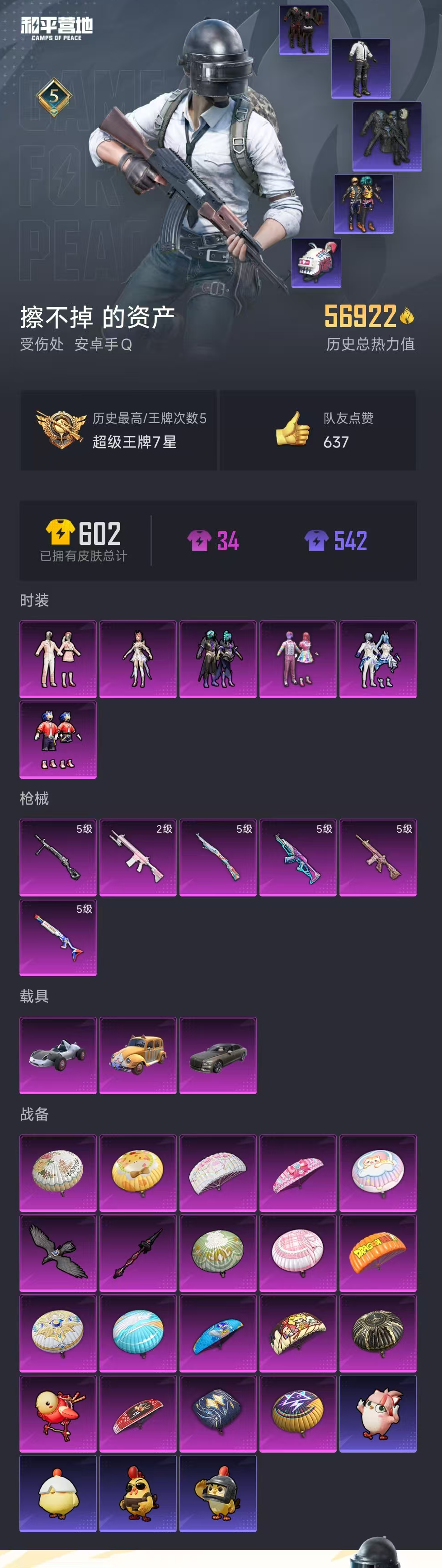【和平精英】【lyhp16444】5.6w热力值6粉装6特效呛3载具 第五大道 都市 小丑鱼 暗影哥特 兔头 5级梦之光华akm 5级心之恋语m416 宾利飞驰 6粉装,6特效呛,3载具,历史最高段位:超级王牌7星 王牌印记5次 热力值:57085,102套装,154呛械,232装备,93战备;套装:套装-天使彩虹糖,套装-天幕蝎影,套装-音爆索尼克,套装-第五大道,套装-未来歌姬,角色-圣堂之誓,套装-红色运动,套装-黄色运动,套装-蓝色运动,套装-白色伏地魔,套装-黑色伏地魔,套装-竞技名士,套装-湖蓝色名流,套装-猛禽,套装-长空猛禽,套装-漫步者,套装-海岛探路者,套装-雨林探路者,套装-都市猎人,套装-特殊使命,套装-燃烧卡路里,套装-鹰眼刺客,套装-冰冻风暴,套装-幻影武者,套装-街头潮人,套装-魅力单车,套装-耀眼新星,套装-超能勇士,套装-森林游猎者,套装-暗影哥特,套装-弄潮海豚,套装-深海小丑鱼,套装-夏日倾情,套装-缤纷果语,套装-冰川特警,套装-疯狂小兔子,套装-霓虹街区,套装-白糯汤圆,套装-战术大师,套装-ss22特训,套装-和煦暖阳,套装-田园牧歌,套装-轻风白浪,套装-白啸长虹,套装-绚烂繁星,套装-熠彩粉晶,套装-ss23特训,套装-莱茵河畔,套装-神气柴柴,套装-懵萌河马,套装-妙红点点,套装-幻彩翩翩,套装-王牌教练,套装-柠萌假日,套装-ss24特训,套装-龟仙人,套装-ss25特训,套装-金戈铁马,套装-惊鸿侠骨,套装-锦衣飞扬,套装-晨曦薄雾,套装-元气发射,套装-龙的传人,套装-ss26特训,套装-快闪甜心,套装-春光漫游,套装-空岛之星,套装-无暇誓言,套装-彩霞狙击,套装-贝斯之夜,套装-焰鹰斗篷,套装-幽夜迷踪,套装-幻羽潜行,套装-ss27特训,套装-老实芭蕉,套装-ss28特训,角色-青蛇行歌,角色-情公主,角色-冰公主,套装-海盐绵绵冰,套装-蝶变,套装-湖畔霞光,套装-ss29特训,套装-雏菊兔兔,套装-萝兰蝴蝶,角色-都市丽猫,角色-许七安,套装-ss31特训,套装-鱼渊荷华,套装-燕燕于飞,套装-智谋强哥,套装-晶辉守护,玩偶服-小狗蛇点点,套装-巳巳如意,套装-ss32特训,套装-元气之梦,套装-ss34特训,套装-擎苍青焰,套装-朱霞炽焰,套装-凌霄紫焰,套装-薄荷星砂,套装-萌鸡速递;呛皮:蜜獾-天降萌叽,蜜獾-精灵梦叶罗丽,aug-甜蜜菠萝,aug-耀粉歌者,aug-圣光天使,aug-紫晶流影,mk47-百万伏特,mk47-妙红点点,mk47-极冰使者,5级m416-心之恋语,m416-红色方程式,m416-糯团青竹,m416-摩登王国,arx-凌霄紫焰,m762-甜心宝贝,m762-暗夜鎏金,m762-第五大道,m762-天降萌叽,m762-雏菊兔兔,groza-影袭,groza-田园牧歌,groza-懵萌河马,ac-val-乌木金纹,ac-val-闲梦青缨,ac-val-快闪甜心,ac-val-彩装战姬,scar-l-红色方程式,scar-l-黄金龙骨,scar-l-夜灯,scar-l-海盐豹豹,g36c-懵萌河马,5级akm-梦之光华,akm-缤纷海域,akm-百万伏特,akm-涂鸦街区,akm-星兔领航员,akm-龙的传人,m16a4-蓝色火焰,q-未来歌姬,莫辛纳甘-乌木金纹,莫辛纳甘-银碳小老虎,莫辛纳甘-懵萌河马,m200-惊鸿侠骨,m200-乌木金纹,m24-影袭,m24-歌者泠鸢,5级kar98k-巳巳如意,kar98k-六号树人,awm-飒粉甜心,awm-焰鹰斗篷,amr-妙红点点,amr-乌木金纹,mk20-h-莲影清波,mk20-h-快闪甜心,mk20-h-白蛇盈舞,mk20-h-乌木金纹,vss-星之彼岸,vss-田园牧歌,2级m417-第五大道,m417-星兔领航员,m417-惊鸿侠骨,mini14-春暖花开,mini14-耀粉歌者,mini14-雏菊兔兔,slr-彩虹符号,sks-糯团青竹,sks-未来歌姬,qbu-飒粉甜心,mk14-冰河战士,汤姆逊-暗夜鎏金,汤姆逊-天降萌叽,汤姆逊-樱桃泡泡,p90-倾城蜜语,p90-快闪甜心,p90-玩趣呆呆,p90-巳巳如意,p90-乌木金纹,ump45-生命誓言,ump45-仲夏莫吉托,ump45-炫光之旅,ump45-猪猪侠,vect-生命誓言,vect-田园牧歌,vect-音爆索尼克,vect-焰鹰斗篷,vect-燕燕于飞,野牛-雏菊兔兔,野牛-燕燕于飞,js9-凌霄紫焰,aks-74u-乌木金纹,uzi-红色方程式,uzi-影袭,uzi-天降萌叽,uzi-冰河战士,uzi-啾咪啾咪,mp5k-乌木金纹,dbs-焰鹰斗篷,dbs-乌木金纹,s12k-童趣迷兔,s12k-音爆索尼克,s12k-玩趣呆呆,s1897-百万伏特,s1897-春暖花开,s1897-暗夜鎏金,s1897-精灵梦叶罗丽,s686-红色方程式,s686-巳巳如意,5级spas-12-音爆索尼克,spas-12-田园牧歌,spas-12-燕燕于飞,spas-12-乌木金纹,aa12-g-炫光之旅,mg3-幻世战舞者,mg3-乌木金纹,mg3-妙红点点,mg3-第五大道,mg3-惊鸿侠骨,mg-36-凌霄紫焰,5级dp-28-豹影疾电,dp-28-甜心宝贝,dp-28-彩虹符号,dp-28-焰鹰斗篷,m249-破晓战魂,m249-彩虹符号,m249-妙红点点,pkm-懵萌河马,p1911-创世·救赎,p1911-小狗蛇点点,沙墨之鹦-快闪甜心,短管霰弹2b战斗服款,r1895-雏菊兔兔,蝎式手呛-燕燕于飞,tmp-9-未来歌姬,p92-凌霄紫焰,平底锅-田园牧歌,平底锅-妙红点点,平底锅-纯梦嫁纱,平底锅-懵萌河马,平底锅-惊鸿侠骨,平底锅-快闪甜心,平底锅-空岛之星,平底锅-焰鹰斗篷,平底锅-雏菊兔兔,平底锅-凌霄紫焰,撬棍-沙丘之主权杖,撬棍-脆鲨七海,大砍刀-青空秋雨,大砍刀-2p战斗服款,大砍刀-黑金刀,爆炸猎弓-惊鸿侠骨,破片手留单-呆爆全场,破片手留单-拽到爆炸,破片手留单-巳巳如意,十子怒-燕燕于飞;载具:萌喵橘座,宾利飞驰布罗德盖棕双色,灵鼠银迹;降落伞:百万伏特降落伞,甜心宝贝降落伞,春暖花开降落伞,圣光天使降落伞,青空秋雨降落伞,歌者泠鸢降落伞,暗夜鎏金降落伞,音爆索尼克降落伞,第五大道降落伞,仲夏莫吉托降落伞,闲梦青缨降落伞,龙珠超降落伞,蜜语绒猫降落伞,戏水时光降落伞,樱桃泡泡降落伞,彩虹独角兽降落伞,勇者同行降落伞,绚烂橙彩降落伞,都市猎人降落伞,蓝海之火降落伞,化学天才降落伞,踏青降落伞,夏日倾情降落伞,和平使命降落