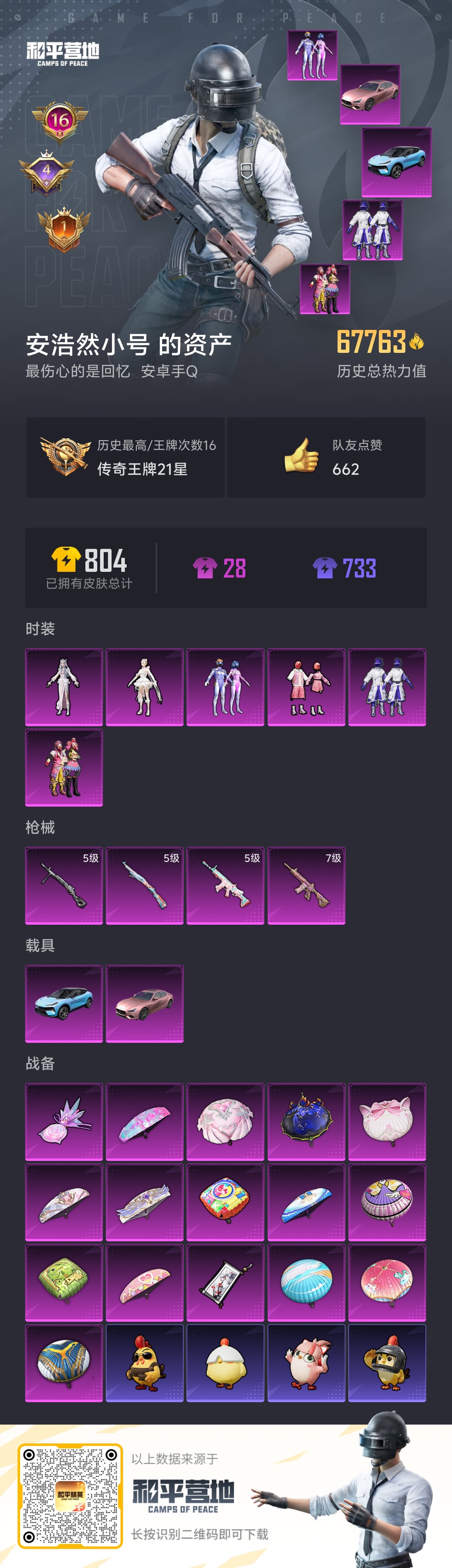 [13920176]das7312 可二次 安卓q-2稀有2载具6粉装4特效呛6热门163套装213呛皮 67763热力值 16印记 历史传奇王牌21星 派对舞王 派对舞王(金靴子) 梦幻火箭 缤纷油彩 m416-心之恋语 7级 【2稀有】 派对舞王 派对舞王(金靴子) 【2载具】 路特斯el蓝色 玛莎拉蒂粉色 【6粉装】 梦幻火箭 千金淑猫 冷漠罗丽 飒粉甜心 缤纷油彩 新星烈龙 【4特效呛】 scar-l-锦绣绵绵 5级 m416-心之恋语 7级 kar98k-巳巳如意 5级 dp-28-豹影疾电 5级 【6热门】 龟仙人 激萌罗小黑 暗影哥特 漫步者 破蛋小黄鸡 极速红龙 【1飞行器】 雪梅暗香飞行器 【1头盔】 梦幻火箭头盔 【1背包】 深海小丑鱼背包