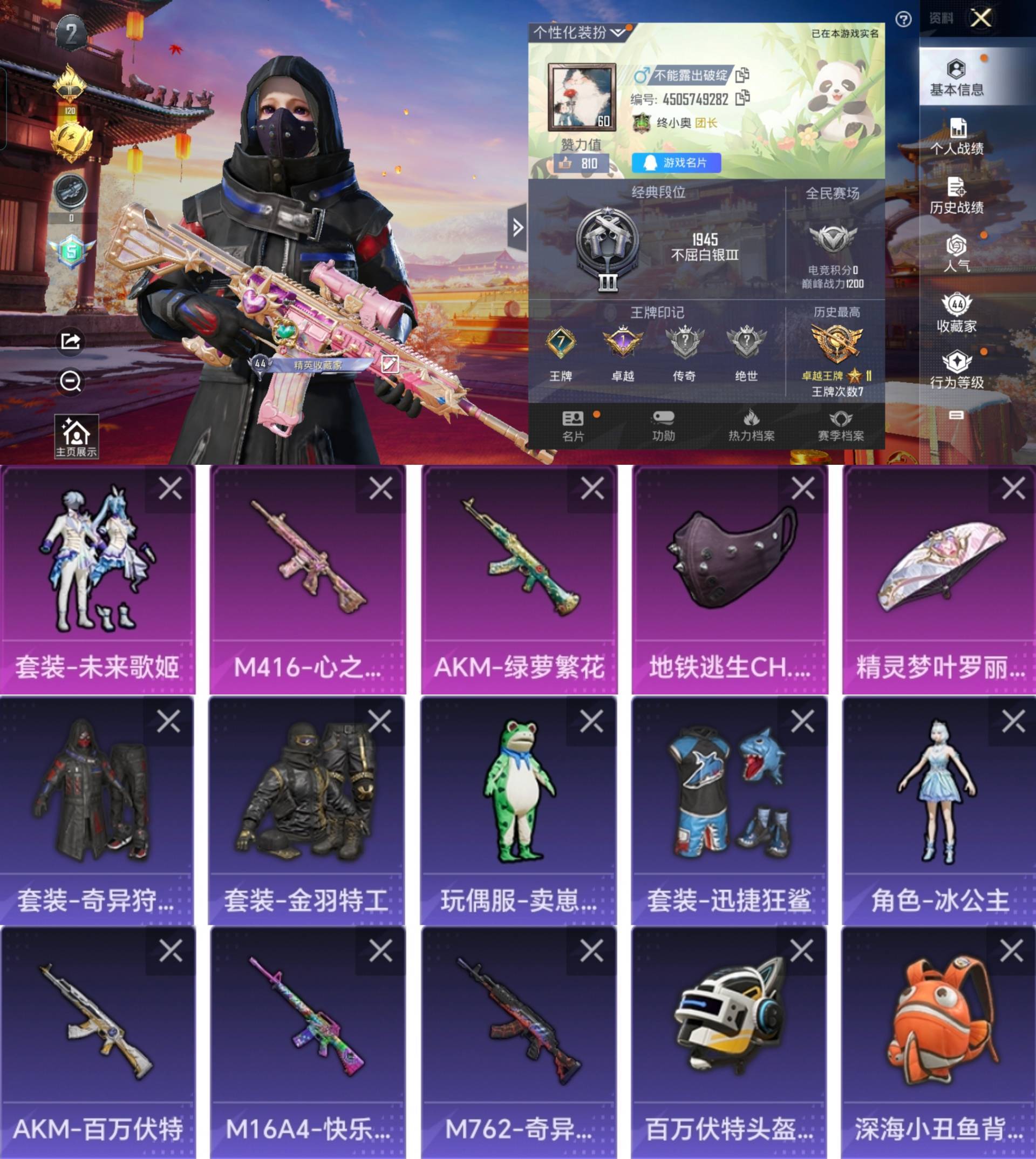 [11892947]lgh382【2特1粉未来歌姬奇异狩猎者金羽特工迅捷狂鲨素材号】不可二次 安卓q-36967热力值 7王牌印记 历史卓越王牌11星 85套装 126呛皮 【2稀有】 奇异狩猎者 akm-百万伏特 【1粉装】 未来歌姬 【2特效呛】 m416-心之恋语 7级 akm-绿萝繁