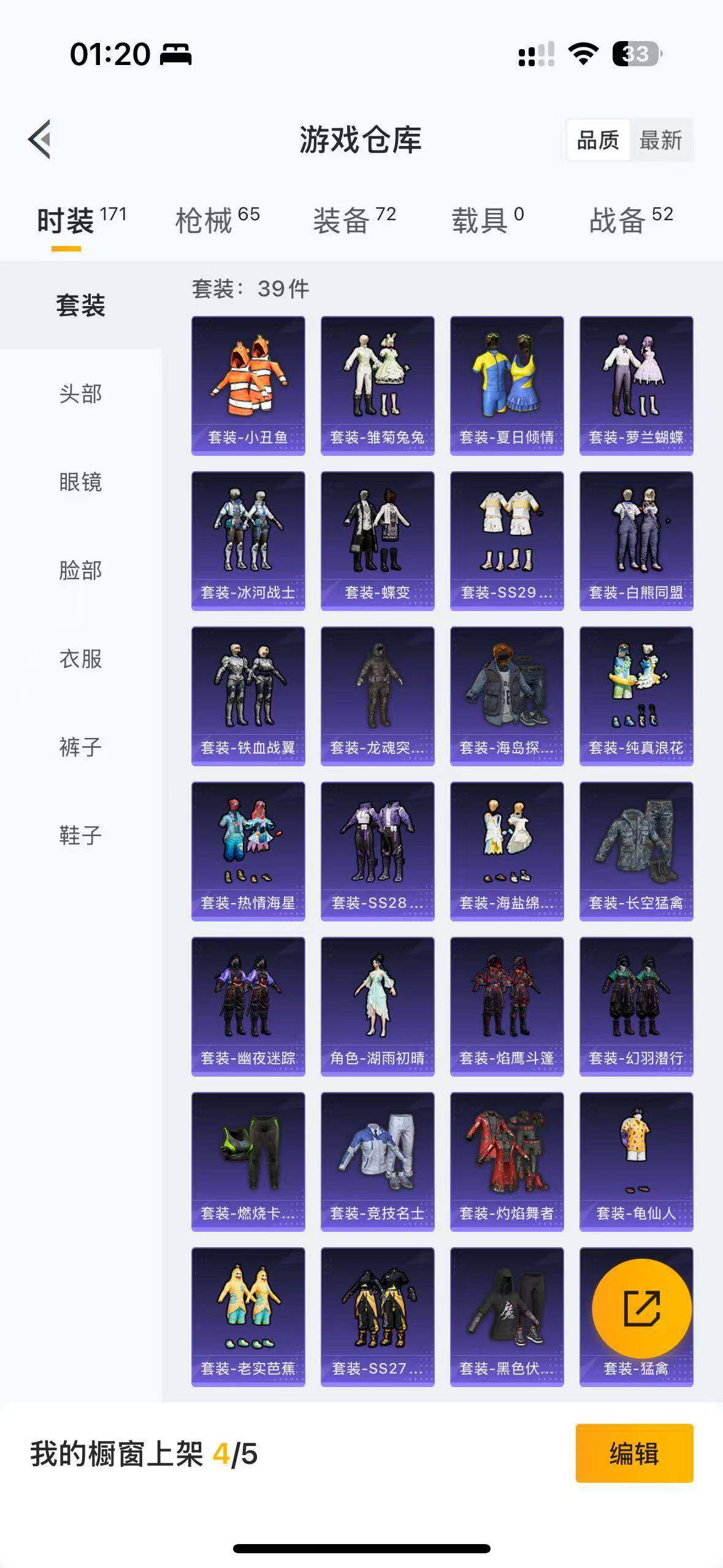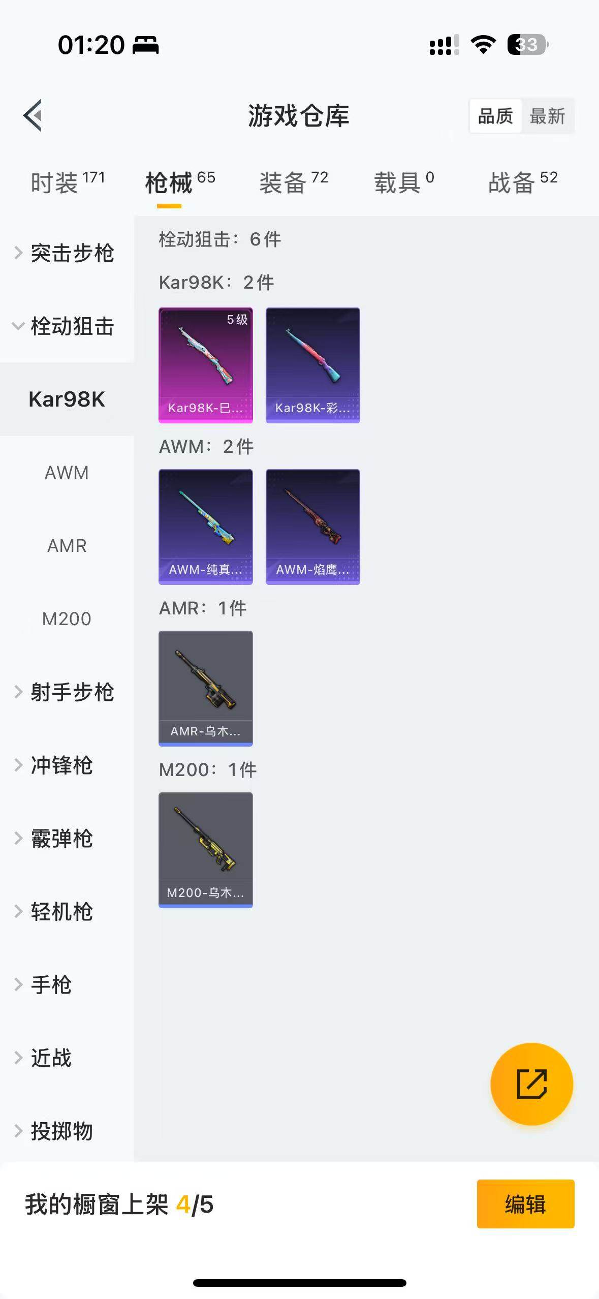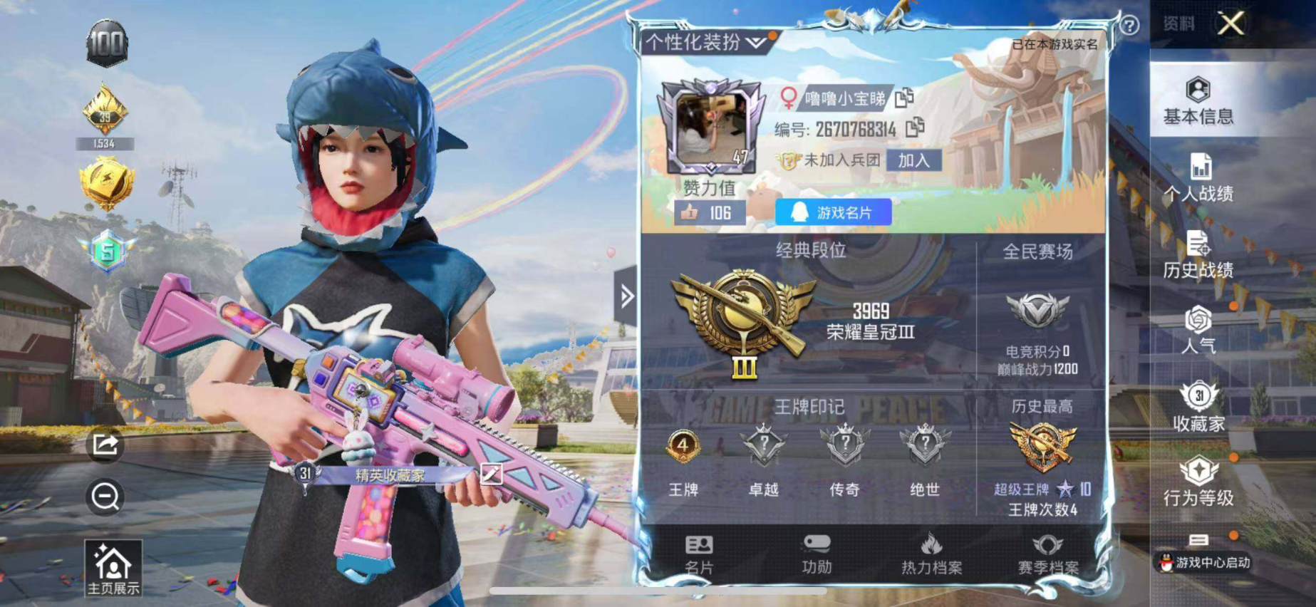 5734【龟仙人 迅捷狂鲨6特效呛】 scar-l-锦绣绵绵 5级 m416-电玩时刻 5级 kar98k-巳巳如意 5级 m762-青锋波束 5级 ump45-量子极限 5级 aks74u【2级】【2热门】 18565热力值 4王牌印记 历史超级王牌10星 39套装 65呛皮 【1稀有】 akm-缤纷海域 营地id: