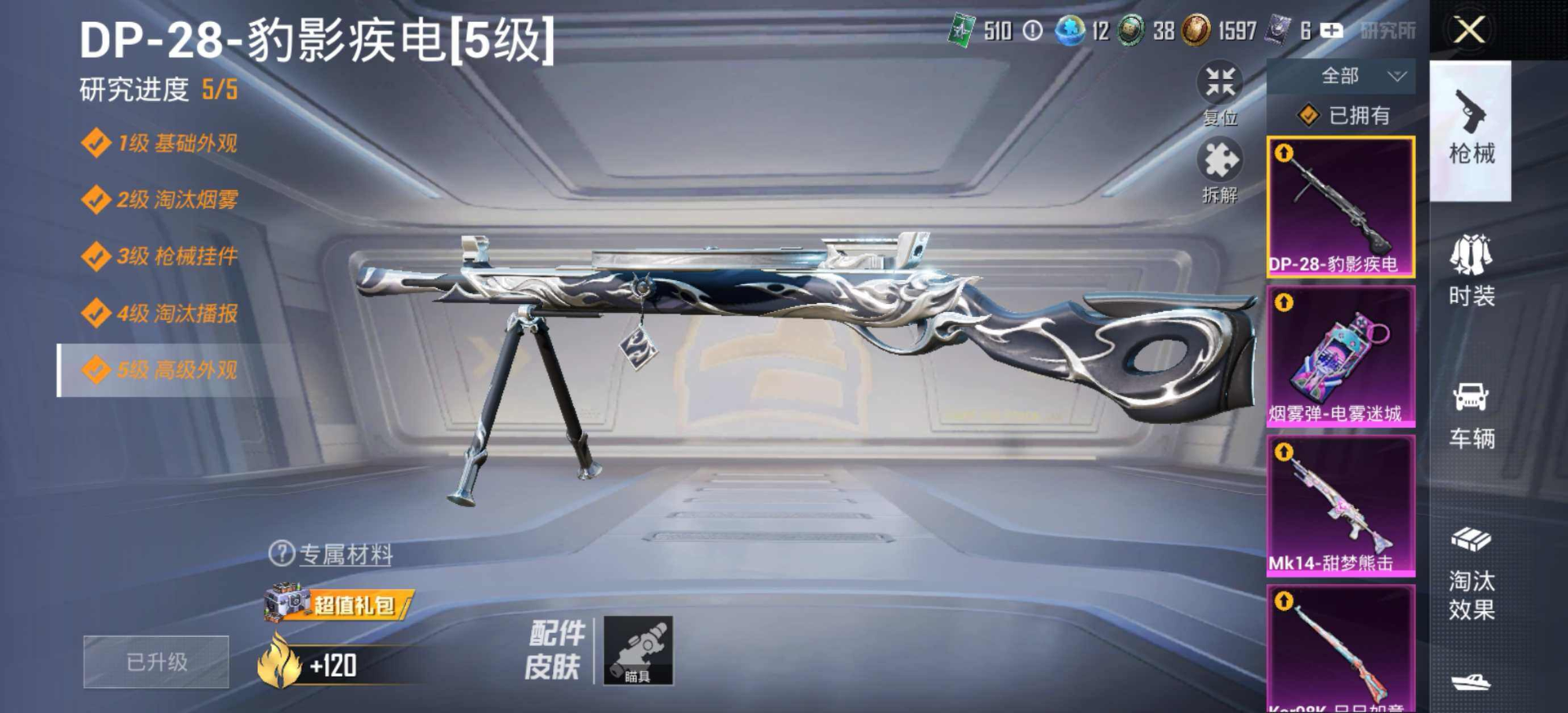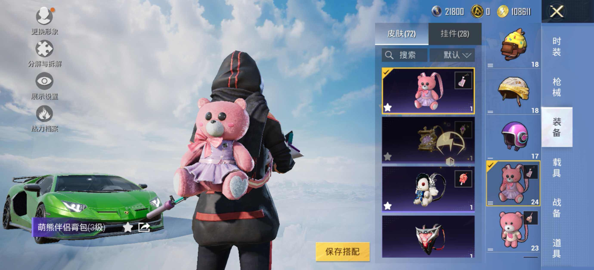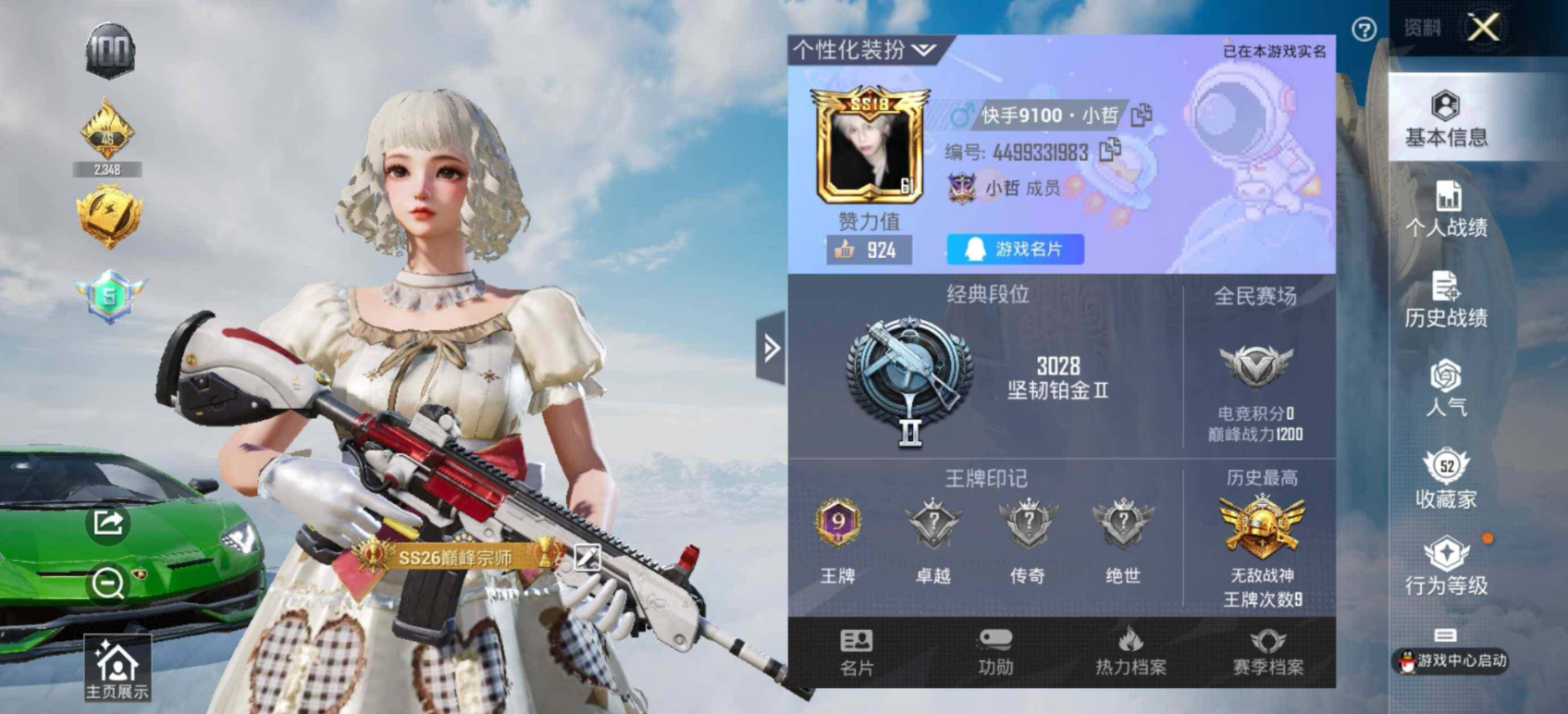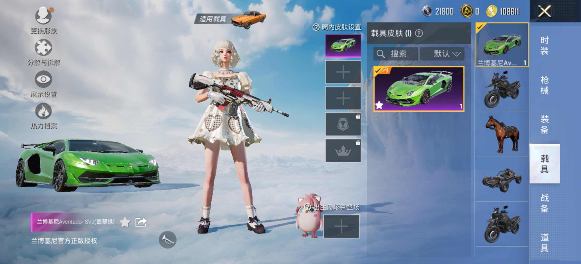 5884 历史无敌战神m416-星际漫游 44413热力值 9王牌印记114套装 134呛皮 【1载具】 兰博svj绿色 【1稀有】 【3粉装】 宝贝奶油派 天使彩虹糖 烟云彩露 【5特效呛】 akm-炫紫旋律 7级 kar98k-巳巳如意 5级 dp-28-豹影疾电 5级 mk14-甜梦熊击 5级 盐雾蛋-电雾迷城 5级 【1飞行器】 齐天大圣飞行器 【10热门】