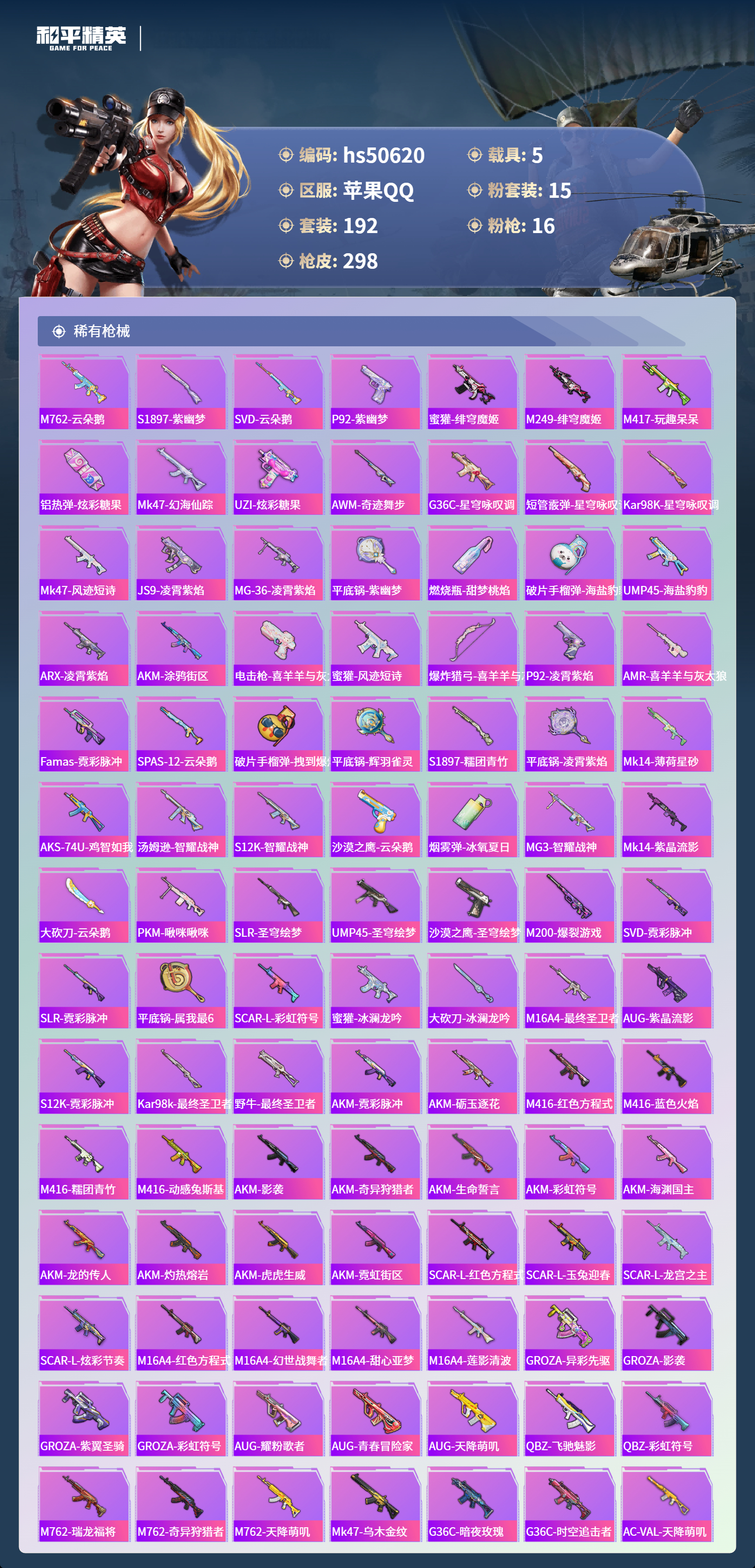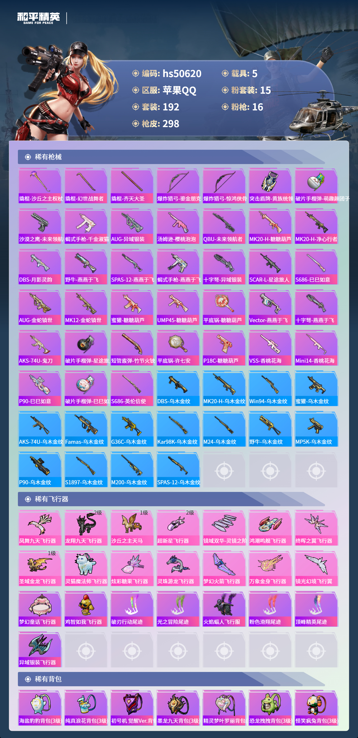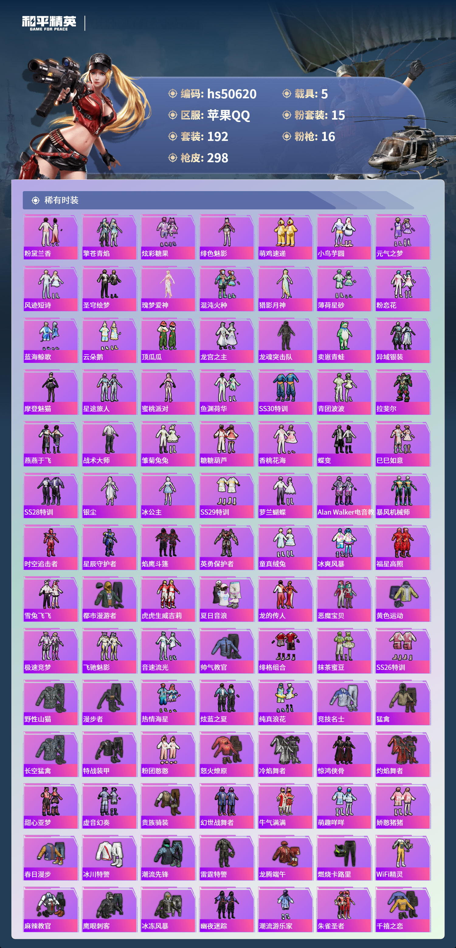 hs50620 苹果手q-11王牌印记-2红装-15粉装-16特效呛-5载具-热力值-192套装-298呛皮-4卓越印记-3传奇印记【2红装】最终圣卫者-帕修斯/2级墨龙九天-敖渊/3级【15粉装】套装-炫光之旅角色-小蓝套装-蓝莓炮弹角色-千金淑猫角色-樱桃泡泡套装-霓虹漫游套装-星穹咏叹调角色-绯穹魔姬角色-羊梦糖心套装-室女星神角色-狂魅哈莉角色-蔷薇