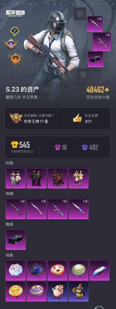 [13959951]苹果 【公主号 金风银杏/星穹咏叹调/奇异狩猎者/暗影哥特/满级炫紫旋律/玛莎拉蒂quattropte/129扭蛋碎片/】手q-4粉装-4特效呛-1载具-0粉色飞行器-48462热力值-7王牌印记-109套装-172呛皮 【热门品类】:套装-奇异狩猎者,套装-暗影哥特 【粉色载具】:玛莎拉蒂quattropte(夜幕蓝) 【粉色套装】:粉装-炙焰红王,粉装-金风银杏,粉装-玉鳞金羽,粉装-星穹咏叹调 【粉色呛皮等级】:akm-炫紫旋律七级,kar98k-巳巳如意五级,spas-12-音爆索尼克五级,dp-28-豹影疾电五级 【粉色呛皮】:akm-炫紫旋律,kar98k-巳巳如意,spas-12-音爆索尼克,dp-28-豹影疾电 【粉色降落伞】:梦幻火箭降落伞,垂柳戏鸭降落伞,未来歌姬降落伞,闲梦青缨降落伞,猪猪侠降落伞,鬼刀降落伞,荧海星豚降落伞 【稀有套装】:套装-巳巳如意,套装-燕燕于飞,套装-鱼渊荷华,角色-风玲,套装-晶灵使者,套装-晶辉守护,套装-彩虹兔,套装-云朵鹅,套装-雪绒豹,角色-绛羽幽主,套装-朱霞炽焰,套装-凌霄紫焰 【稀有呛皮】:akm-奇异狩猎者,akm-彩虹符号,akm-春暖花开,akm-环太平洋,akm-生命誓言,akm-破晓战魂,akm-虎虎生威,akm-霓虹街区,m16a4-幻世战舞者,m16a4-甜心亚梦,m16a4-蓝色火焰,scar-l-流星咚咚,scar-l-炫彩节奏,scar-l-玉兔迎春,scar-l-甜蜜誓约,scar-l-红色方程式,scar-l-冷漠罗丽,m416-糯团青竹,m416-红色方程式,groza-异彩先驱,groza-懵萌河马,aug-天降萌叽,aug-甜蜜菠萝,aug-耀粉歌者,m762-天降萌叽,m762-瑞龙福将,m762-绯红前夜,m762-云朵鹅,mk47-妙红点点,mk47-炫光之旅,g36c-懵萌河马,g36c-时空追击者,g36c-暗夜玫瑰,g36c-星穹咏叹调,ac-val-天降萌叽,ac-val-快闪甜心,ac-val-甜心亚梦,蜜獾-娇憨猪猪,arx-凌霄紫焰,uzi-啾咪啾咪,uzi-天降萌叽,uzi-娇憨猪猪,uzi-幽秘魅影,uzi-炫彩节奏,ump45-时空追击者,ump45-涂山之恋,ump45-生命誓言,ump45-蓝色火焰,ump45-金玉无