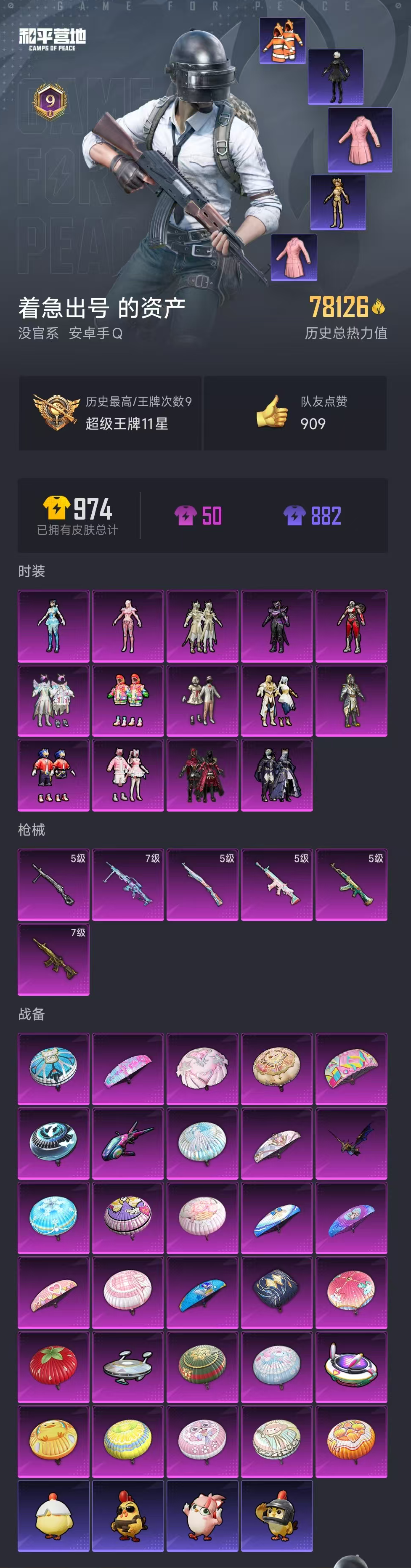 【和平精英】【lyhp16451】7.8w热力值14粉装6特效呛 老101 彩虹甜喵 金曜白虎 宝贝奶油 满级五爪金龙m416 六号稻草人 小丑鱼 14粉装,6特效呛,0载具,历史最高段位:超级王牌11星 王牌印记9次 热力值:78126,171套装,264呛械,347装备,165战备;套装:套装-宝贝奶油派,套装-金曜白虎,套装-炙焰红王,套装-山涧鹿灵,套装-星夜魔法师,套装-射星猎手,套装-彩虹甜喵,套装-音爆索尼克,套装-天星战神,角色-阿尔茜,角色-星云暗核,套装-炫光之旅,角色-守护天翼,角色-异瞳寒姬,套装-黑色伏地魔,套装-竞技名士,套装-湖蓝色名流,套装-猛禽,套装-长空猛禽,套装-漫步者,套装-黎明保卫者,套装-海岛探路者,套装-雨林探路者,套装-特战装甲,套装-贵族骑装,套装-特殊使命,套装-青春校园,套装-甜蜜告白,套装-春日漫步,套装-龙腾端午,套装-沙漠毒蛇,套装-鹰眼刺客,套装-冰冻风暴,套装-摇滚舞王,套装-魅力单车,套装-耀眼新星,套装-坚韧舞者,套装-竞技达人朋克,套装-幻世保卫者,套装-森林游猎者,套装-沙漠兵团,套装-火箭少女101,套装-极地朋克,套装-幻世战舞者,套装-甜蜜菠萝,套装-生化防暴队,套装-甜蜜熊情侣,套装-青涩时光,套装-缤纷果语,套装-滨海厨神,套装-龙魂突击队,套装-冰川特警,套装-元素星魂,套装-冷血极客,套装-麻辣教官,套装-小丑鱼,套装-梦魇先生,套装-粉红小猪,套装-鹤鸣,套装-霓虹街区,套装-纯白誓言,套装-萌黄之夏,套装-夏日音浪,套装-探宝勇士,套装-牛气满满,套装-白糯汤圆,套装-韶华初心,套装-战术大师,套装-牛气冲天,套装-ss18特训,套装-耀粉歌者,套装-飞行日记,套装-竞技角斗士,套装-热情海星,套装-纯真浪花,套装-暖风夏荷,套装-水晶王族,角色-军刀雅典娜,套装-ss19特训,套装-极速竞梦,套装-飞驰魅影,套装-音速流光,套装-炫蓝之夏,套装-ss20特训,套装-粉团憨憨,套装-猎梦纪元,套装-甜心亚梦,套装-虚音幻奏,套装-ss21特训,套装-萌趣咩咩,套装-娇憨猪猪,套装-夏雨游龙,套装-暖心橘喵,套装-梦幻奶油,套装-酸甜橘柚,套装-奶油香芋,角色-赵灵儿,套装-玉兔迎春,套装-ss22特训,套装-田园牧歌,套装-轻风白浪,套装-胡桃卫兵,套装-光之冒险,套装-绯格组合,套装-ss23特训,套装-摩登艾咪,套装-龙舌兰冰茶,套装-神气柴柴,套装-懵萌河马,套装-妙红点点,套装-幻彩翩翩,套装-银杏天影,套装-王牌教练,套装-柠萌假日,套装-青玉碎影,套装-ss24特训,套装-荧惑魅影,套装-冥星暗影,套装-日照花林,角色-短笛,套装-龟仙人,套装-ss25特训,套装-惊鸿侠骨,套装-锦衣飞扬,套装-绝对偶像,套装-果汁能量,角色-2b战斗服款,套装-龙的传人,套装-冰河战士,套装-ss26特训,套装-快闪甜心,套装-春光漫游,套装-漫游都市,套装-空岛之星,套装-无暇誓言,套装-焰鹰斗篷,套装-幽夜迷踪,套装-幻羽潜行,套装-ss27特训,套装-老实芭蕉,套装-ss28特训,角色-情公主,套装-海盐绵绵冰,套装-蝶变,套装-火种守卫者,套装-异域银装,套装-旋风灵鼠,套装-ss30特训,角色-六号稻草人,套装-ss31特训,套装-鱼渊荷华,套装-燕燕于飞,套装-智谋强哥,套装-紫幽梦,套装-ss33特训,套装-巳巳如意,套装-ss32特训,套装-蓝冰羽,套装-顶瓜瓜,套装-大橘大利,玩偶服-懒羊羊,套装-元气之梦,套装-ss34特训,套装-擎苍青焰,套装-朱霞炽焰,套装-凌霄紫焰,套装-薄荷星砂,套装-ss35特训,套装-午间小调,套装-风迹短诗,套装-萌鸡速递;呛皮:m16a4-蓝色火焰,m16a4-红色方程式,m16a4-甜心亚梦,m16a4-幻世战舞者,m16a4-冰河战士,g36c-冷魅冰骑,g36c-懵萌河马,g36c-星穹咏叹调,aug-幻影战神,aug-耀粉歌者,aug-天降萌叽,aug-异域银装,aug-紫晶流影,ac-val-甜心亚梦,ac-val-乌木金纹,ac-val-彩虹甜喵,ac-val-天降萌叽,ac-val-快闪甜心,5级scar-l-锦绣绵绵,scar-l-红色方程式,scar-l-黄金龙骨,scar-l-夜灯,scar-l-炫彩节奏,scar-l-彩虹符号,scar-l-玉兔迎春,scar-l-幽秘魅影,scar-l-星途旅人,scar-l-海盐豹豹,蜜獾-娇憨猪猪,蜜獾-垂柳戏鸭,蜜獾-桃夭倾城,蜜獾-天降萌叽,蜜獾-鸡智如我,蜜獾-折梦之诗,蜜獾-风迹短诗,蜜獾-乌木金纹,m762-彩虹符号,m762-彩虹甜喵,m762-天降萌叽,m762-萌物绒绒,5级akm-绿萝繁花,akm-灼热熔岩,akm-破晓战魂,akm-涂鸦街区,akm-彩虹符号,akm-恐龙拽拽,akm-王牌投手,akm-萝萝小趴兔,akm-2p战斗服款,akm-龙的传人,akm-江南烟雨,akm-霓彩脉冲,akm-绿洲时空,mk47-乌木金纹,mk47-妙红点点,mk47-风迹短诗,famas-霓彩脉冲,famas-乌木金纹,groza-影袭,groza-林间仙鹿,groza-彩虹符号,groza-田园牧歌,groza-懵萌河马,groza-海盐豹豹,7级m416-五爪金龙,m416-蓝色火焰,m416-红色方程式,m416-糯团青竹,q-彩虹符号,q-飞驰魅影,q-未来歌姬,q-纯真浪花,arx-凌霄紫焰,m24-影袭,m24-奇异狩猎者,m24-炫彩节奏,m24-拂晓神骑,m24-乌木金纹,m200-仲夏莫吉托,m200-惊鸿侠骨,m200-乌木金纹,amr-暗夜行者,amr-妙红点点,amr-鸡智如我,amr-喜羊羊与灰太狼,amr-乌木金纹,win94-星兔领航员,win94-乌木金纹,5级kar98k-巳巳如意,kar98k-红色方程式,kar98k-王子的夏天,kar98k-影袭,kar98k-彩虹符号,kar98k-炫彩节奏,kar98k-飞驰魅影,awm-庄周梦蝶,awm-胡桃卫兵,awm-飒粉甜心,awm-天降萌叽,awm-焰鹰斗篷,awm-纯真浪花,莫辛纳甘-乌木金纹,莫辛纳甘-懵萌河马,莫辛纳甘-风迹短诗,svd-霓彩脉冲,mk14-童趣迷兔,mk14-乌木金纹,mk14-冰河战士,mk14-紫幽梦,mk14-薄荷星砂,vss-星之彼岸,vss-田园牧歌,vss-彩虹符号,vss-香桃花海,m417-惊鸿侠骨,m417-玩趣呆呆,mk20-h-莲影清波,mk20-h-快闪甜心,mk20-h-乌木金纹,sks-心之恋语,sks-炫彩节奏,sks-糯团青竹,sks