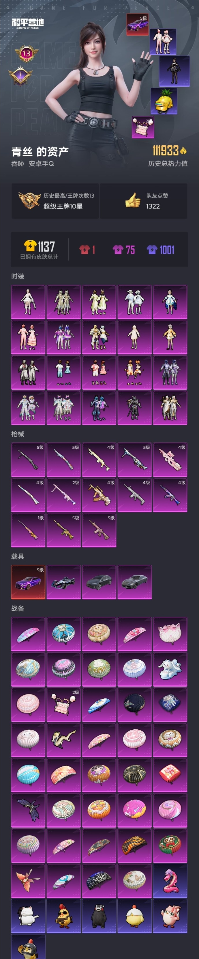 【和平精英】【lyhp16615】13高印记 11w热力值 20粉装13特效呛4载具【5级宾利】洛天依 白勺歌姬 千金淑猫 呆萌星弥 5级恋语m4 4级星际ak 4级妹控 兰博基尼 20粉装,13特效呛,4载具,历史最高段位:超级王牌10星 王牌印记13次 热力值:111933,234套装,283呛械,414装备,172战备;套装:套装-深海曼妙,套装-潮汐统领,套装-极致幻想,套装-幻情紫藤,套装-彩虹鹿灵,套装-山涧鹿灵,角色-洛天依,套装-射星猎手,套装-飓风飞鹰,套装-橘柚倾心,角色-呆萌星弥,角色-白勺歌姬,套装-仲夏莫吉托,套装-畅跳缤纷,套装-雪梅暗香,套装-天星战神,套装-闲梦青缨,套装-粉樱探戈,套装-萌物绒绒,角色-千金淑猫,套装-特训学院,套装-猎鹰,套装-青年教官,套装-橘黑制服,套装-红色运动,套装-黄色运动,套装-蓝色运动,套装-黄色伏地魔,套装-白色伏地魔,套装-黑色伏地魔,套装-骑行爱好者,套装-竞技名士,套装-深蓝色名流,套装-酒红色名流,套装-湖蓝色名流,套装-黄色名流,套装-猛禽,套装-长空猛禽,套装-竞技勇士朋克,套装-蓝色守护者,套装-海岛探路者,套装-时尚圣诞,套装-冷焰舞者,套装-特战装甲,套装-战地菁英,套装-战地督导,套装-特殊使命,套装-灰色格斗者,套装-甜蜜告白,套装-滨海假日,套装-幻影武者,套装-海滨突袭者,套装-神秘领域,套装-魅力单车,套装-绮丽涂鸦,套装-耀眼新星,套装-坚韧舞者,套装-竞技达人朋克,套装-都市漫游者,套装-野性战心,套装-破晓战魂,套装-森林游猎者,套装-都市魅力,套装-荣耀,套装-风行保卫者,套装-热血青春,套装-沙漠兵团,套装-丛林猎人,套装-ss2特训,套装-雪山精英,套装-酷潮明星,套装-传奇侦探,套装-极地朋克,套装-幻世战舞者,套装-生化防暴队,套装-甜蜜熊情侣,套装-青涩时光,套装-缤纷果语,套装-龙魂突击队,套装-极速红龙,套装-格斗先锋,套装-粉红小猪,套装-破蛋小黄鸡,套装-疯狂小兔子,套装-ss5特训,套装-圣诞大吉,套装-红酒骑士,套装-浪漫波比,套装-金鼠迎春,套装-北国孤狼,套装-ss6特训,套装-拳皇97草薙京,套装-炽焰拳师,套装-格斗专家,套装-玲珑飞花,套装-跃动心情,套装-ss7特训,套装-鹤鸣,套装-霓虹街区,套装-纯白誓言,套装-ss10特训,套装-ss8特训,套装-软萌银虎,套装-萌黄之夏,套装-夏日音浪,套装-探宝勇士,套装-辉星之火,套装-牛气满满,套装-白糯汤圆,套装-ss11特训,套装-青春冒险家,套装-潮流游乐家,套装-玄武圣者,套装-朱雀圣者,套装-白虎圣者,套装-静谧青瓷,套装-萌趣颜团子,套装-特种颜团子,套装-战术大师,套装-ss12特训,套装-牛气冲天,套装-ss18特训,套装-镭射皇者,套装-银白舞王,套装-耀粉歌者,套装-飞行日记,套装-ss13特训,套装-双棍侠客,套装-ss14特训,套装-天籁歌者,套装-电音精灵,套装-吉莉礼服,套装-星梦畅游,套装-ss15特训,套装-ss16特训,套装-暴风机械师,套装-时空追击者,套装-星辰守护者,套装-暗夜傀儡,套装-ss17特训,套装-水晶王族,套装-醒狮腾龙,套装-瑞龙福将,套装-团圆交子,套装-青丘仙客,套装-冰爽风暴,套装-诡夜天鹅,套装-福星高照,套装-遗落祭司,套装-虎虎生威吉莉,套装-魔力冰咖,套装-空投萌叽,套装-ss19特训,套装-飞驰魅影,套装-音速流光,套装-炫蓝之夏,套装-ss20特训,套装-猎梦纪元,套装-甜心亚梦,套装-虚音幻奏,套装-醇脆可可,套装-玉兔迎春,套装-ss22特训,套装-和煦暖阳,套装-田园牧歌,套装-轻风白浪,套装-绚烂繁星,套装-熠彩粉晶,套装-光之冒险,套装-绯格组合,套装-ss23特训,套装-莱茵河畔,套装-白兰地假日,套装-甜梦熊熊,套装-神气柴柴,套装-懵萌河马,套装-灵蜜圈圈,套装-妙红点点,套装-幻彩翩翩,套装-跃动晴空,套装-银杏天影,套装-竹华凝韵,套装-王牌教练,套装-柠萌假日,套装-ss24特训,套装-银松藏云,套装-华灯初上,套装-春野茶蘼,套装-青芒树下,套装-幽秘魅影,套装-龟仙人,套装-ss25特训,套装-金戈铁马,套装-惊鸿侠骨,套装-锦衣飞扬,套装-诗意画廊,套装-绝对偶像,套装-元气发射,套装-香桃花海,套装-龙的传人,套装-冰河战士,套装-ss26特训,套装-空岛之星,套装-无暇誓言,套装-ss27特训,套装-恋语绒绒,套装-ss28特训,套装-街头风暴,套装-海盐绵绵冰,套装-ss29特训,套装-雏菊兔兔,套装-萝兰蝴蝶,角色-绯色魅影,套装-异域银装,角色-摩登魅猫,角色-都市丽猫,套装-星途旅人,套装-ss30特训,套装-青团波波,套装-棉花软糖,套装-糖糖葫芦,套装-ss31特训,套装-鱼渊荷华,套装-燕燕于飞,套装-智谋强哥,套装-ss33特训,套装-巳巳如意,套装-ss32特训,套装-大橘大利,套装-星影赞美诗,套装-ss34特训,套装-薄荷星砂,套装-ss35特训,套装-萌鸡速递;呛皮:m762-绯红前夜,m762-拳皇97,m762-牛气冲天,m762-镭射皇者,m762-瑞龙福将,m762-彩虹符号,m762-暗夜鎏金,m762-第五大道,m762-天降萌叽,m762-萌物绒绒,m762-雏菊兔兔,m762-乌木金纹,4级groza-焦糖拿铁,groza-林间仙鹿,groza-蓝莓炮弹,groza-田园牧歌,groza-懵萌河马,groza-海盐豹豹,g36c-花间之火,g36c-时空追击者,g36c-炙焰牛王,g36c-懵萌河马,g36c-乌木金纹,4级akm-星际浪客,akm-玉龙,akm-破晓战魂,akm-霓虹街区,akm-四圣焕新,akm-萌趣颜团子,akm-虎虎生威,akm-龙的传人,akm-乌木金纹,akm-绿洲时空,4级scar-l-纯梦嫁纱,scar-l-生命誓言,scar-l-红色方程式,scar-l-甜蜜誓约,scar-l-夜灯,scar-l-炫彩节奏,scar-l-青丘仙客,scar-l-彩虹符号,scar-l-幽秘魅影,scar-l-海盐豹豹,scar-l-乌木金纹,5级m16a4-葫芦兄弟,m16a4-蓝色火焰,m16a4-红色方程式,m16a4-夜灯,m16a4-甜心亚梦,m16a4-冰河战士,m16a4-千金淑