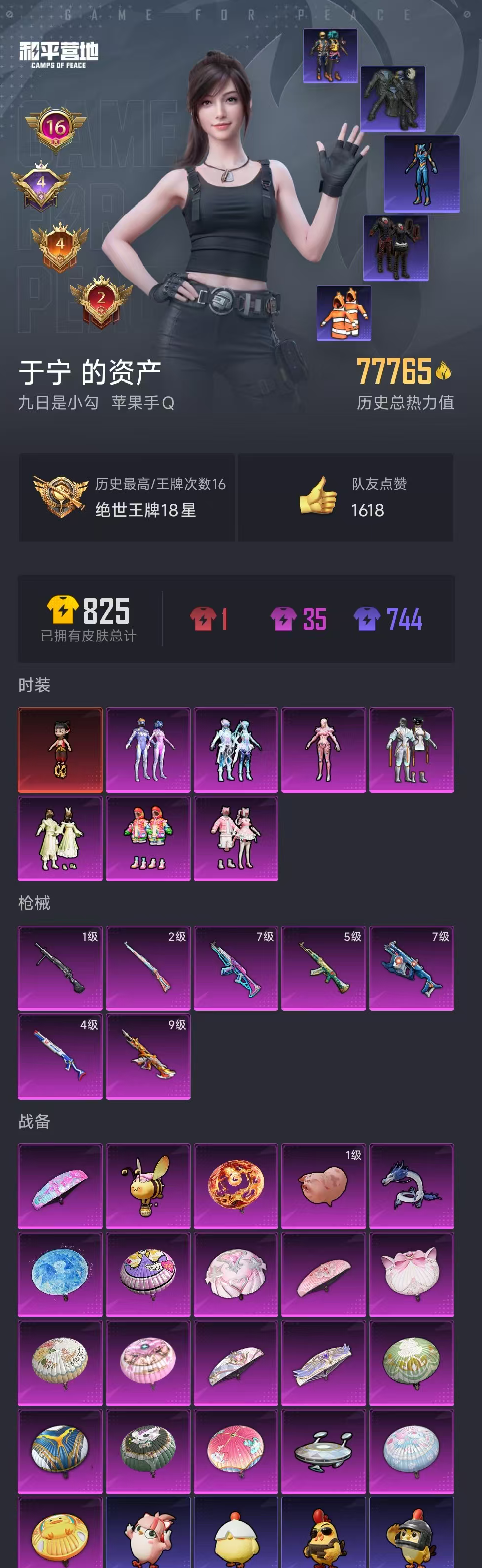【和平精英】【lyhp16632】7.7w热力值 高印记 1红装 7粉装 7特效呛 3级哪吒 梦幻火箭 智能音符 都市 小丑鱼 暗影哥特 蓝螳螂 满级至情m4 满级梦之光华akm 满级复仇者维克托 7粉装,7特效呛,0载具,历史最高段位:绝世王牌18星 王牌印记16次 热力值:77945,158套装,229呛械,293装备,115战备;套装:魔童闹海-哪吒,套装-梦幻火箭,套装-智能音符,套装-彩虹甜喵,套装-闲梦青缨,套装-炫光之旅,角色-守护天翼,套装-幻彩电音,套装-特训学院,套装-猎鹰,套装-黑色伏地魔,套装-竞技名士,套装-湖蓝色名流,套装-黄色名流,套装-猛禽,套装-长空猛禽,套装-漫步者,套装-都市猎人,套装-贵族骑装,套装-鹰眼刺客,套装-冰冻风暴,套装-完美偶像,套装-魅力单车,套装-绮丽涂鸦,套装-野性战心,套装-热血青春,套装-酷潮明星,套装-幻世战舞者,套装-奇异狩猎者,套装-蓝调潮人,套装-暗影哥特,套装-弄潮海豚,套装-迅捷狂鲨,套装-呆萌铁蟹,套装-深海小丑鱼,套装-龙魂突击队,套装-冰川特警,套装-雷霆特警,套装-冷血极客,套装-麻辣教官,套装-小丑鱼,套装-黑夜传说,套装-金鼠迎春,套装-军械专家,套装-蔷薇魔法师,套装-云纹魔法士,套装-淡雅花蕊,套装-玲珑飞花,套装-鹤鸣,套装-霓虹街区,套装-大橘为重,套装-萌黄之夏,套装-夏日音浪,套装-探宝勇士,套装-牛气满满,套装-萌趣颜团子,套装-战术大师,套装-ss18特训,套装-飞行日记,套装-曼妙人鱼,套装-热情海星,套装-纯真浪花,套装-ss14特训,角色-捷德奥特曼,套装-ss15特训,套装-ss16特训,角色-英勇保护者,套装-ss17特训,套装-瑞龙福将,套装-团圆交子,套装-福星高照,套装-豚鼠丹丹,套装-虎虎生威吉莉,角色-军刀雅典娜,套装-异彩先驱,套装-霓虹极客,套装-空投萌叽,套装-ss19特训,套装-极速竞梦,套装-飞驰魅影,套装-音速流光,套装-炫蓝之夏,套装-ss20特训,套装-猎梦纪元,套装-甜心亚梦,套装-虚音幻奏,套装-ss21特训,套装-暖心熊熊,套装-萌趣咩咩,套装-娇憨猪猪,套装-暖心橘喵,角色-阿奴,套装-玉兔迎春,套装-ss22特训,套装-田园牧歌,套装-轻风白浪,套装-光之冒险,套装-绯格组合,套装-ss23特训,套装-神气柴柴,套装-懵萌河马,套装-灵蜜圈圈,套装-妙红点点,套装-幻彩翩翩,套装-王牌教练,套装-柠萌假日,套装-ss24特训,套装-华灯初上,套装-龟仙人,套装-涂山之恋,套装-ss25特训,套装-惊鸿侠骨,套装-锦衣飞扬,套装-龙的传人,套装-冰河战士,套装-ss26特训,套装-快闪甜心,套装-春光漫游,套装-空岛之星,套装-无暇誓言,套装-贝斯之夜,套装-焰鹰斗篷,套装-幽夜迷踪,套装-幻羽潜行,套装-ss27特训,套装-老实芭蕉,套装-ss28特训,套装-铁血战翼,角色-情公主,角色-mark.06,套装-海盐绵绵冰,套装-小熊娃娃,套装-ss29特训,套装-雏菊兔兔,套装-萝兰蝴蝶,角色-摩登魅猫,套装-星途旅人,角色-怀庆长公主,套装-ss30特训,套装-青团波波,套装-棉花软糖,套装-糖糖葫芦,套装-ss31特训,套装-鱼渊荷华,套装-燕燕于飞,套装-紫幽梦,套装-ss33特训,套装-ss32特训,套装-蓝冰羽,套装-大橘大利,角色-时希公主,套装-元气之梦,套装-ss34特训,套装-擎苍青焰,套装-朱霞炽焰,套装-凌霄紫焰,套装-薄荷星砂,套装-ss35特训;呛皮:9级m416-至情至圣,m416-蓝色火焰,m416-红色方程式,m416-魔法学院,m416-糯团青竹,m416-魔童闹海 敖闰,q-神秘黑猫,q-飞驰魅影,q-未来歌姬,q-纯真浪花,m16a4-魔法学院,m16a4-甜心亚梦,m16a4-幻世战舞者,m16a4-冰河战士,m16a4-千金淑猫,g36c-懵萌河马,g36c-六号树人,g36c-星穹咏叹调,g36c-乌木金纹,mk47-洛神天依,mk47-乌木金纹,mk47-妙红点点,scar-l-黄金龙骨,scar-l-炫彩节奏,scar-l-玉兔迎春,scar-l-星途旅人,aug-魔法学院,aug-耀粉歌者,aug-天降萌叽,aug-金蛇镇世,蜜獾-娇憨猪猪,蜜獾-天降萌叽,蜜獾-精灵梦叶罗丽,蜜獾-糖糖葫芦,蜜獾-乌木金纹,7级akm-梦之光华,5级akm-绿萝繁花,akm-灼热熔岩,akm-影袭,akm-奇异狩猎者,akm-缤纷海域,akm-破晓战魂,akm-涂鸦街区,akm-彩虹符号,akm-萌趣颜团子,akm-海渊国主,akm-环太平洋,akm-筑梦精灵,akm-2p战斗服款,akm-龙的传人,groza-影袭,groza-春暖花开,groza-彩虹符号,groza-异彩先驱,groza-田园牧歌,groza-懵萌河马,ac-val-甜心亚梦,ac-val-乌木金纹,ac-val-彩虹甜喵,ac-val-天降萌叽,ac-val-闲梦青缨,ac-val-快闪甜心,ac-val-六号稻草人,m762-快乐主宰,m762-瑞龙福将,m762-橘柚倾心,m762-天降萌叽,m762-雏菊兔兔,arx-凌霄紫焰,awm-恐龙拽拽,awm-焰鹰斗篷,awm-纯真浪花,2级kar98k-巳巳如意,kar98k-影袭,kar98k-梦幻火箭,kar98k-彩虹符号,kar98k-炫彩节奏,kar98k-飞驰魅影,kar98k-乌木金纹,m24-影袭,m24-炫彩节奏,m24-拂晓神骑,m24-乌木金纹,m200-惊鸿侠骨,m200-乌木金纹,win94-夏日绵绵冰,win94-瑞龙福将,svd-冷漠罗丽,amr-妙红点点,amr-乌木金纹,莫辛纳甘-炙焰牛王,莫辛纳甘-乌木金纹,莫辛纳甘-懵萌河马,mk14-乌木金纹,mk14-冰河战士,mk14-紫幽梦,mk20-h-快闪甜心,mk20-h-星途旅人,mk20-h-糖糖葫芦,mk20-h-乌木金纹,mini14-穿刺龙虾,mini14-春暖花开,mini14-异彩先驱,mini14-香桃花海,mini14-雏菊兔兔,vss-田园牧歌,vss-香桃花海,m417-惊鸿侠骨,slr-娇憨猪猪,slr-彩虹符号,sks-迅猛狂鲨,sks-糯团青竹,野牛-雏菊兔兔,野牛-燕燕于飞,野牛-魔童闹海 敖闰,野牛-乌木金纹,汤姆逊-异彩先驱,汤姆逊-环太平洋,汤姆逊-天降萌叽,汤姆逊-纯真浪花,ump45-生命誓言,ump45-涂山之恋,ump45-糖糖葫芦,uzi-影袭,uzi-魔法学院,uzi-金风玉露,uzi-娇憨猪猪,uzi-天降萌叽,uzi-冰河战士,7级vect-环太平洋,vect-生命誓言,vect-田园牧歌,vect-音爆索尼克,vec