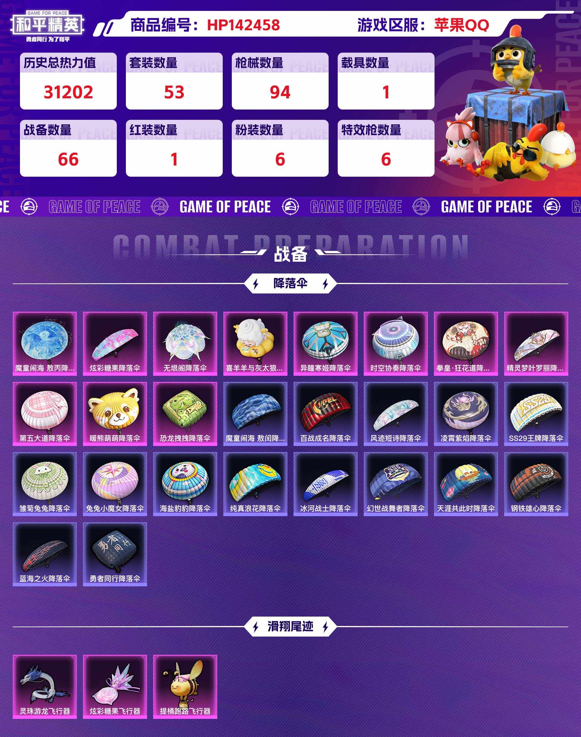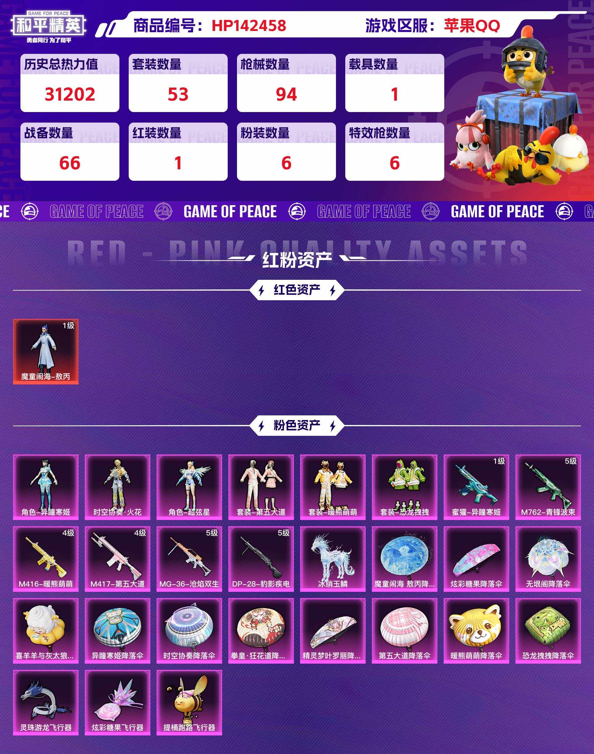 hp142458|极品脱坑号苹果qq可二次1级红装(敖丙) 6粉装 (恐龙拽拽 暖熊萌萌 第五大道 超弦星 异瞳寒姬)6粉呛 1载具 505军需币萌熊伴侣背包3件套