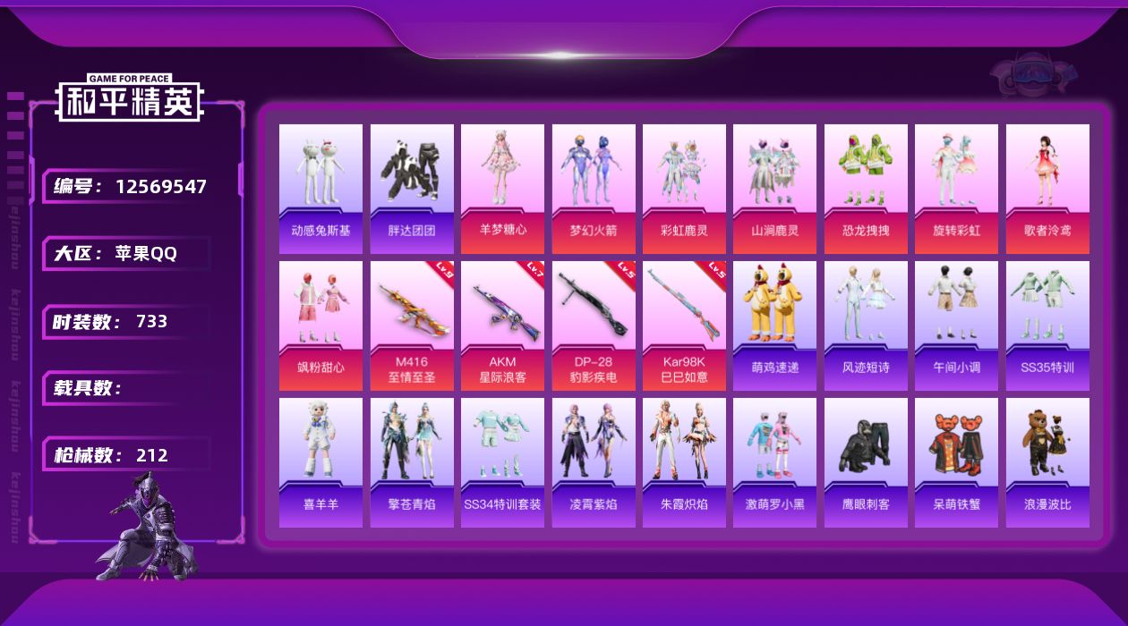 yzj11048可二次-苹果q-2稀有8粉装4特效呛24热门187套装212呛皮 【身法小女号素材 号里面还有军需币370个 价值370元买到就是赚到 满级至情至圣 火箭 羊梦糖心 泠鸢 恐龙拽拽 tt战队服 胖达 罗小黑 红眼罩 等等】 68045热力值 17印记 历史超级王牌11星 【2稀有】 akm-缤纷海域 浪漫天命 【8粉装】 梦幻火箭 羊梦糖心 飒粉甜心 歌者泠鸢 旋转彩虹