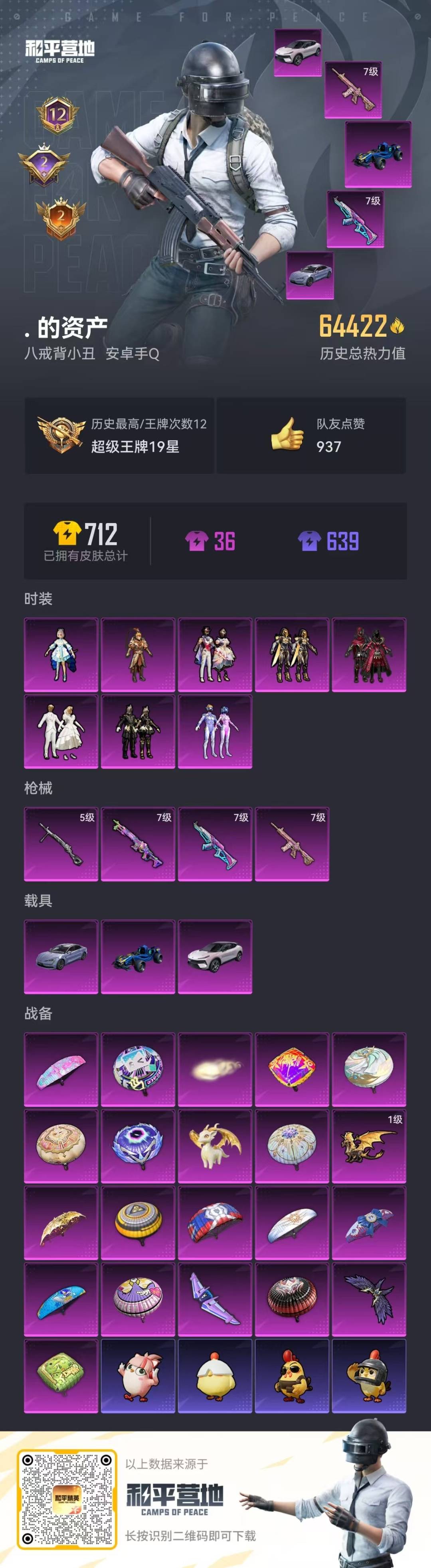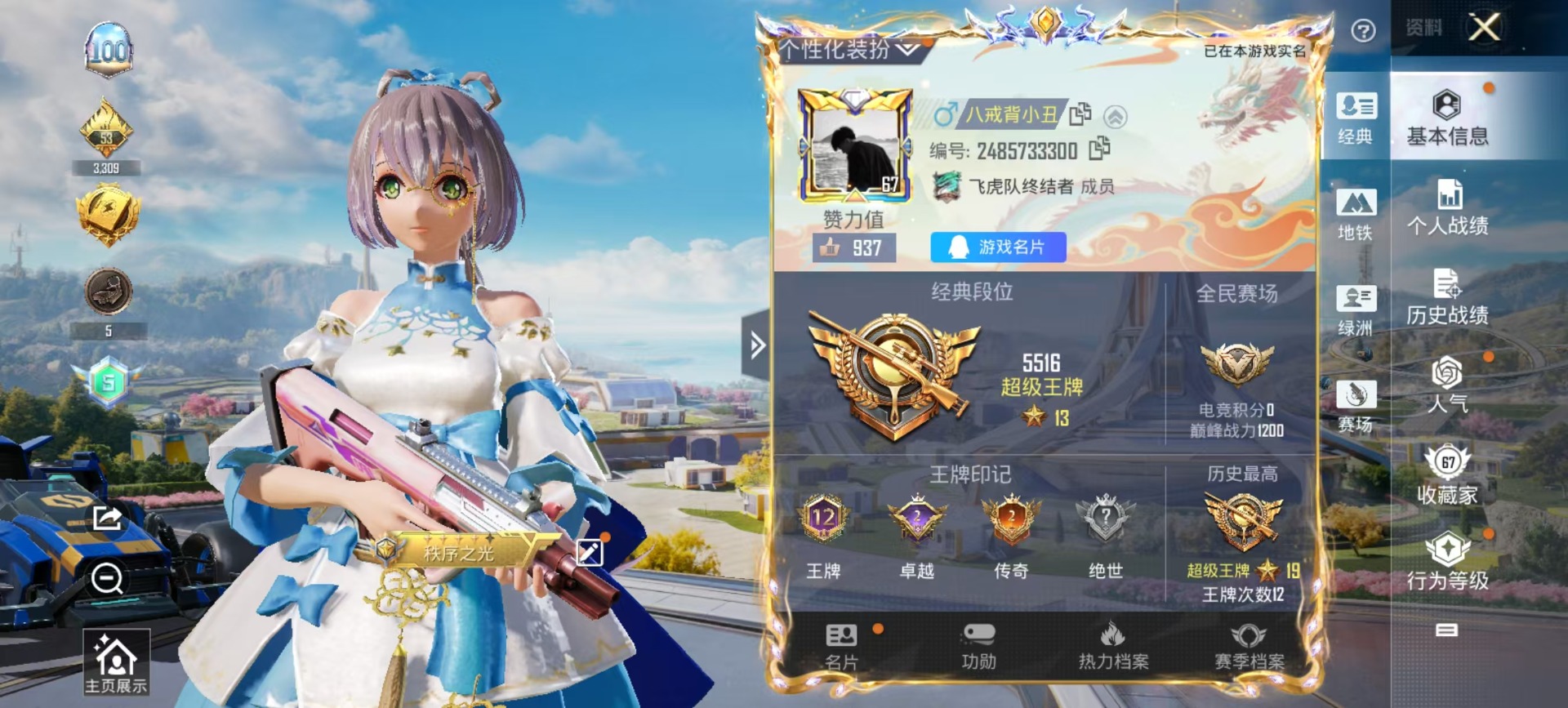 8粉装 4特效呛 3载具 12印记 可二次 可修改实名 【热门装扮】:星穹咏叹调梦幻火箭新101 洛天依炙焰红王齐天大圣暗夜鎏金纯珍童话创世·救赎兔兔白日梦鹰眼刺客 【载具】:僚机-圣域龙宝仰望u7先锋版阿盖尔紫合金龙骨(蓝)路特斯eletre花绽灰 【稀有呛皮
