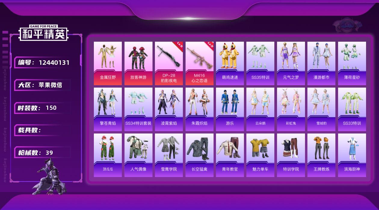 yzj10933可二次-苹果v-2粉装2特效呛1热门34套装39呛皮 11763热力值 2印记 历史卓越王牌15星 【2粉装】 金属狂野 放客神游 【2特效呛】 m416-心之恋语 5级 dp-28-豹影疾电 5级 【1热门】 破蛋小黄鸡 【1头盔】 深海小丑鱼头盔 营地id:1006457798